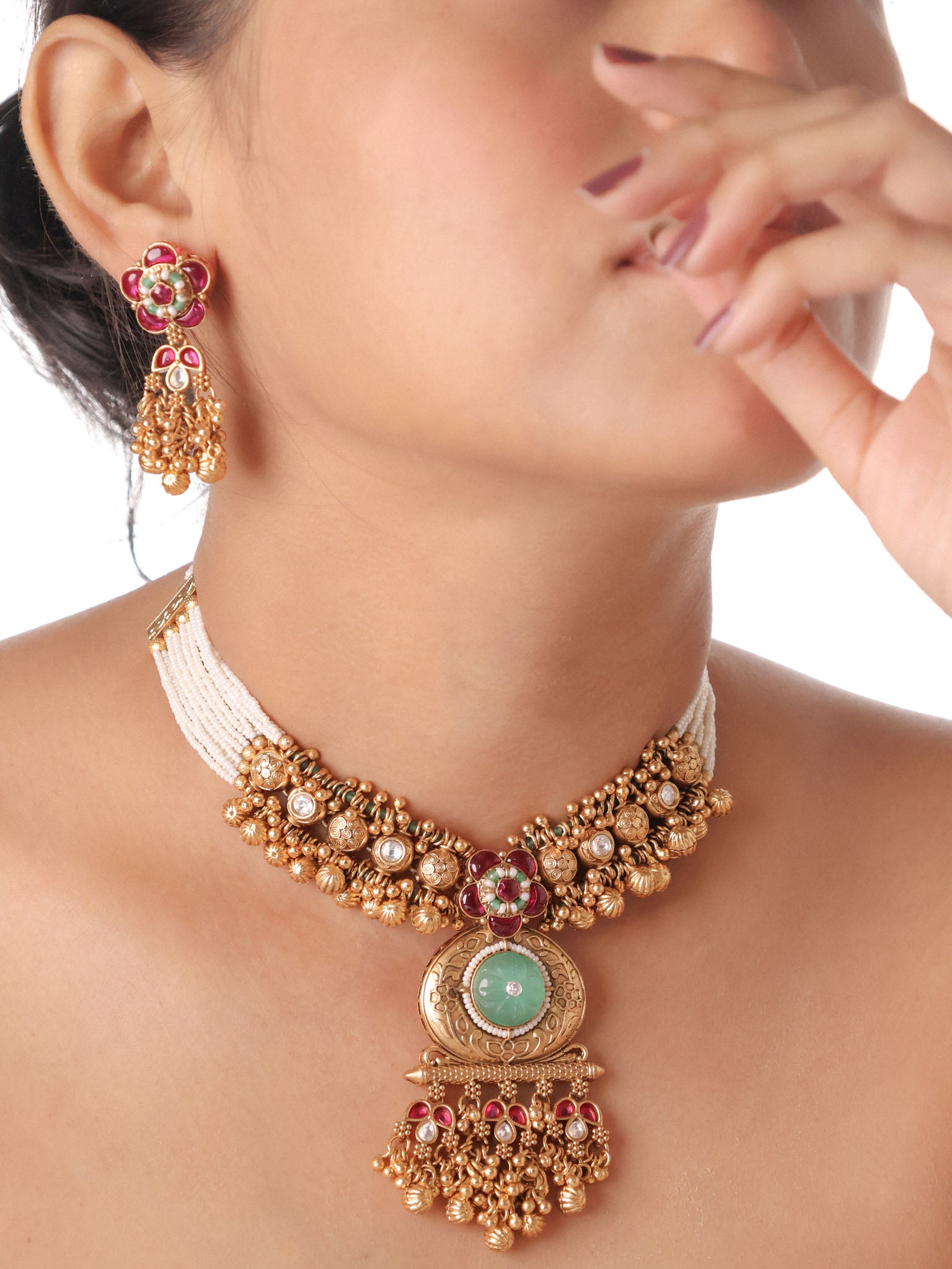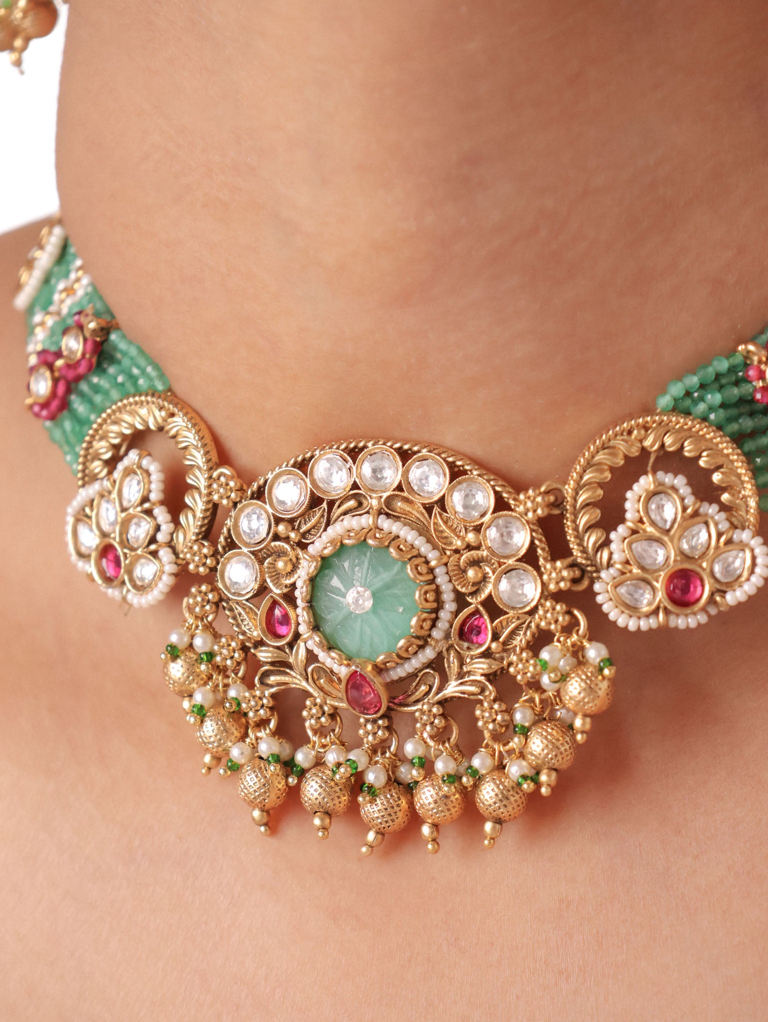 Gulabi Émeraude Jadau Choker Set