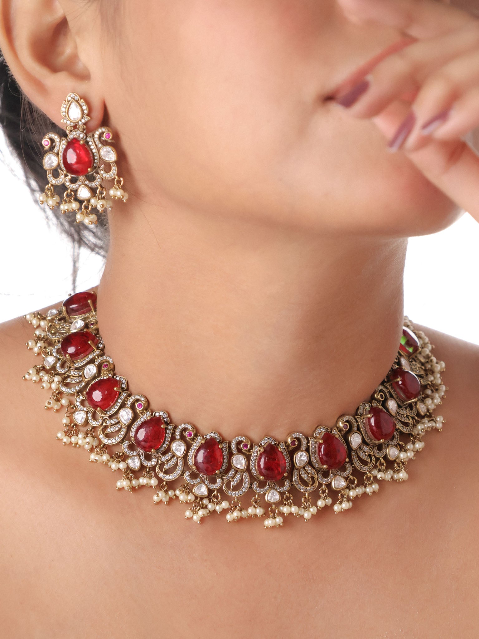 Noor-e-Pearl Polki Vintage Style Choker Set