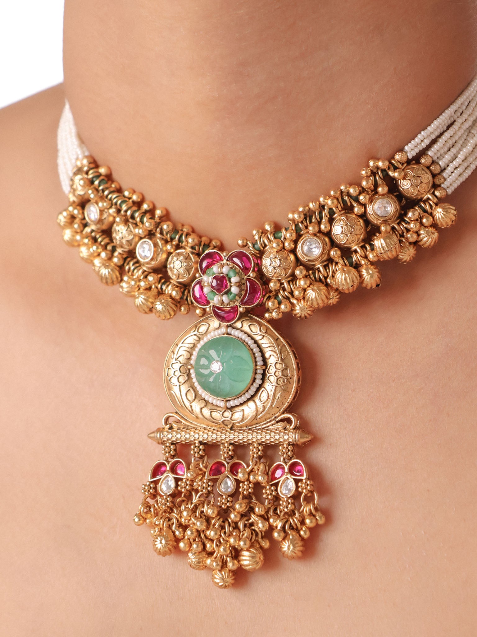 Naurattan Gulab Antique Choker Set