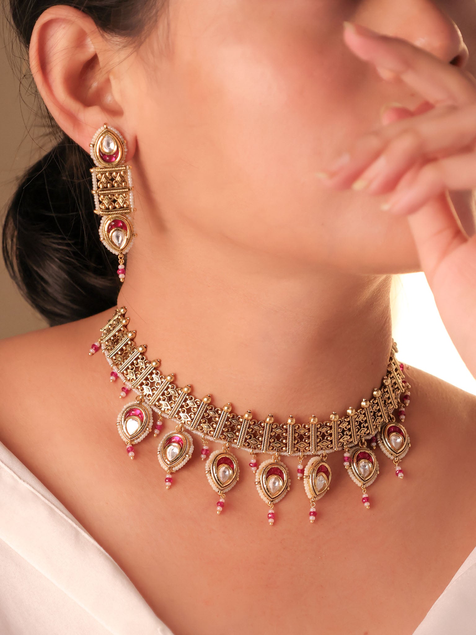 Rajwada Kundan Ruby Choker Set
