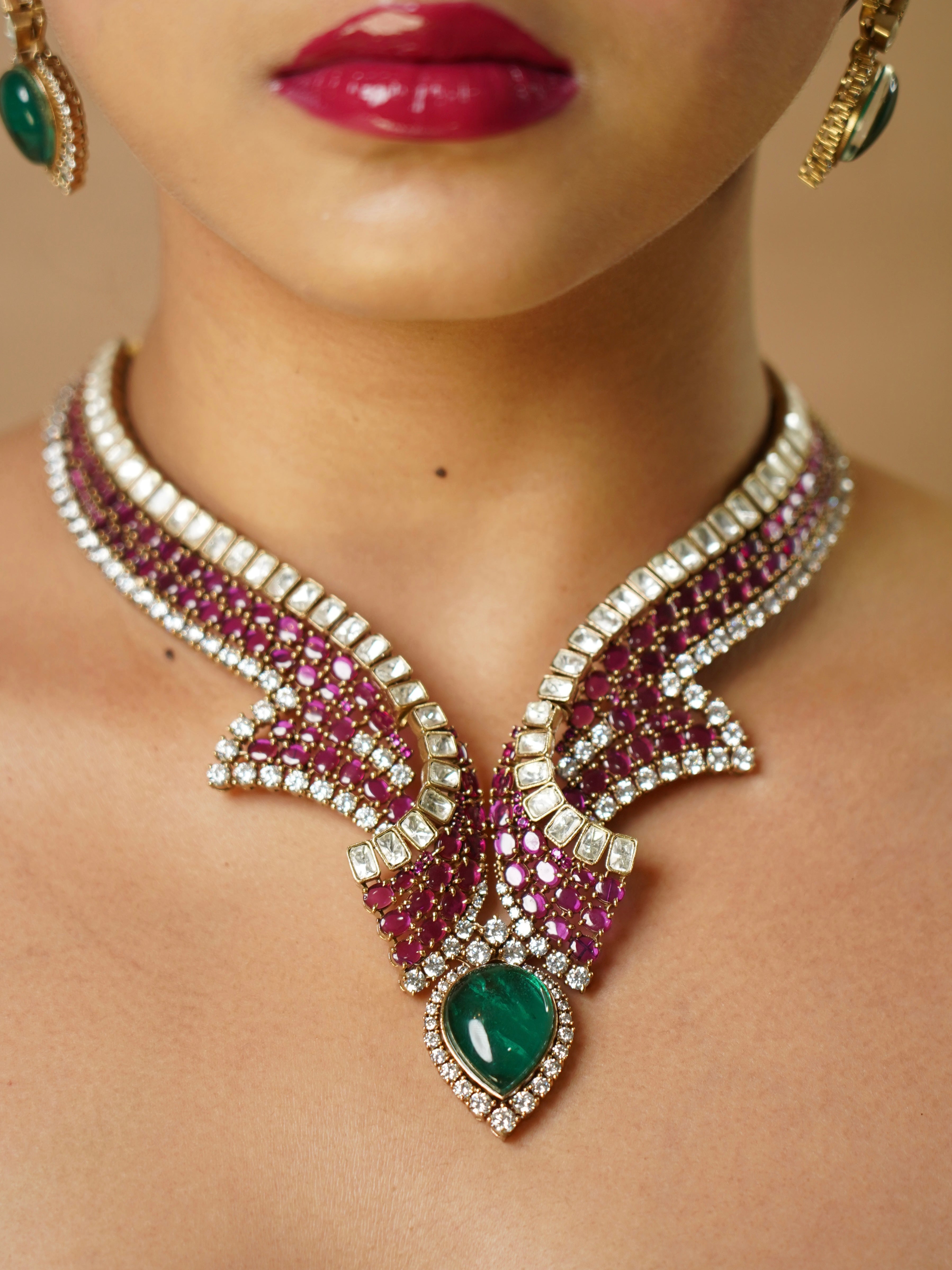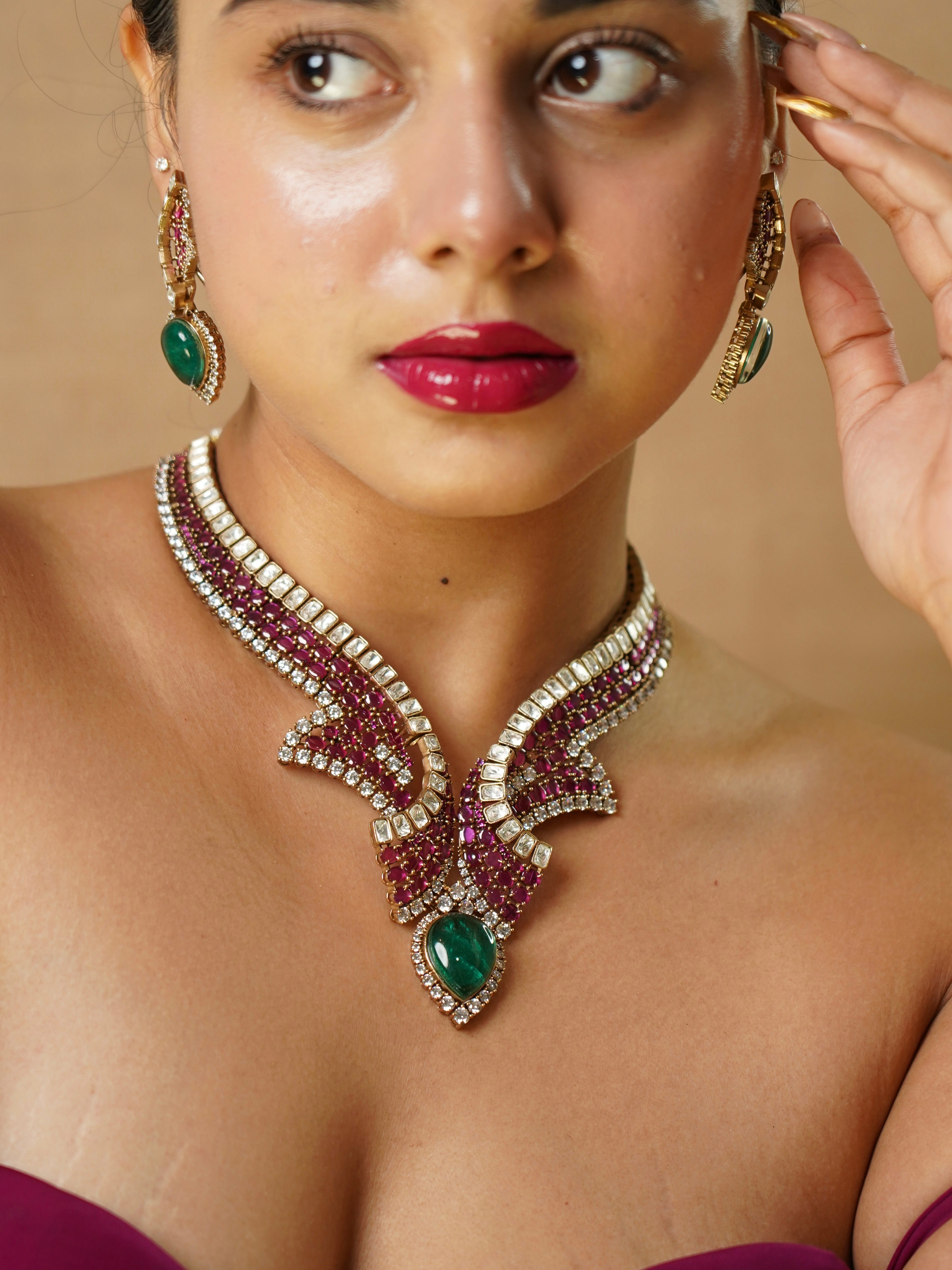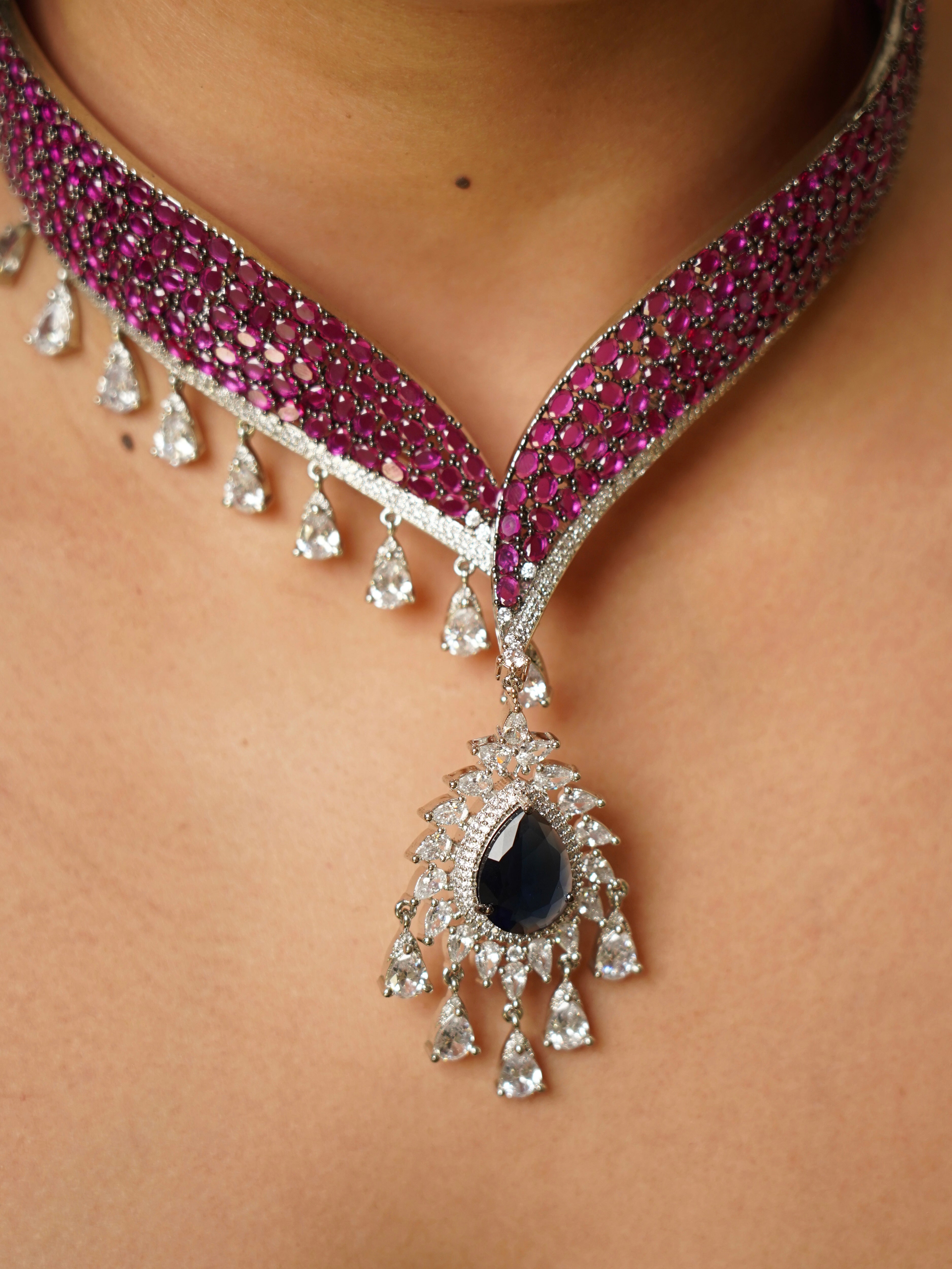 Luxe Diamond Ruby Designer Necklace Set