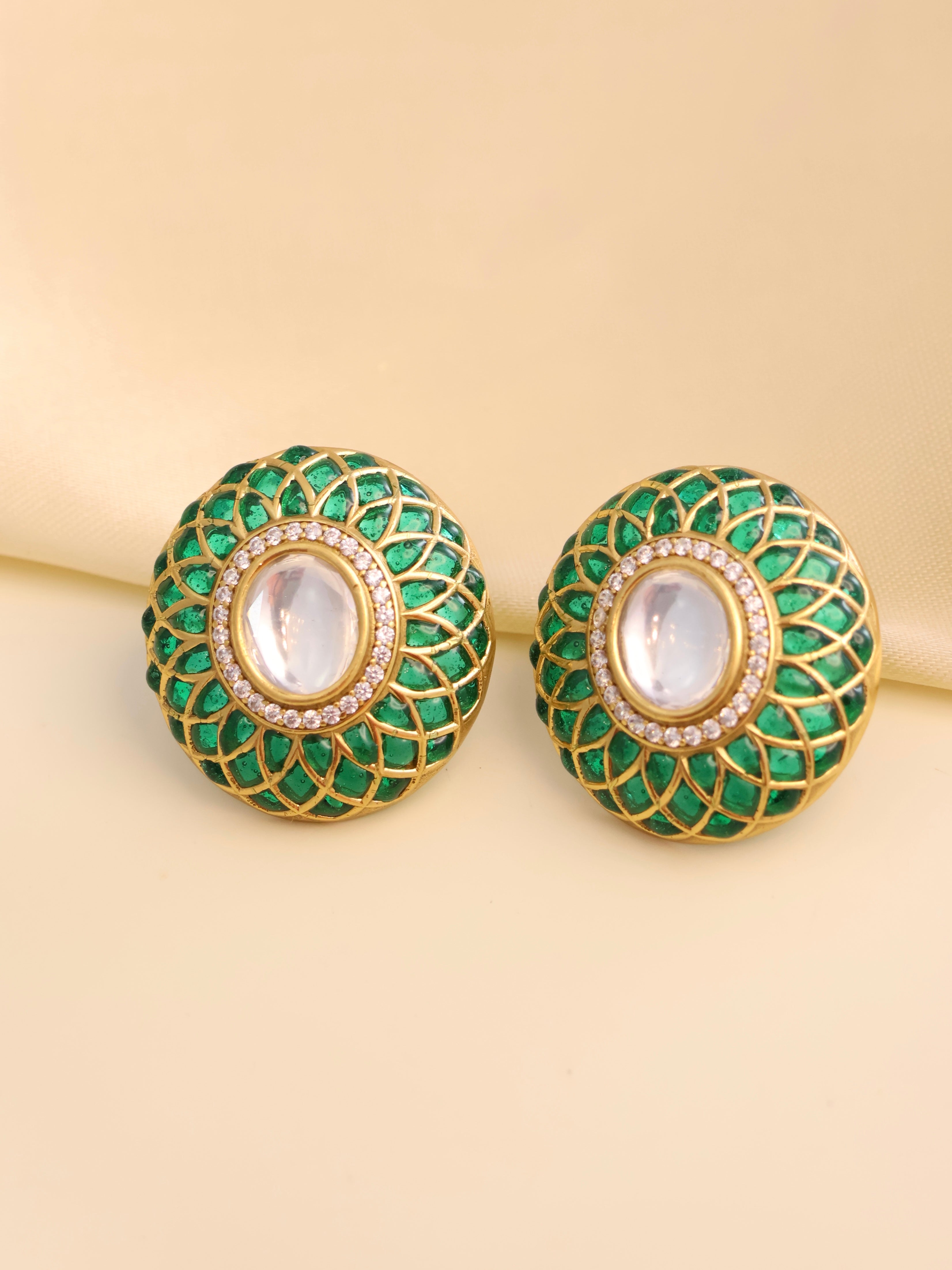 Emerald Enchantment Moissanite Stone Earrings Studs– Radiant Elegance and Vibrant Shine