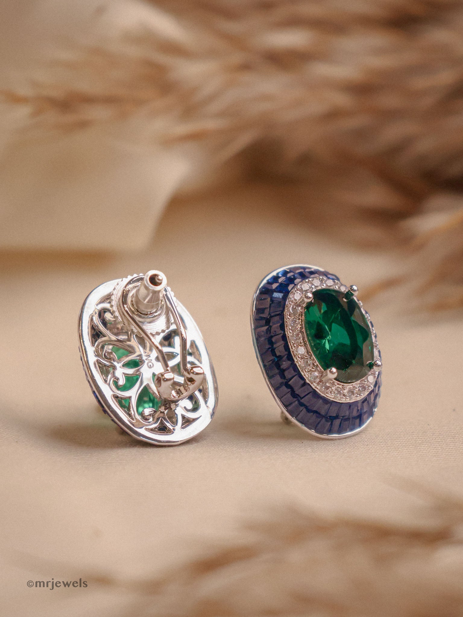Emerald studs with Ruby Stones On Sides