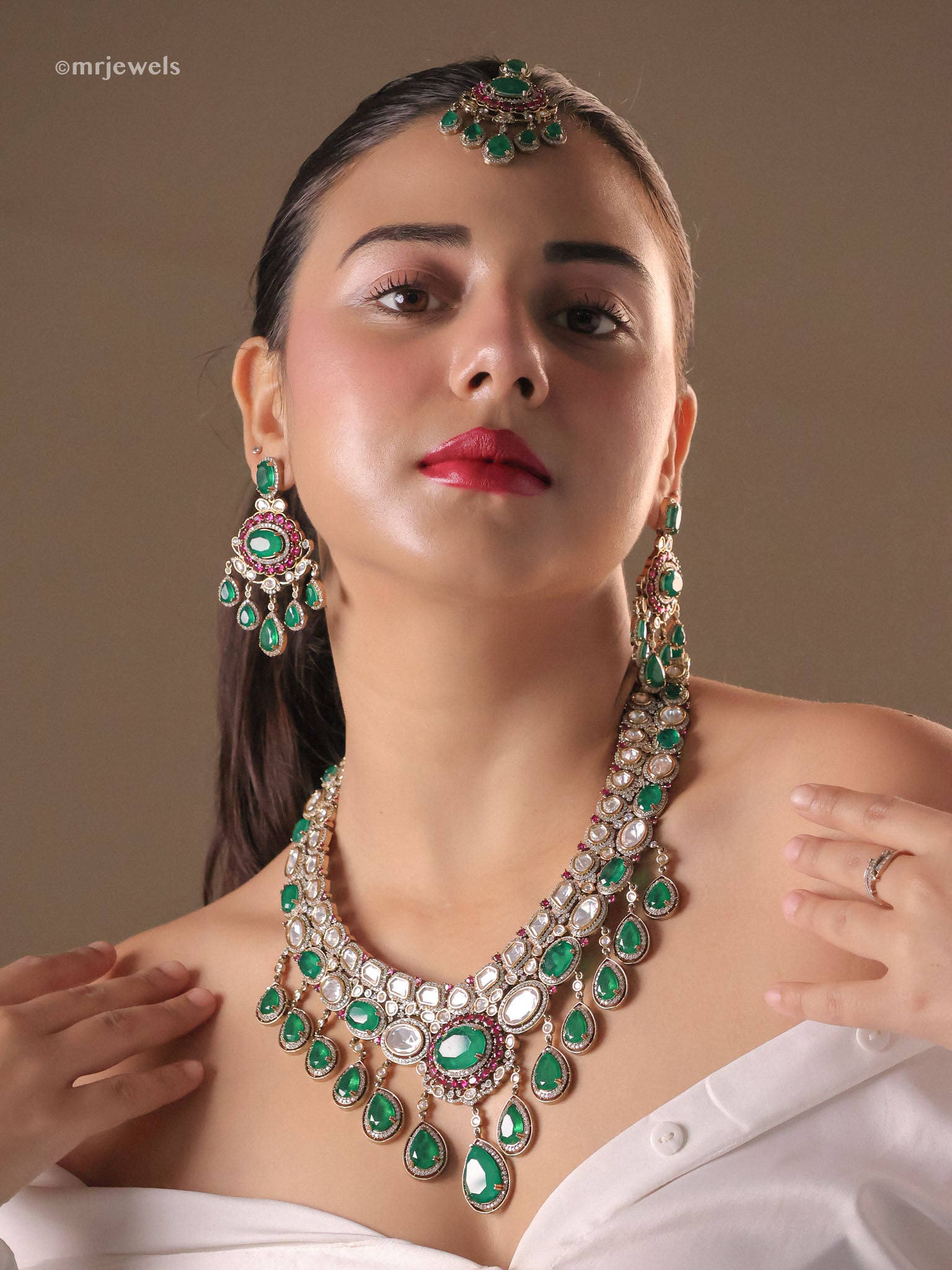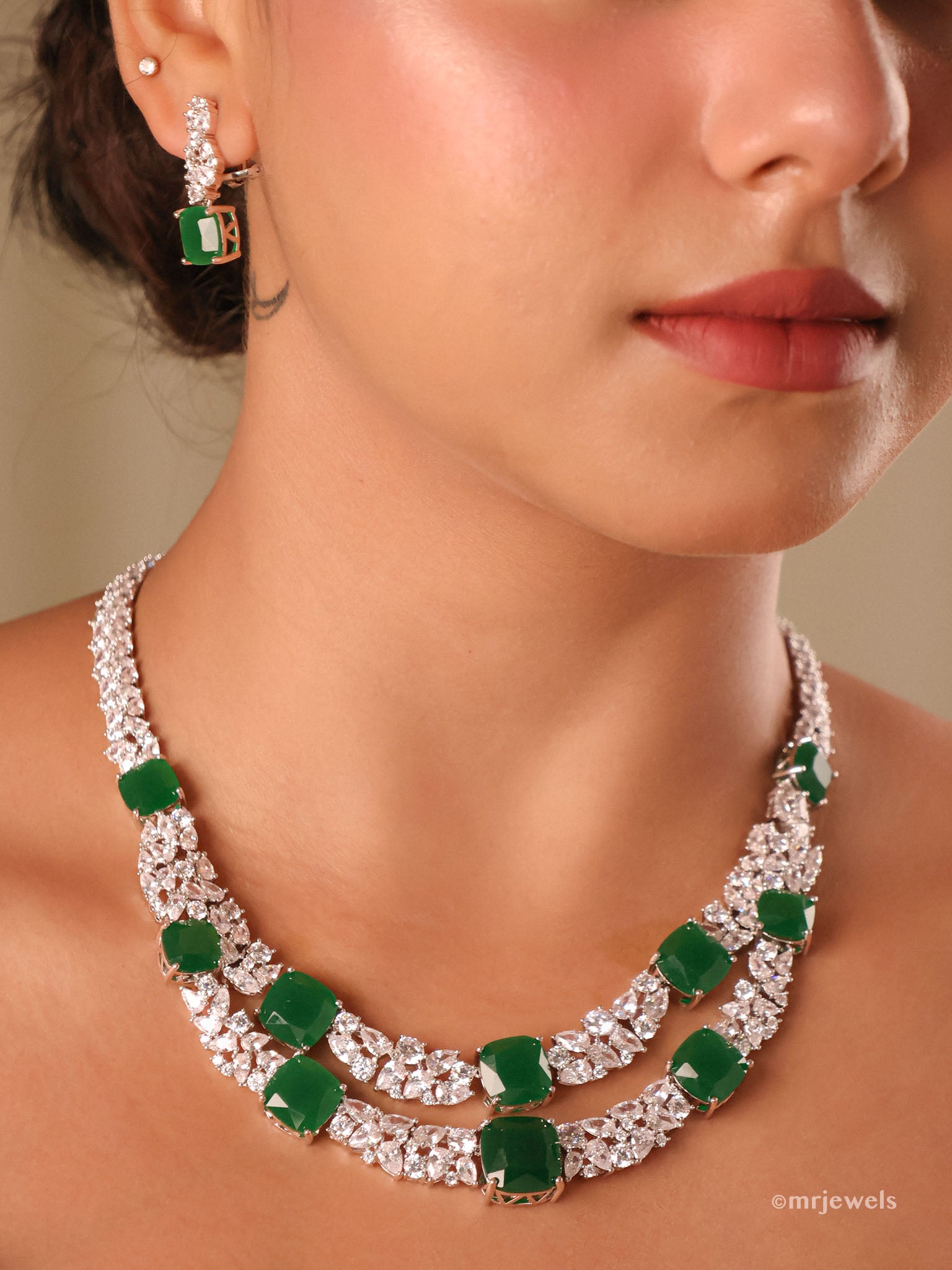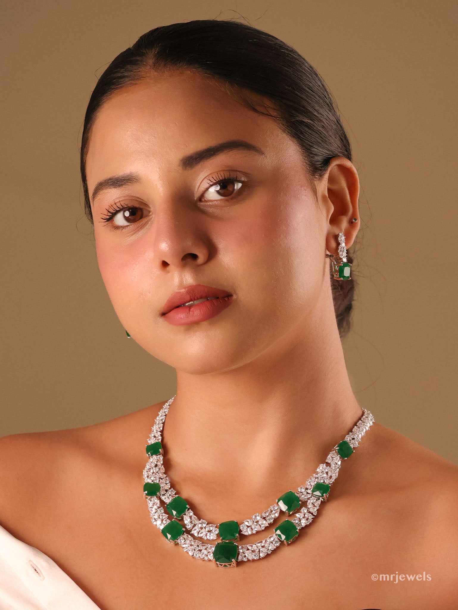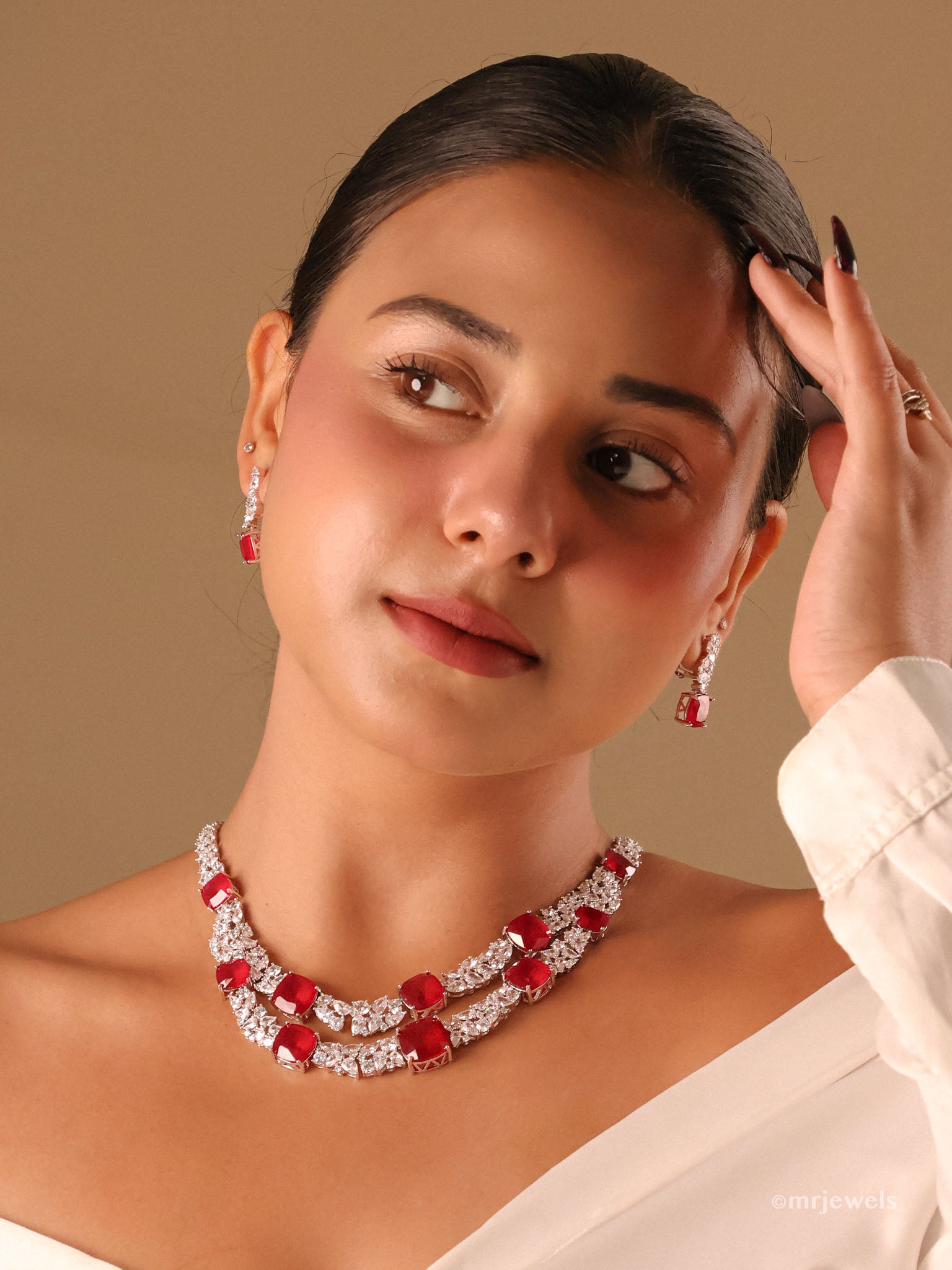 Regalia Cushion Tennis Necklace Set (Emerald/Ruby)