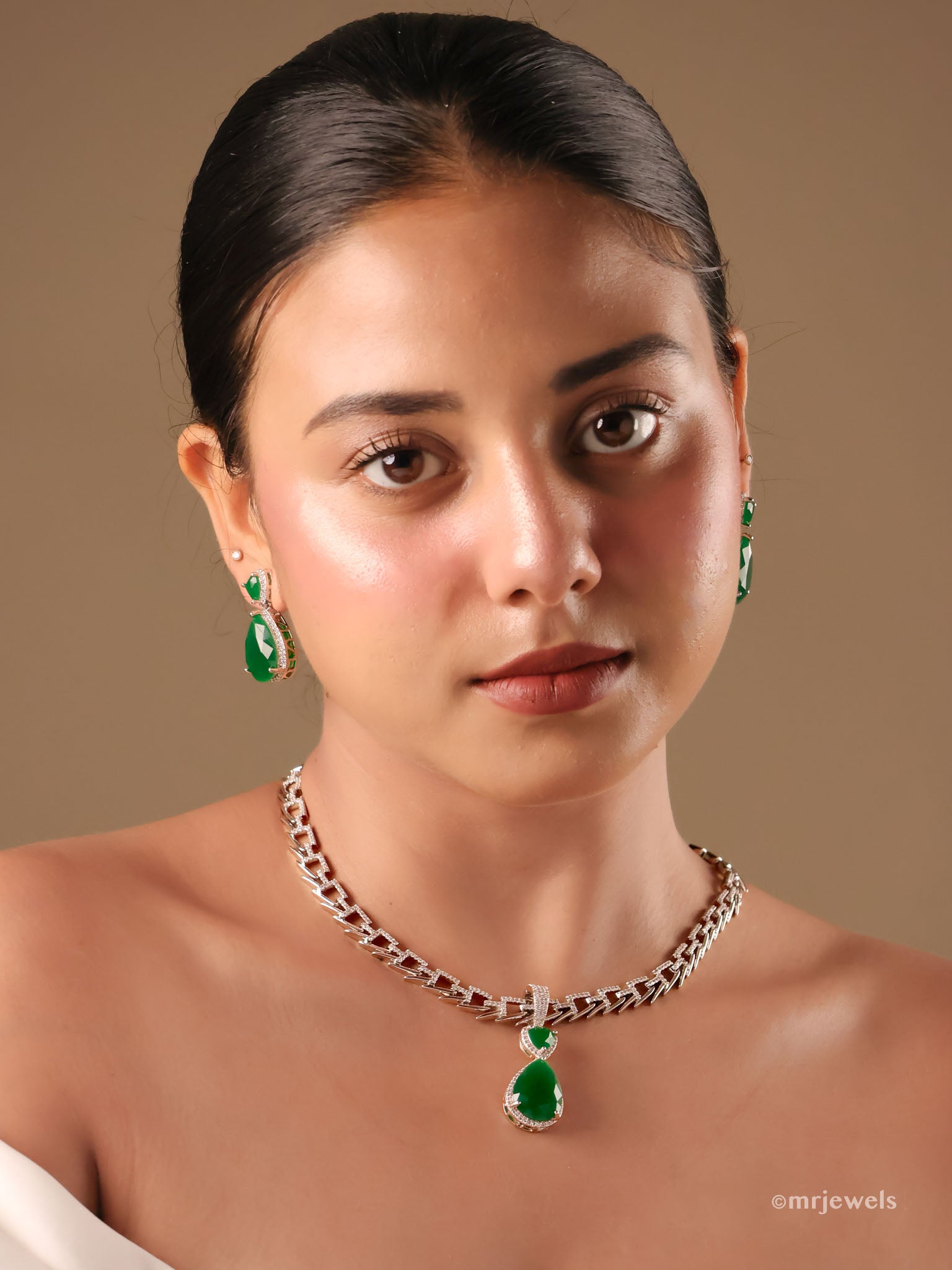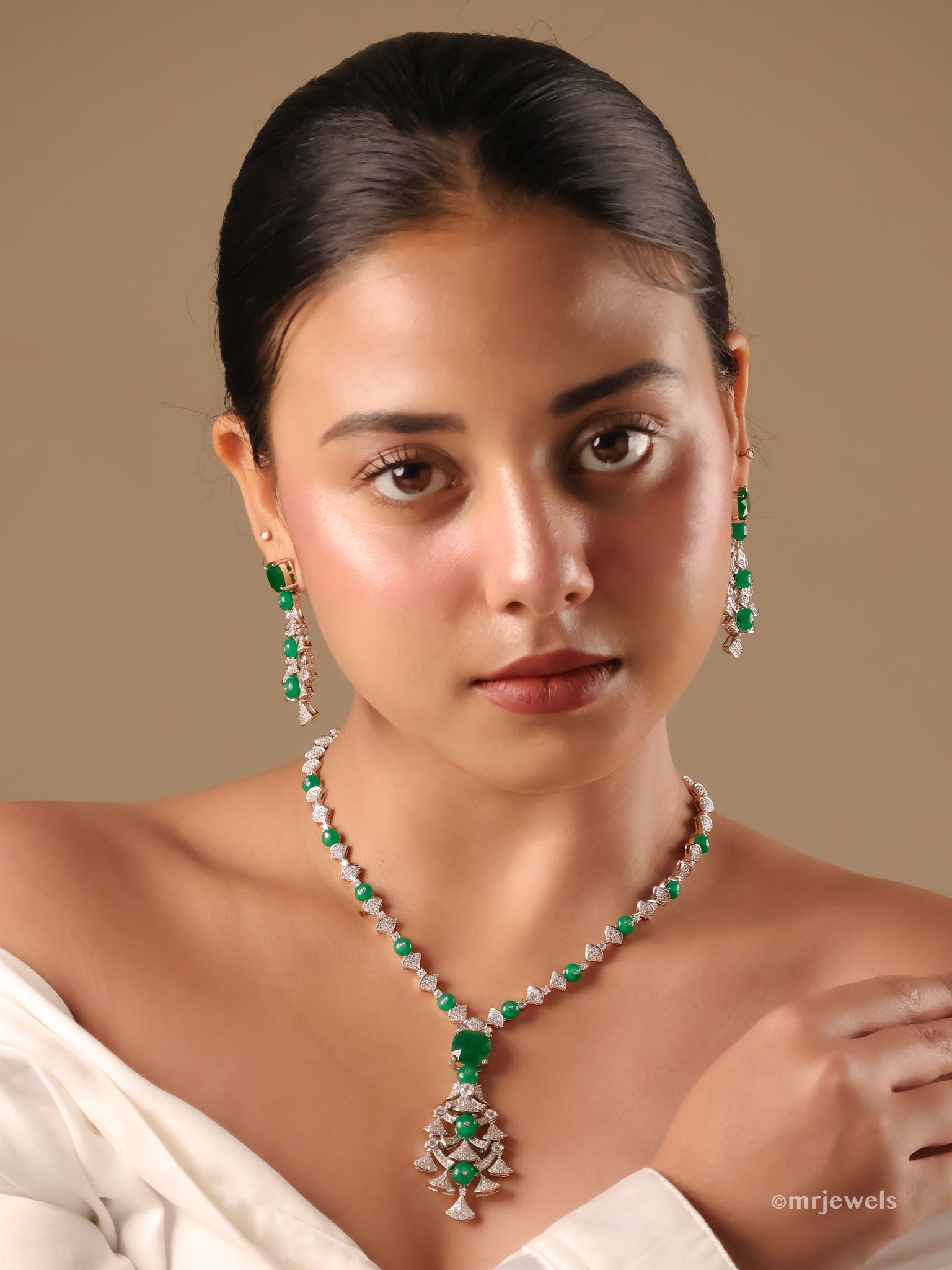 Emerald Pumpkin Beads Diamond-Necklace Set