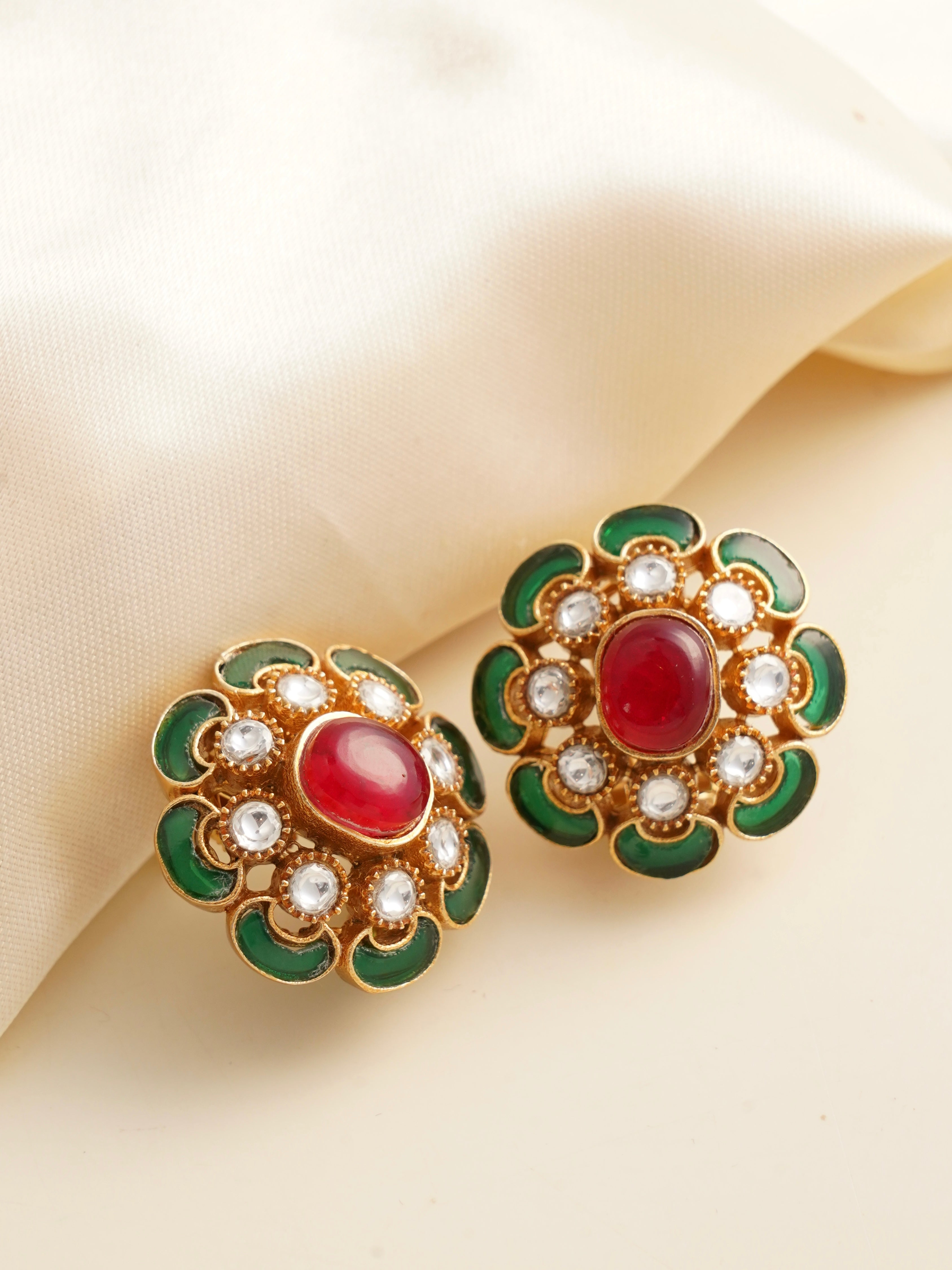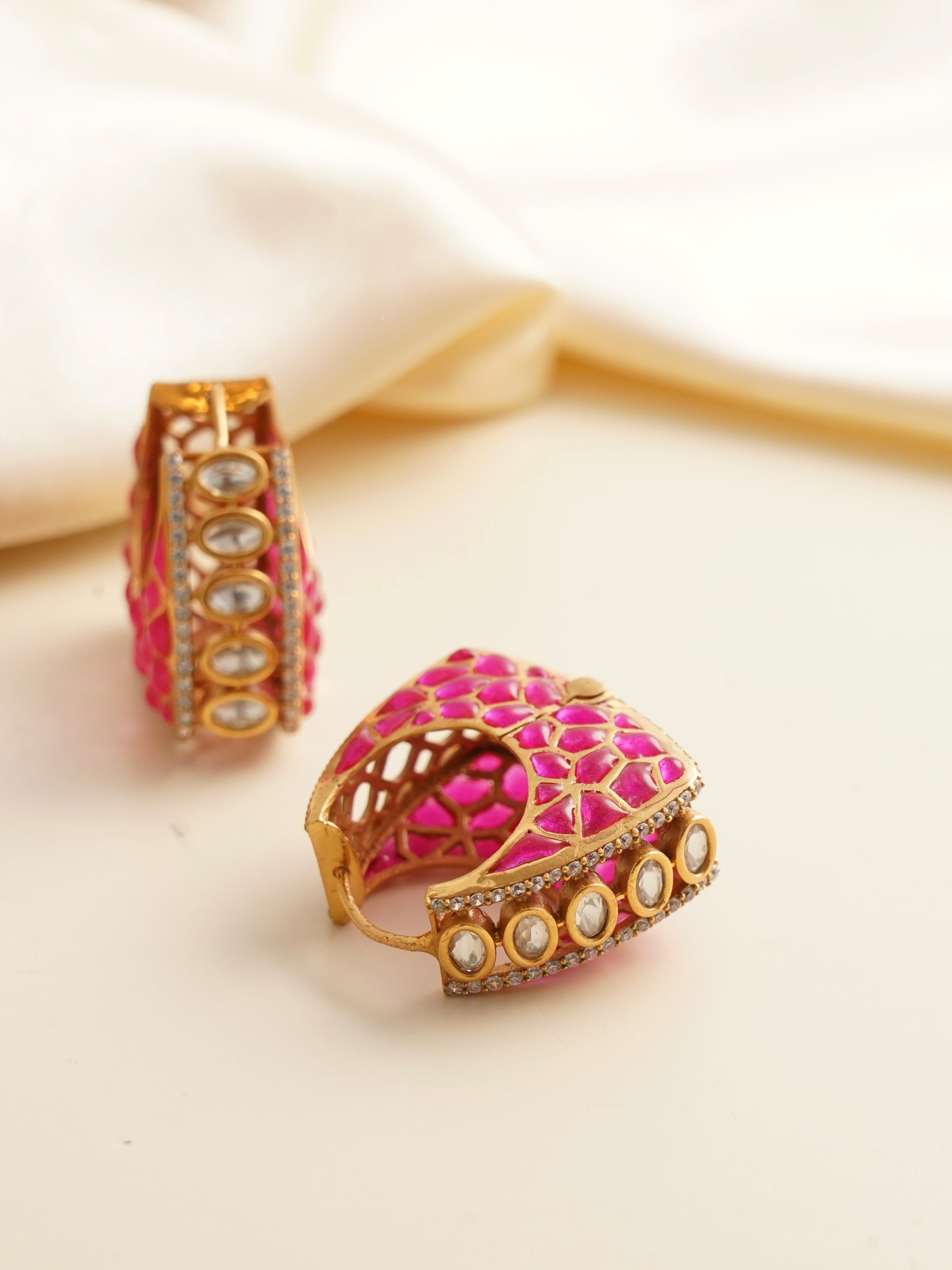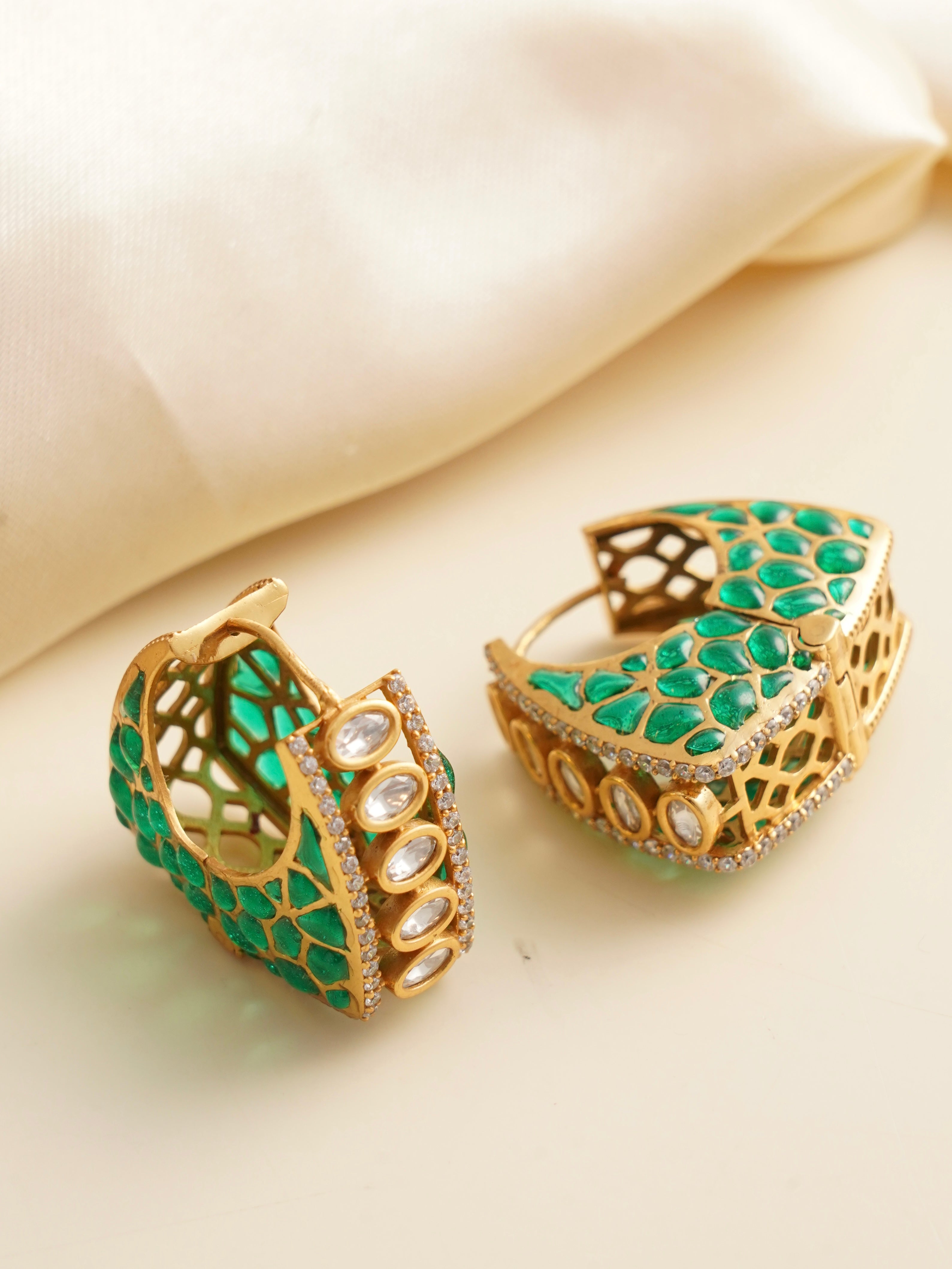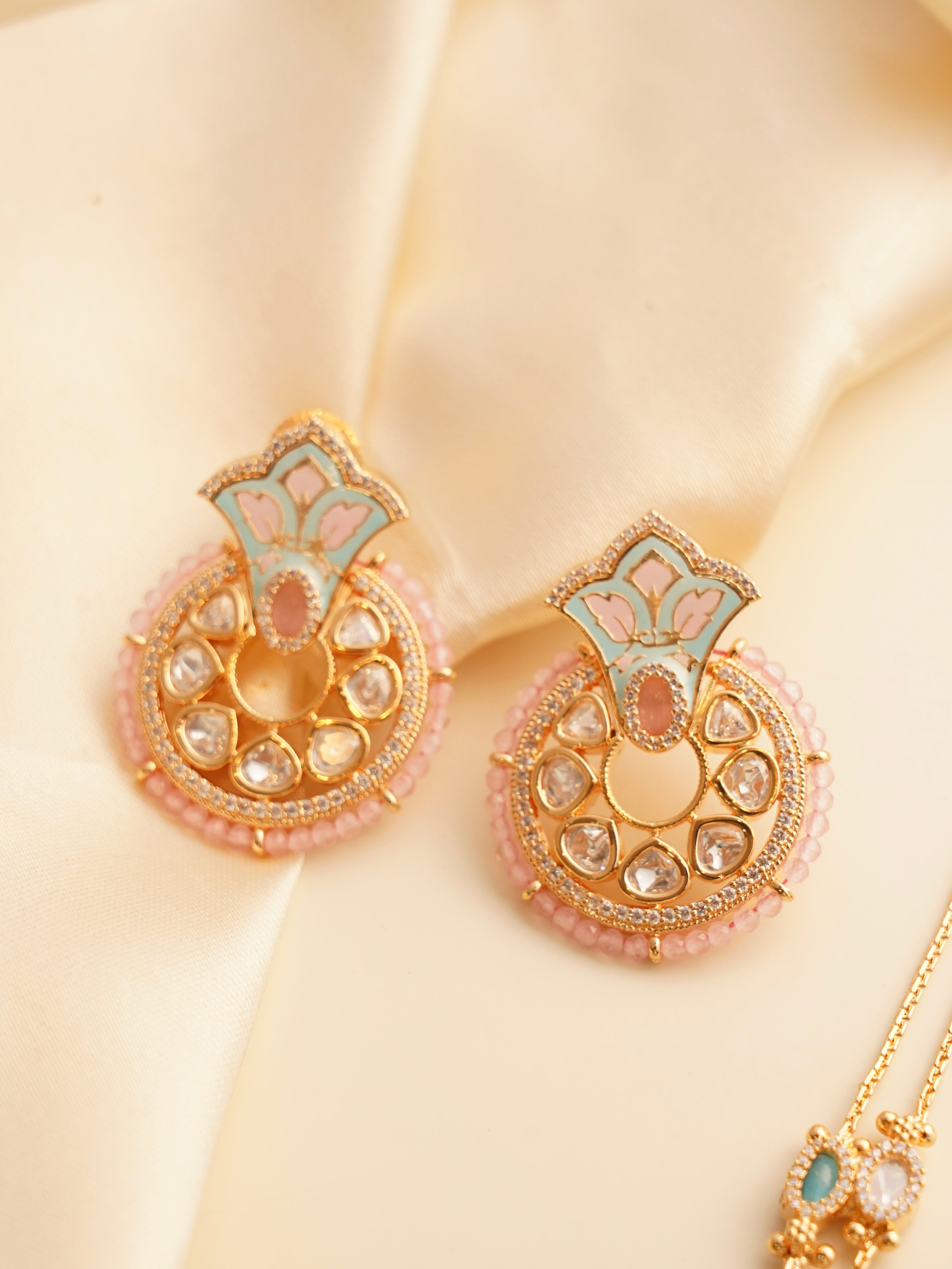 Aliya Meenakari Polki Set with matching Earrings and Maangtika