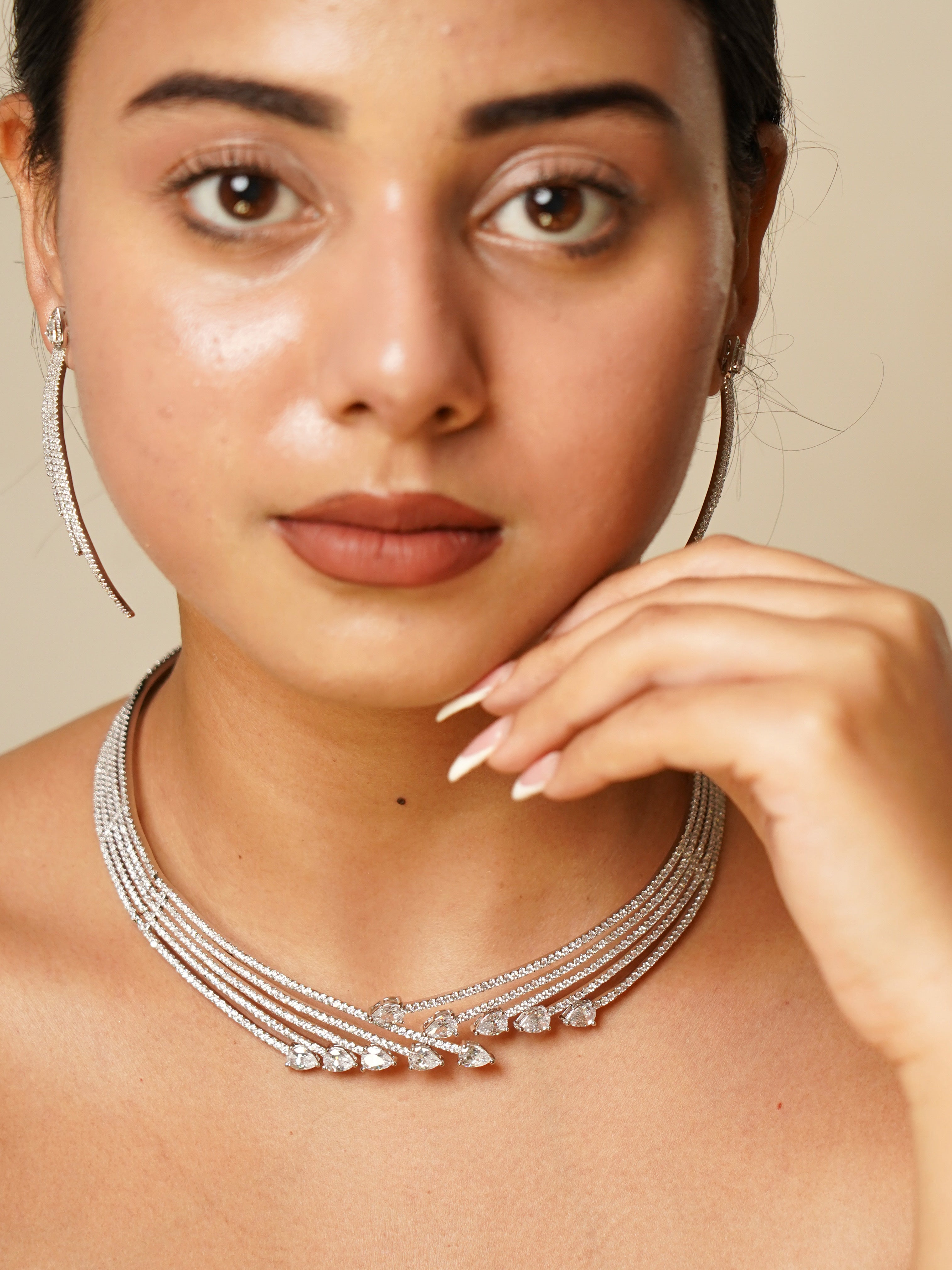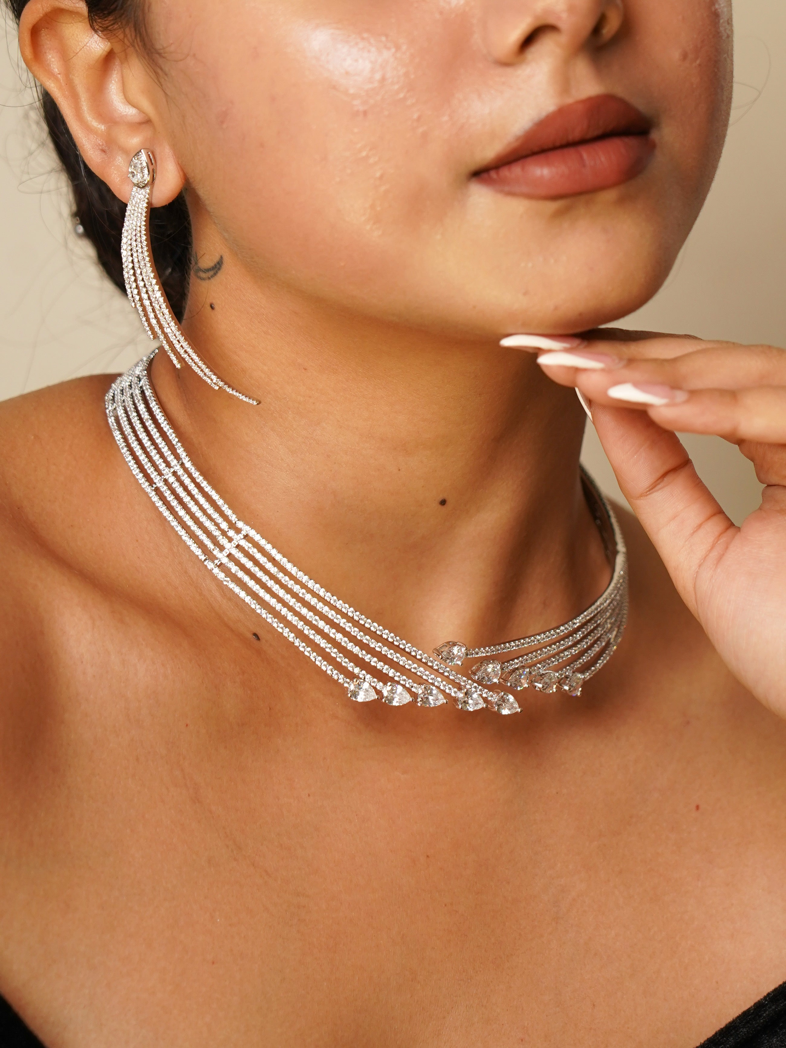 Designer Diamond Necklace Set with Matching Earrings