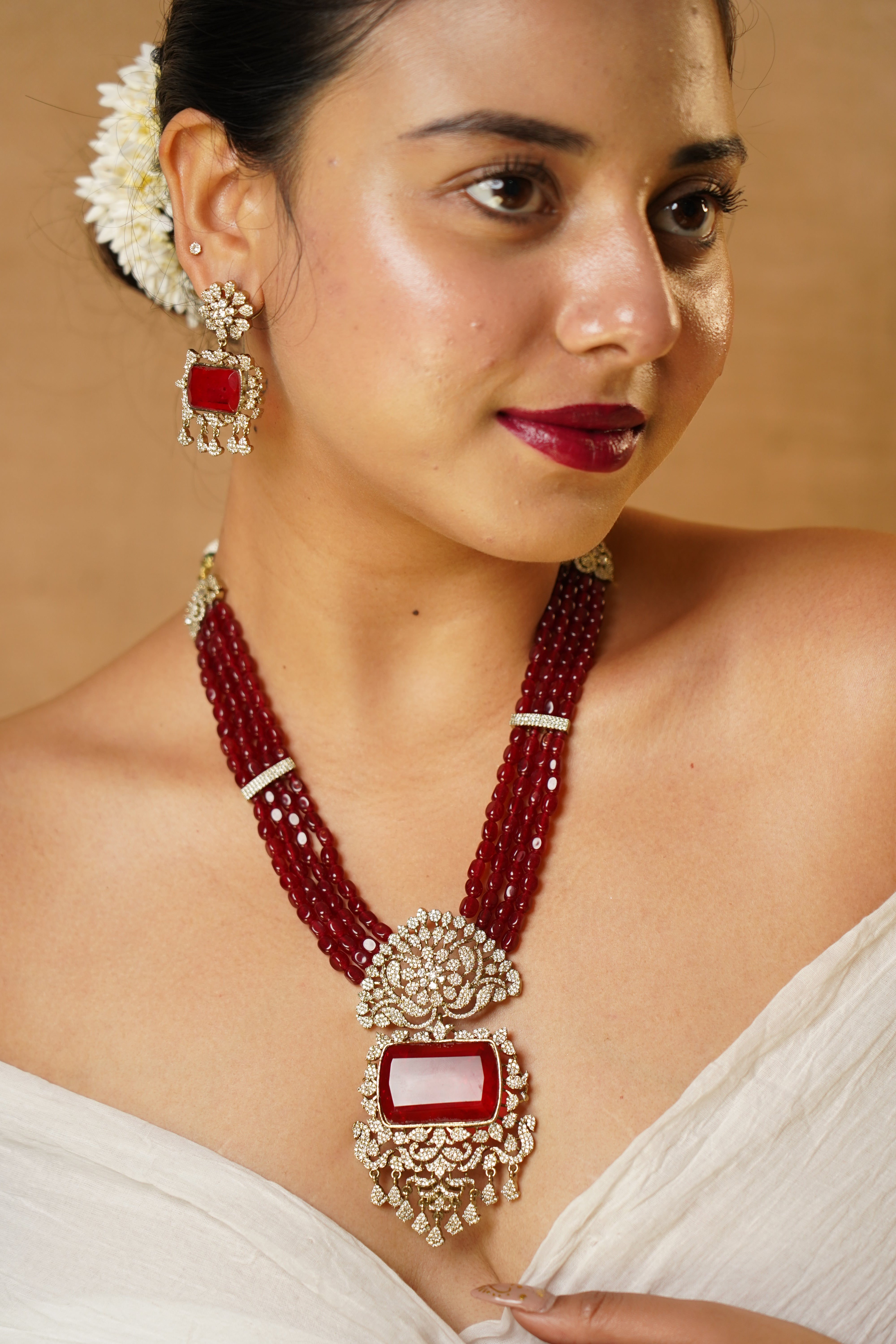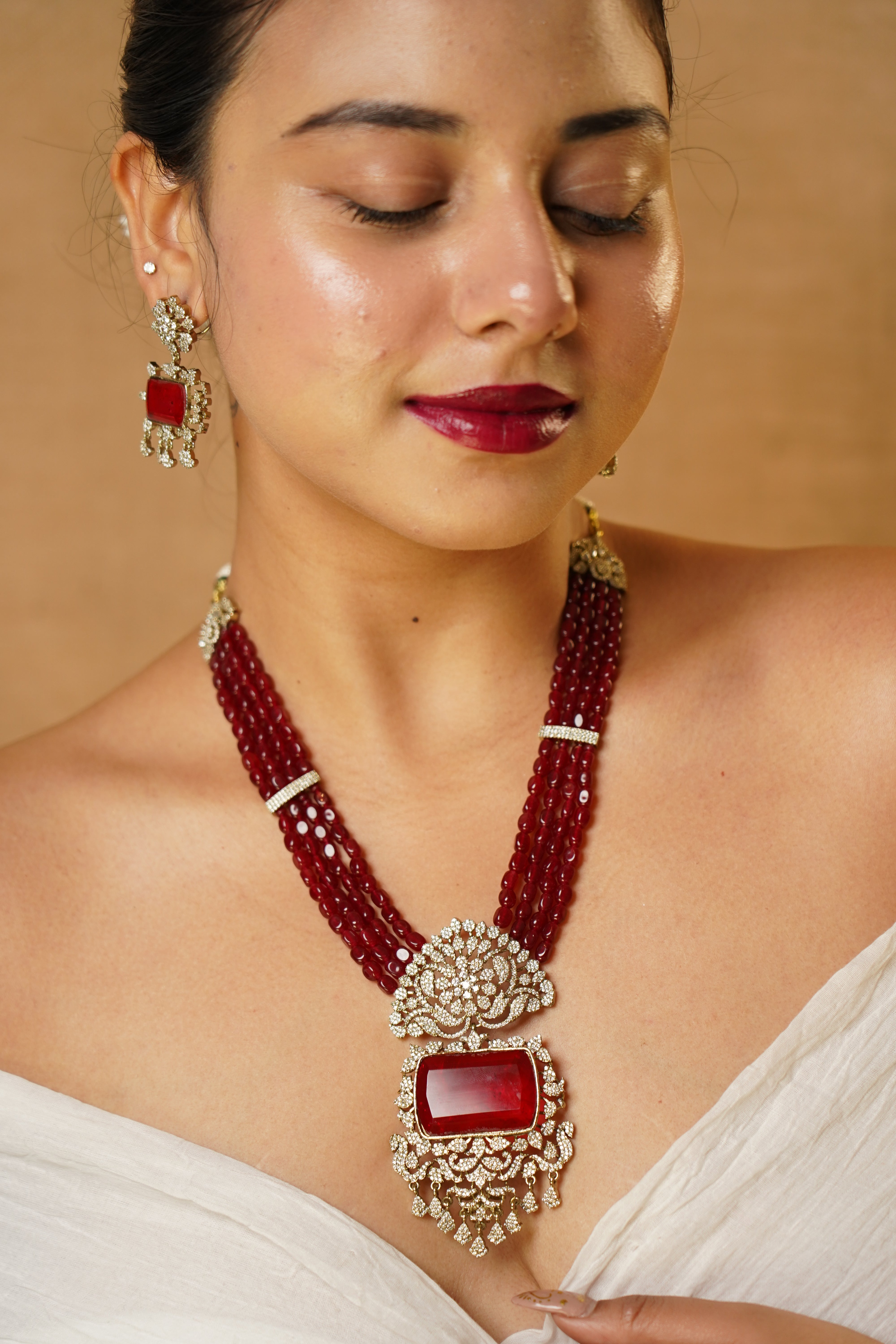 Noorani Ruby Emerald Victorian Kundan Necklace Set with Maang Tikka