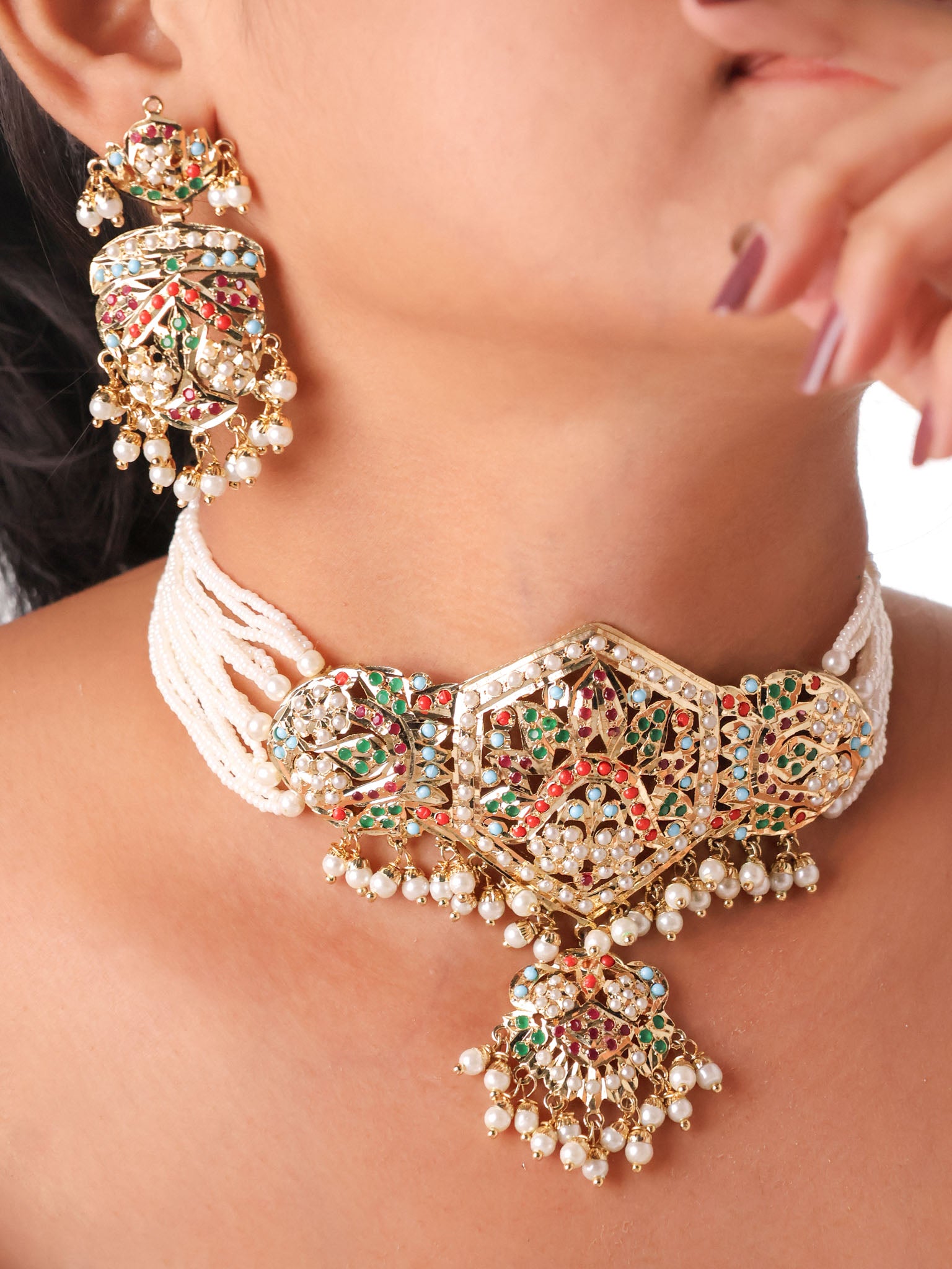 Navratan Jadau Meena Royale Choker Set