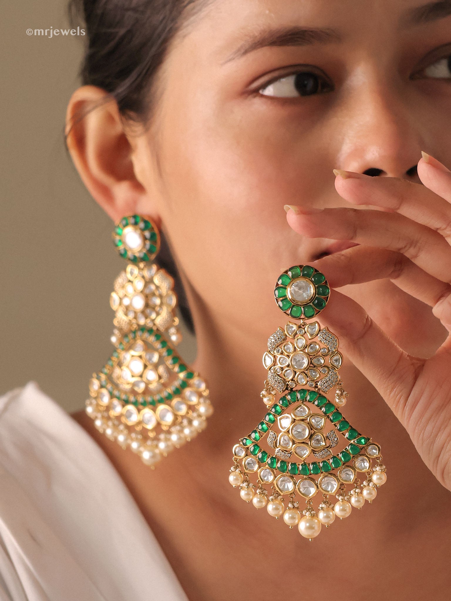 Aarohi Kundan Chandbalis (Emerald/Mint/Rose)