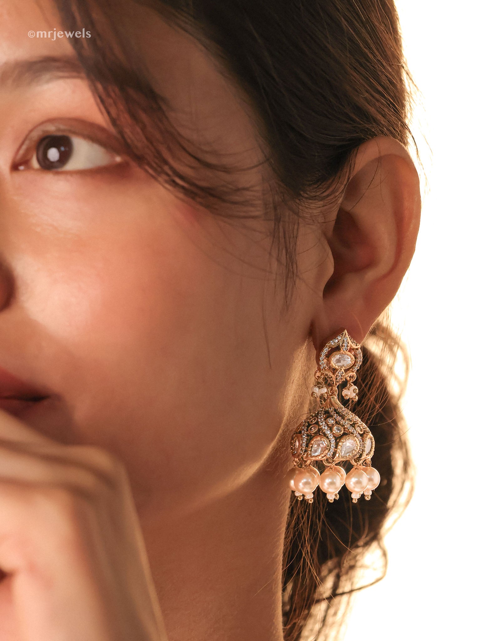 Mayuri Kundan Peacock Pearl Dangler Earrings