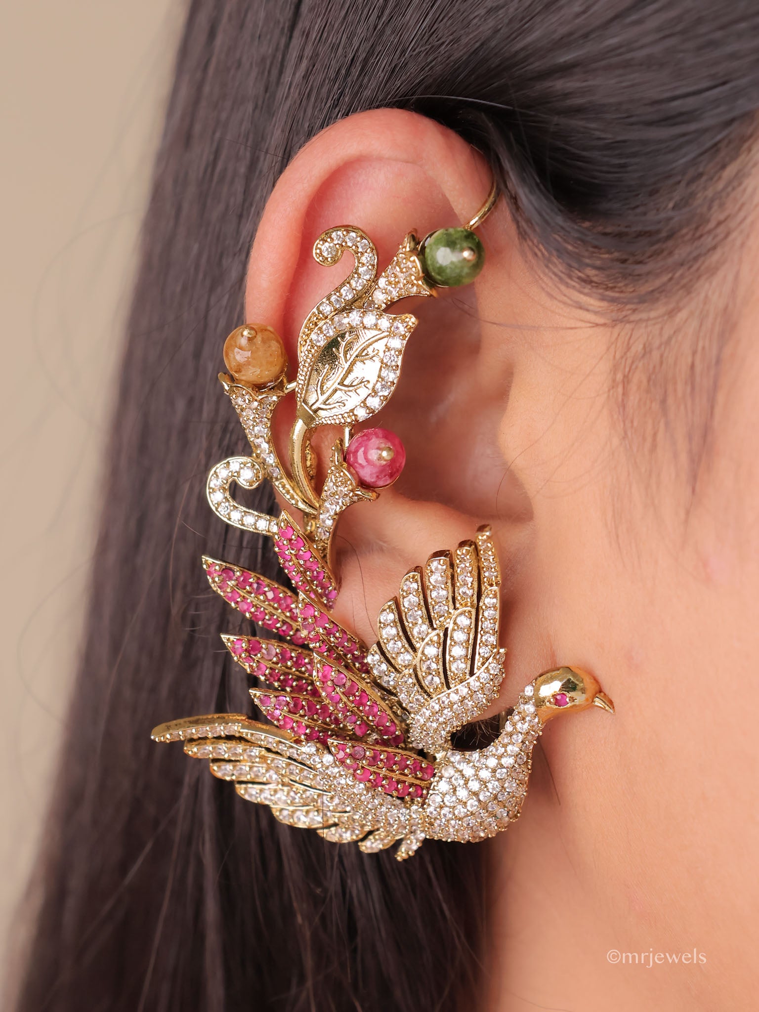 - Stones: High-sparkle AAA CZ + coloured crystal beads (Emerald Green / Amethyst Purple accents)