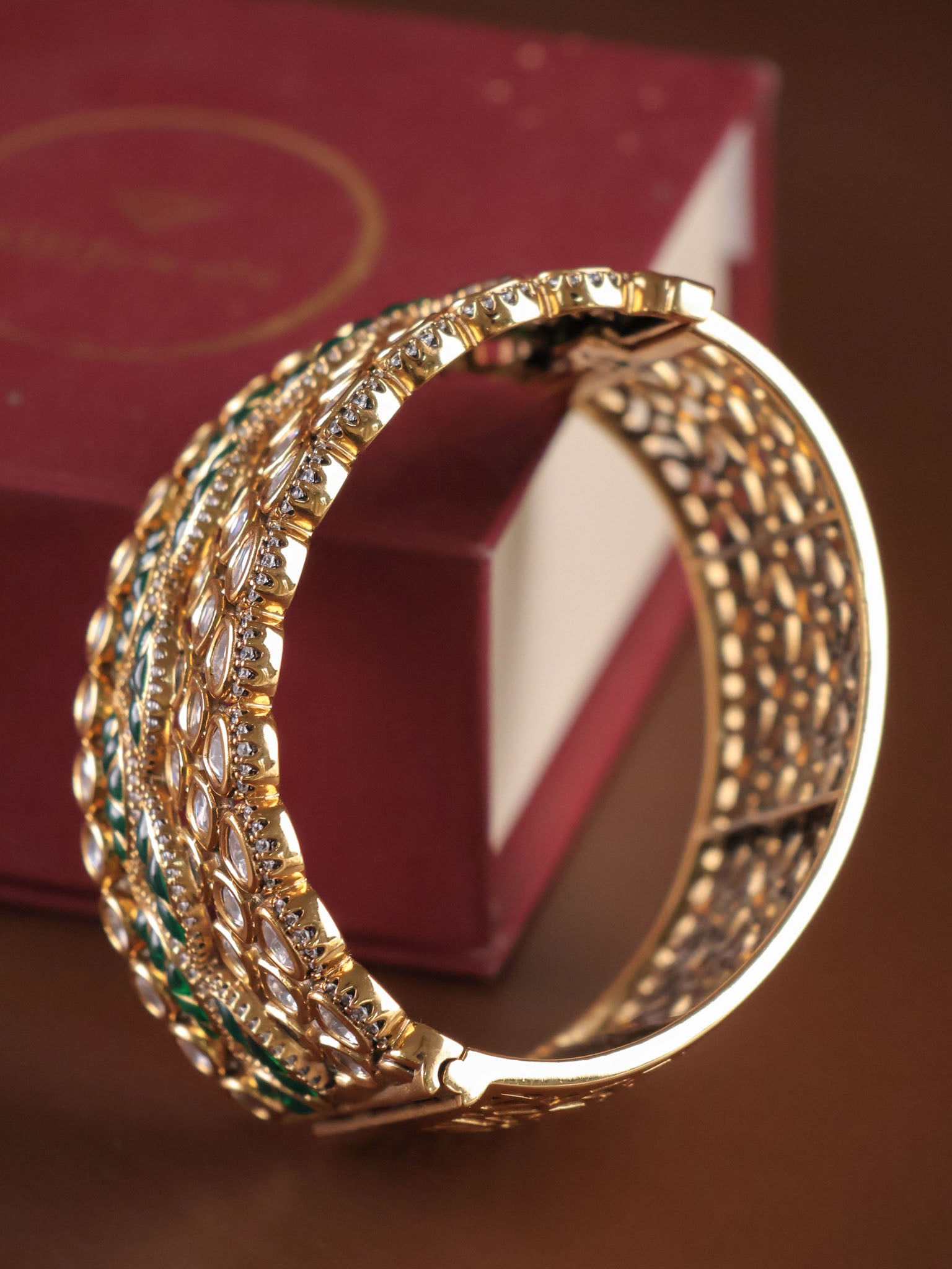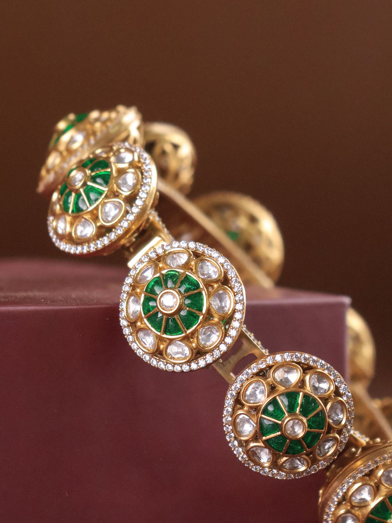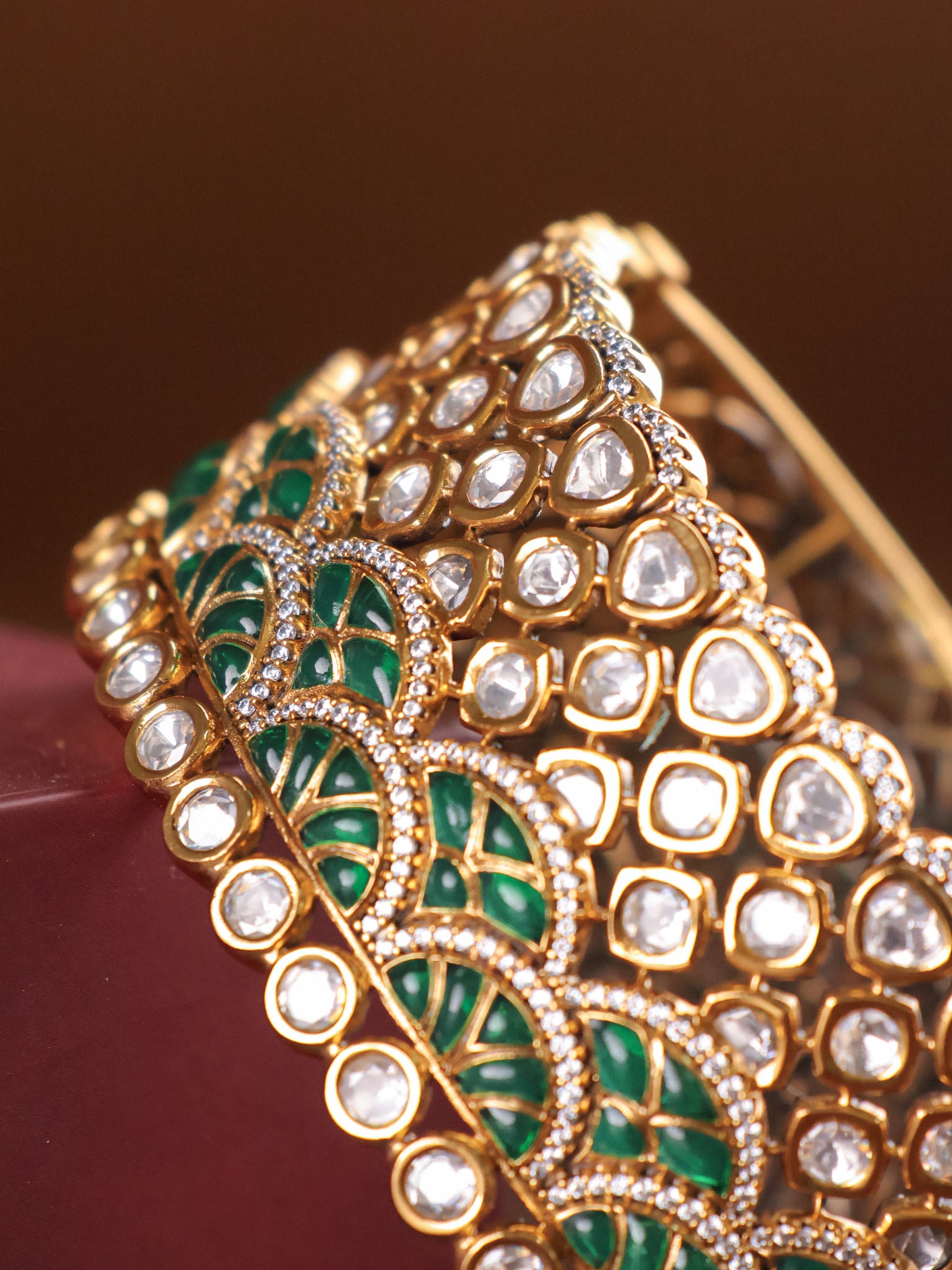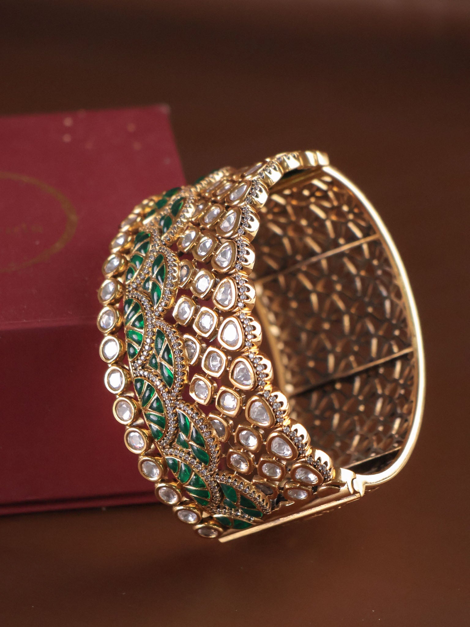 Artistic Emerald Polki Kundan Kada ( Openable)