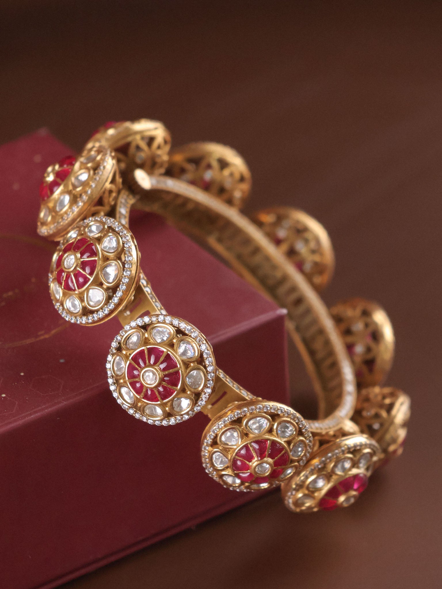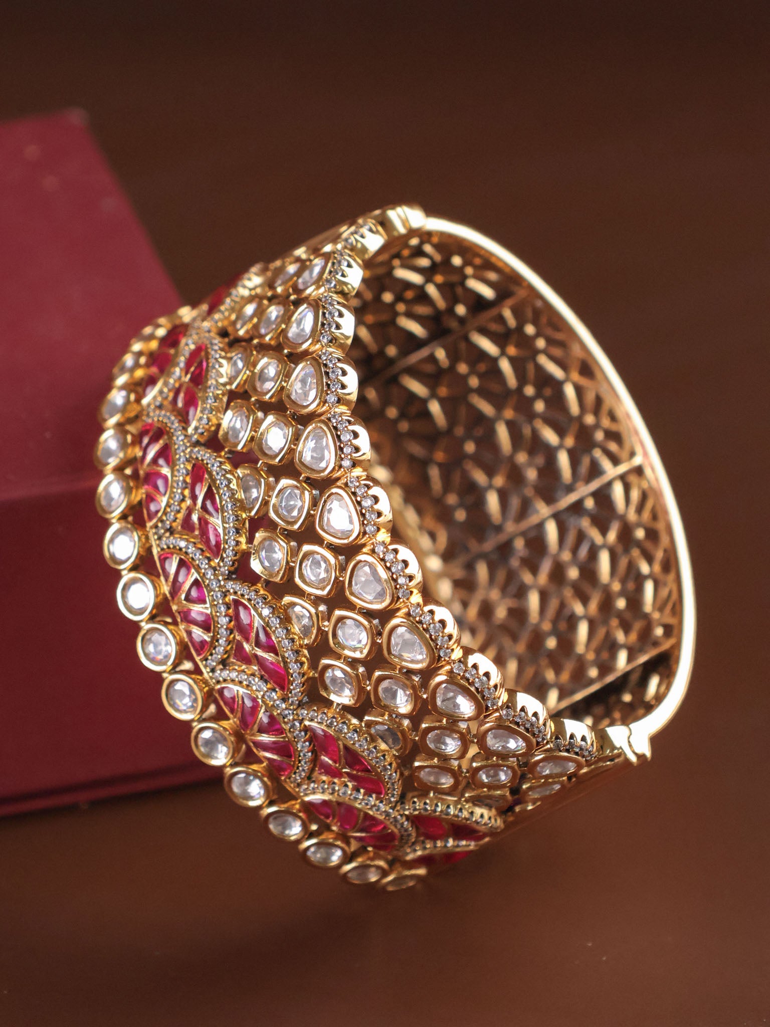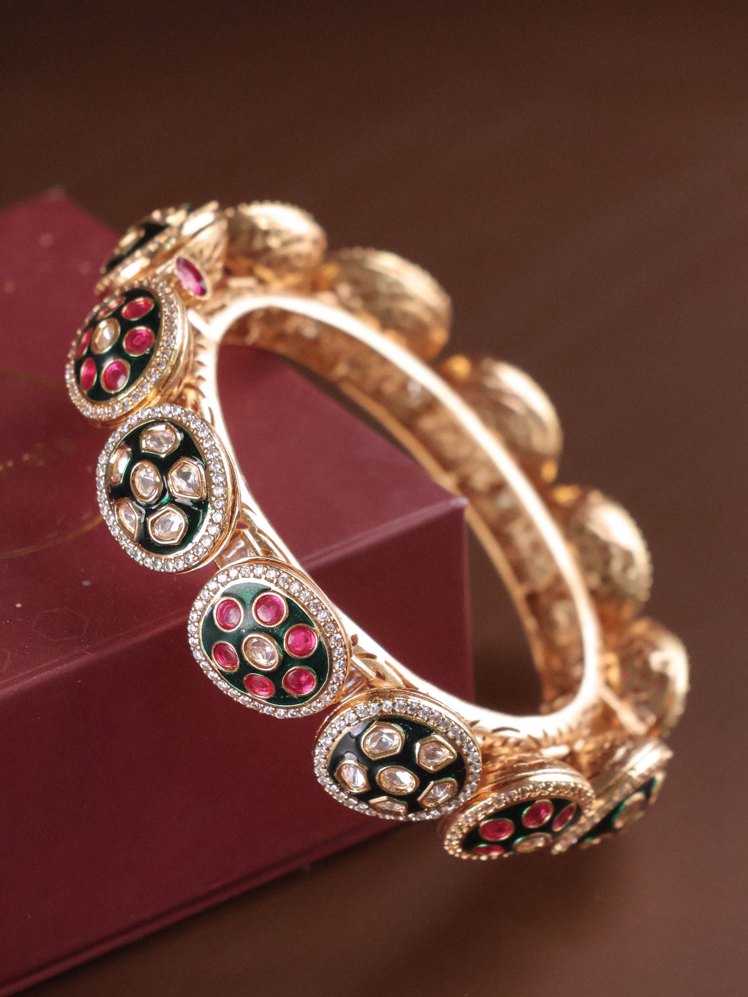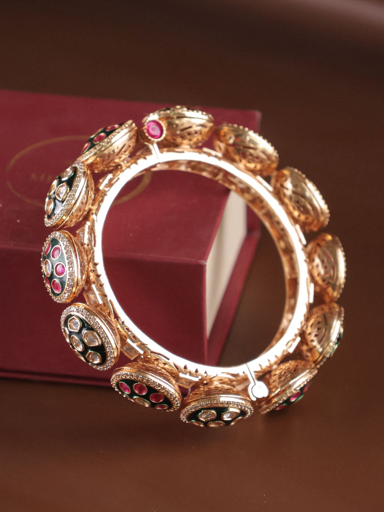 Gold Finished Kundan Polki Kada With Intricate Meenakari Work-Openable