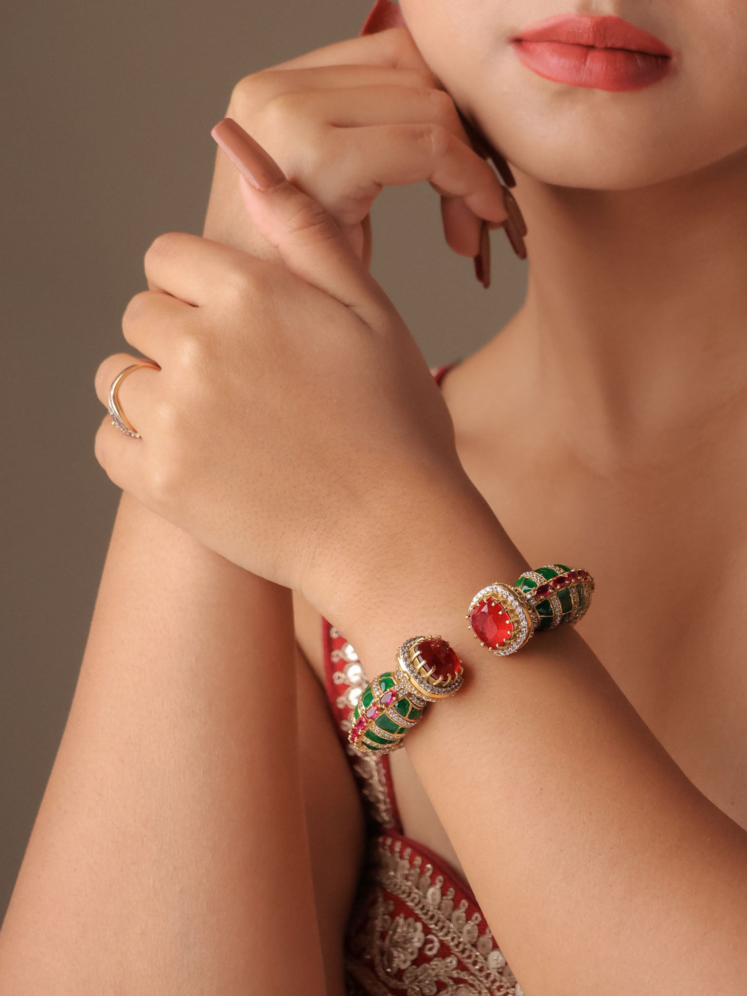 A kada is a thicker cuff that can be worn solo or as a pair. A bangle is a rigid circular band. A bracelet is usually flexible and fastens with a clasp. Each style offers a distinct look and feel.