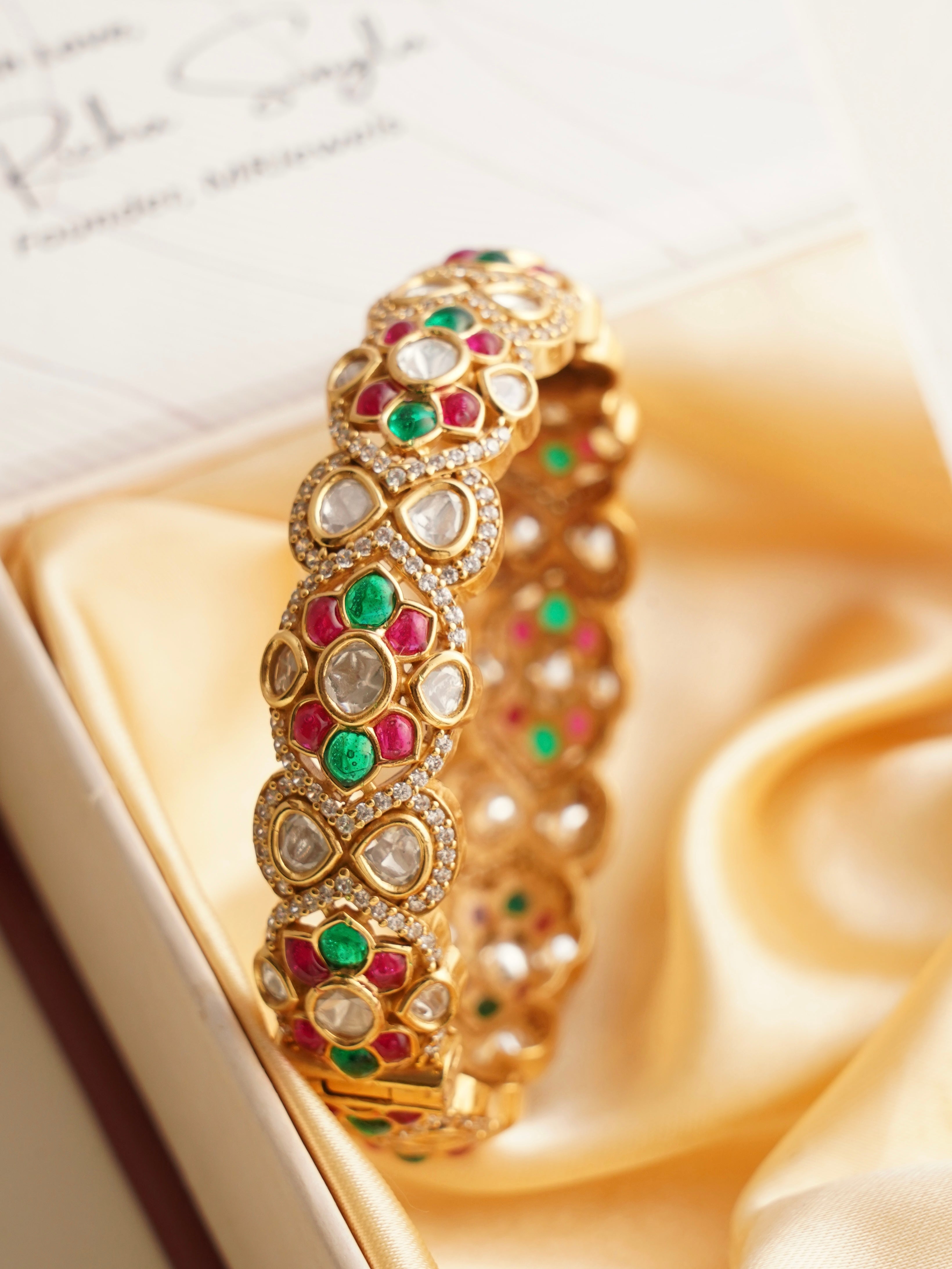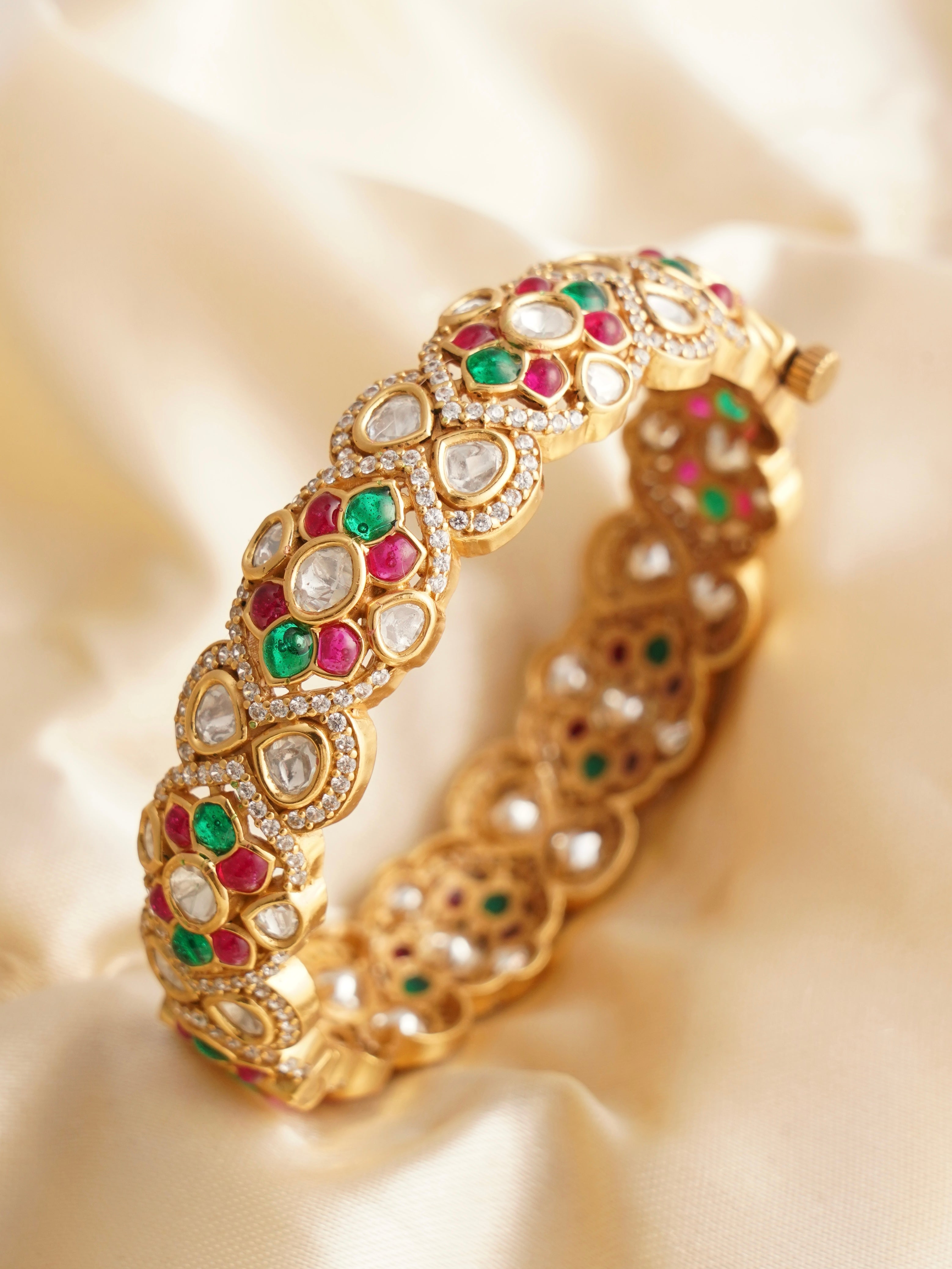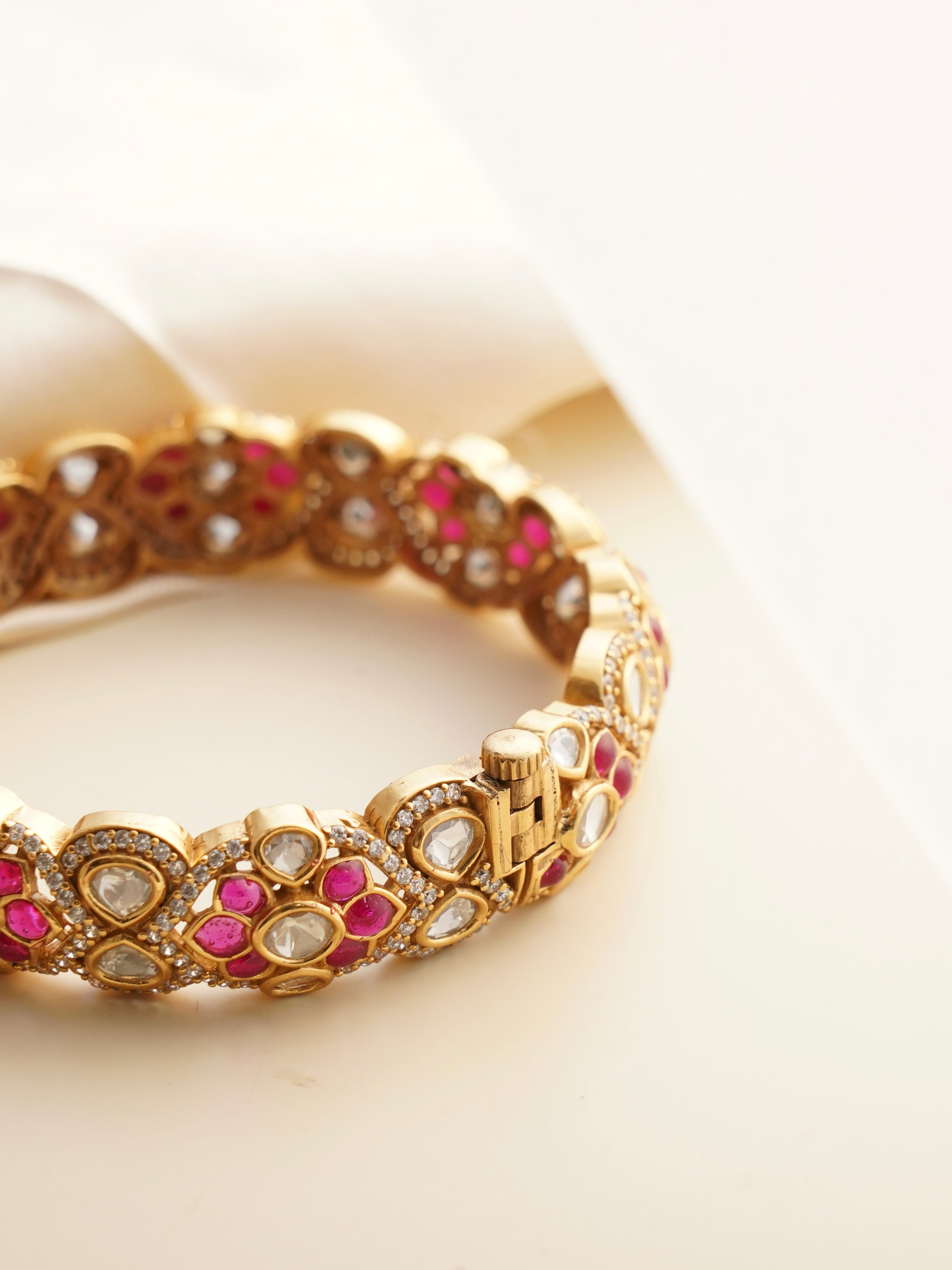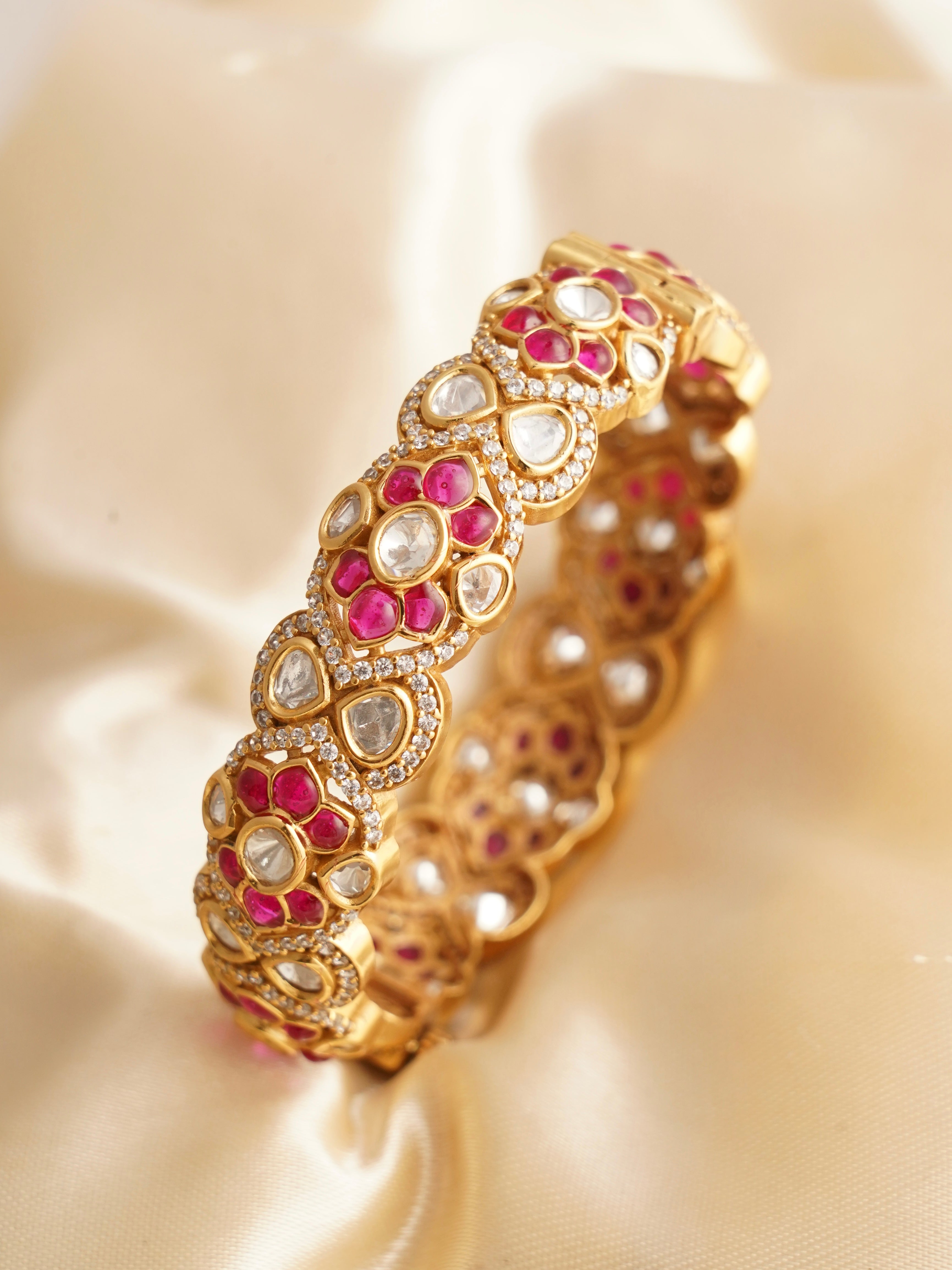 A kada is a thicker cuff that can be worn solo or as a pair. A bangle is a rigid circular band. A bracelet is usually flexible and fastens with a clasp. Each style offers a distinct look and feel.