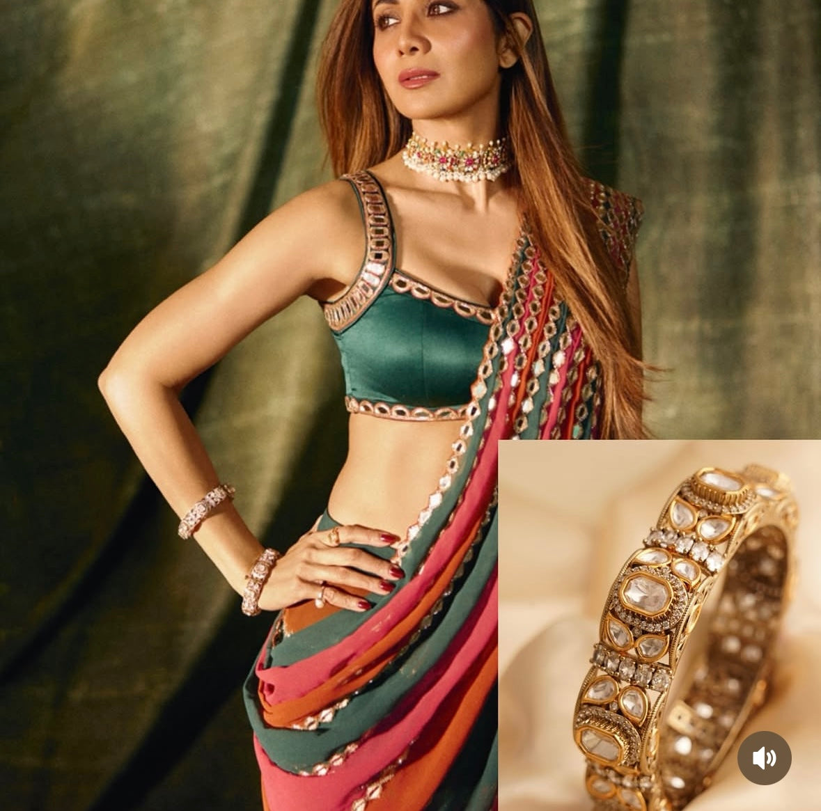 Polki-studded heritage kada with kundan artistry and gold-plated openable brass frame