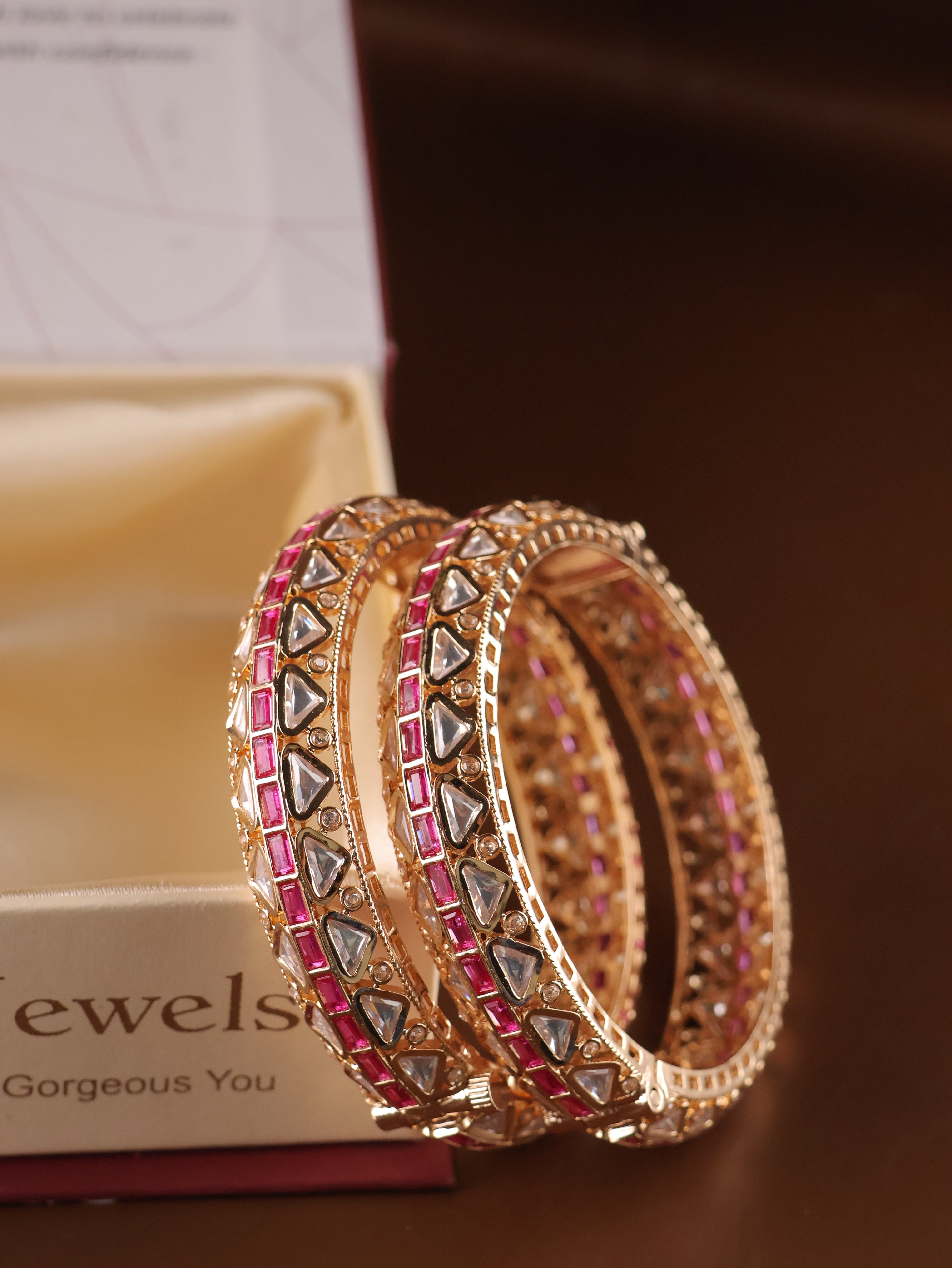 Highlights: Bridal Polki bangles • Ruby accents • Anti-tarnish plating • Available in sizes 2.2–2.6