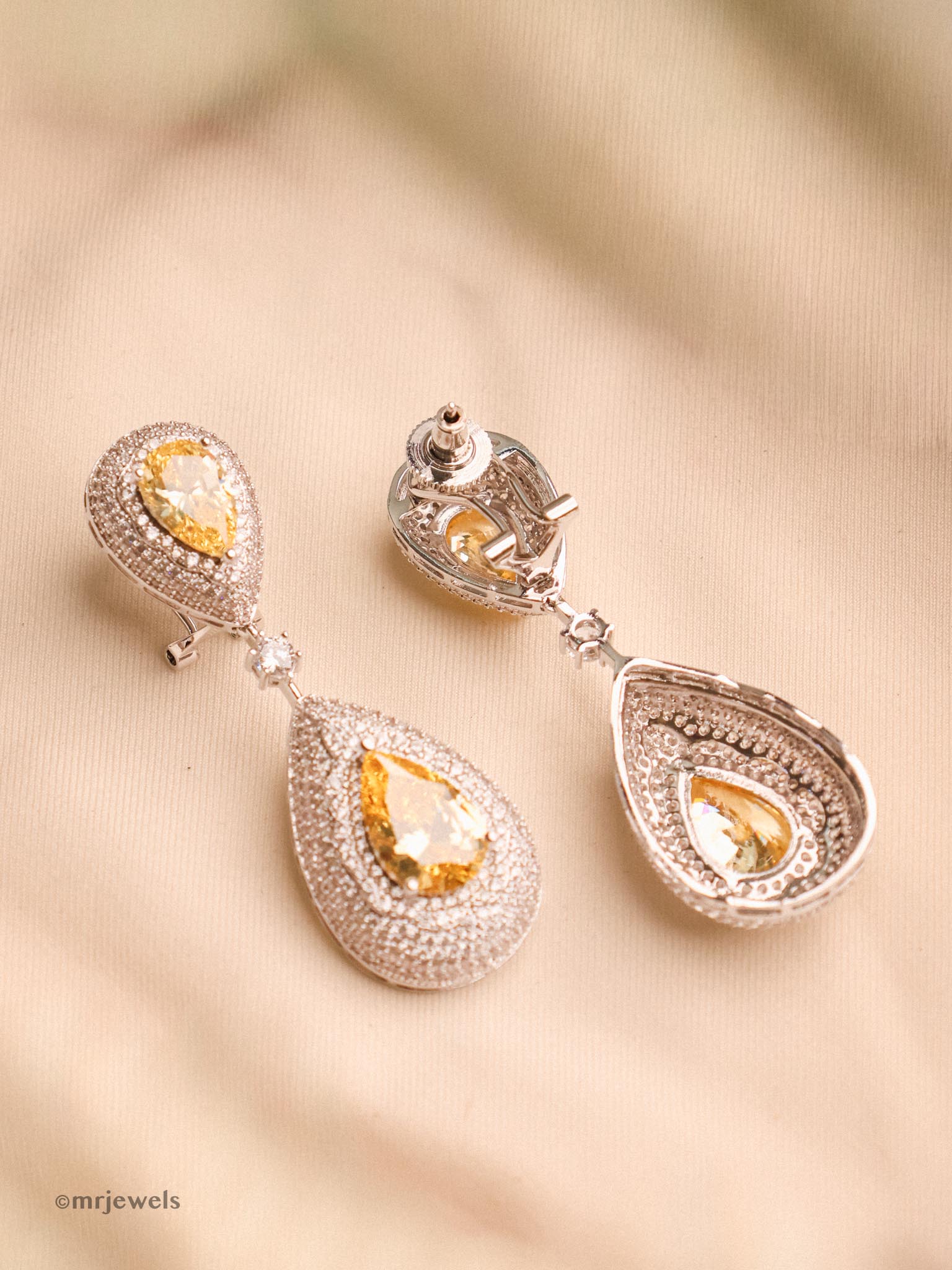 These teardrop earrings feature dual-tone emerald stones set in silver-tone frames with delicate sparkle accents. A sophisticated choice for cocktail nights or festive chic styling.