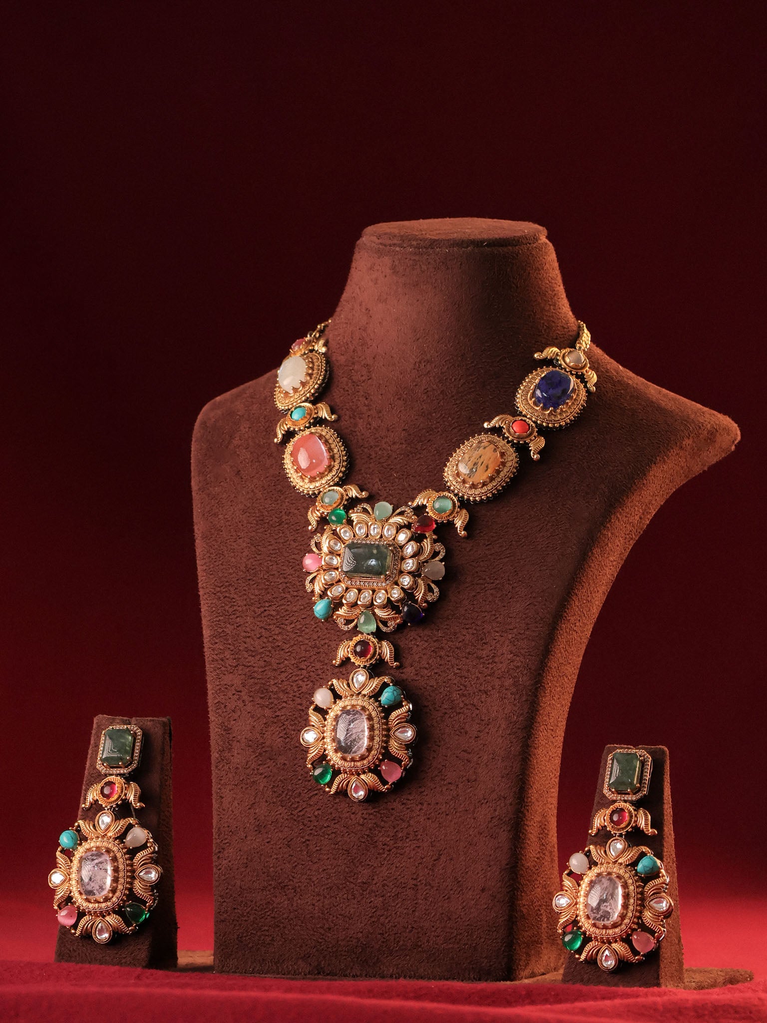 Dancing Krishna long Necklace Set with matching earrings | Temple Jewellery