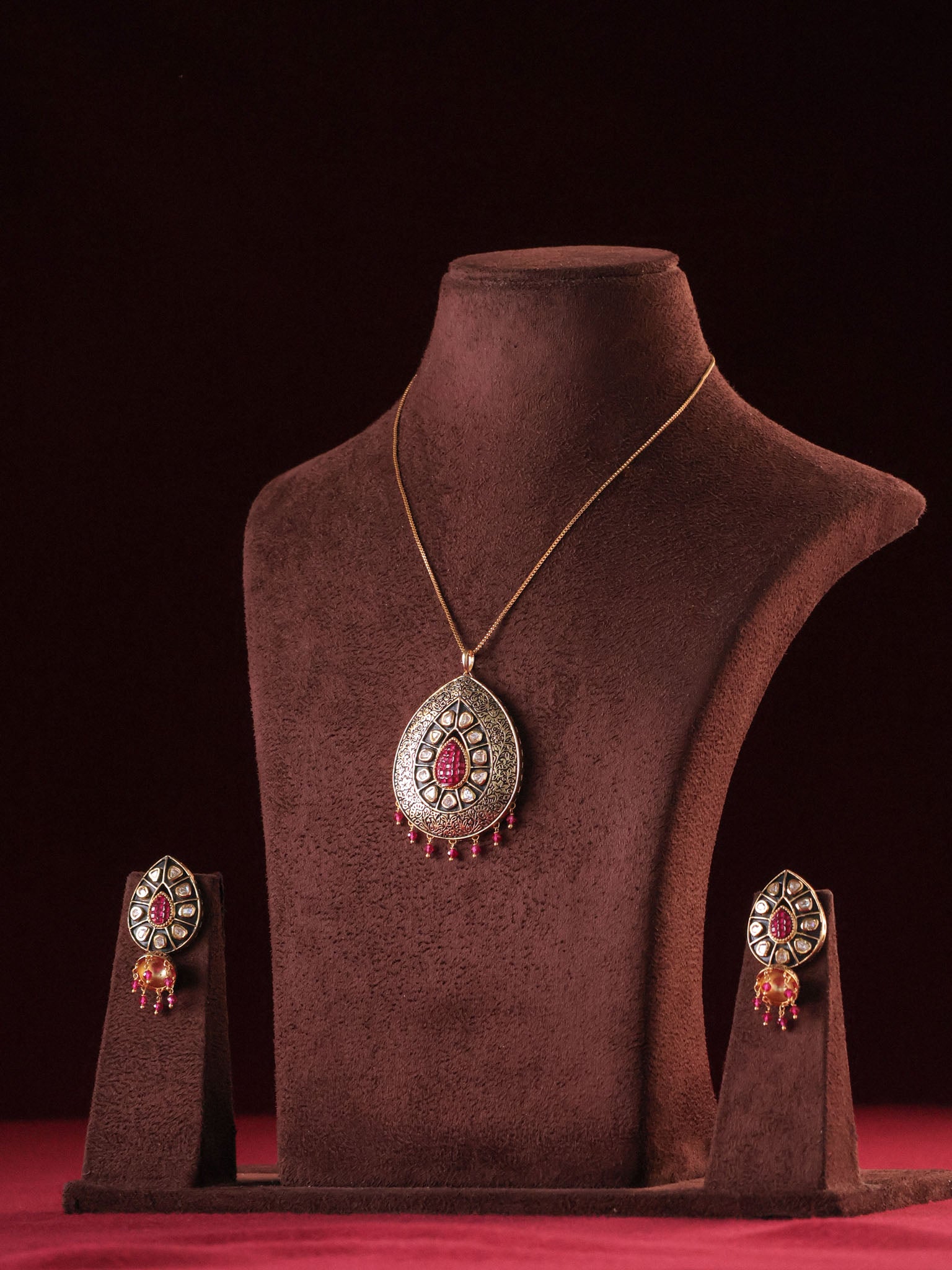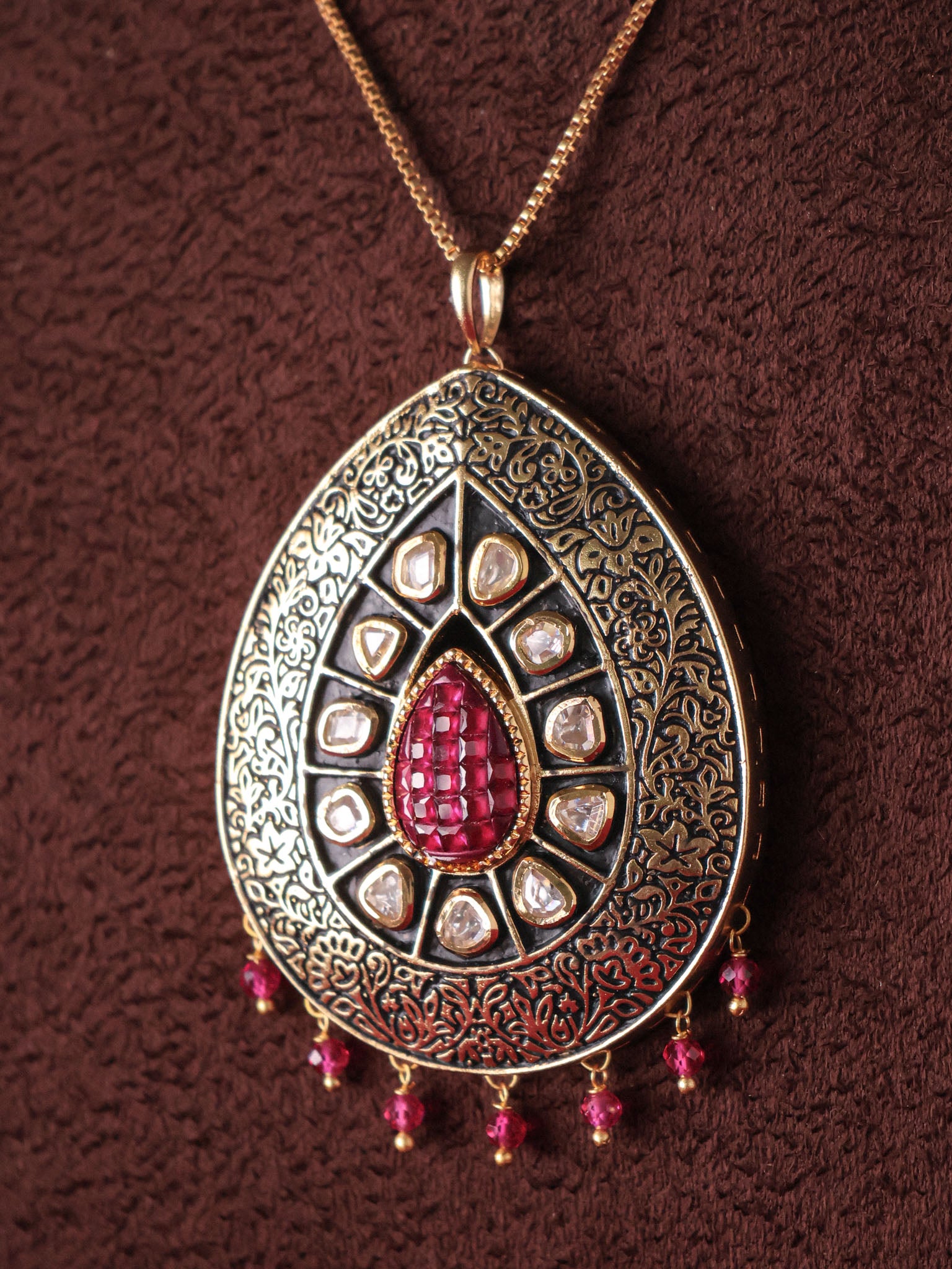Luxe Sovereign Gandaberunda Eagle Jadau Pachi Kundan Pendant with Pumpkin Beads – Royal Craftsmanship