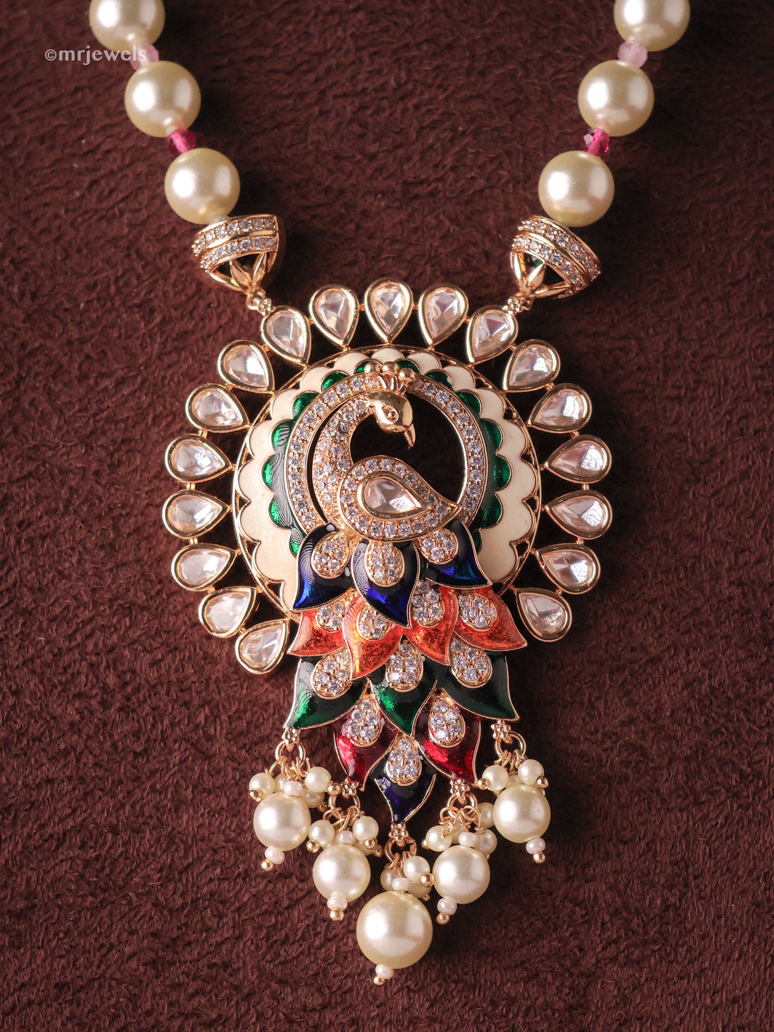 Unveil the magic of timeless artistry with our Regal Peacock Pearl Haar Set—a masterpiece that blends ancient craftsmanship with modern elegance.