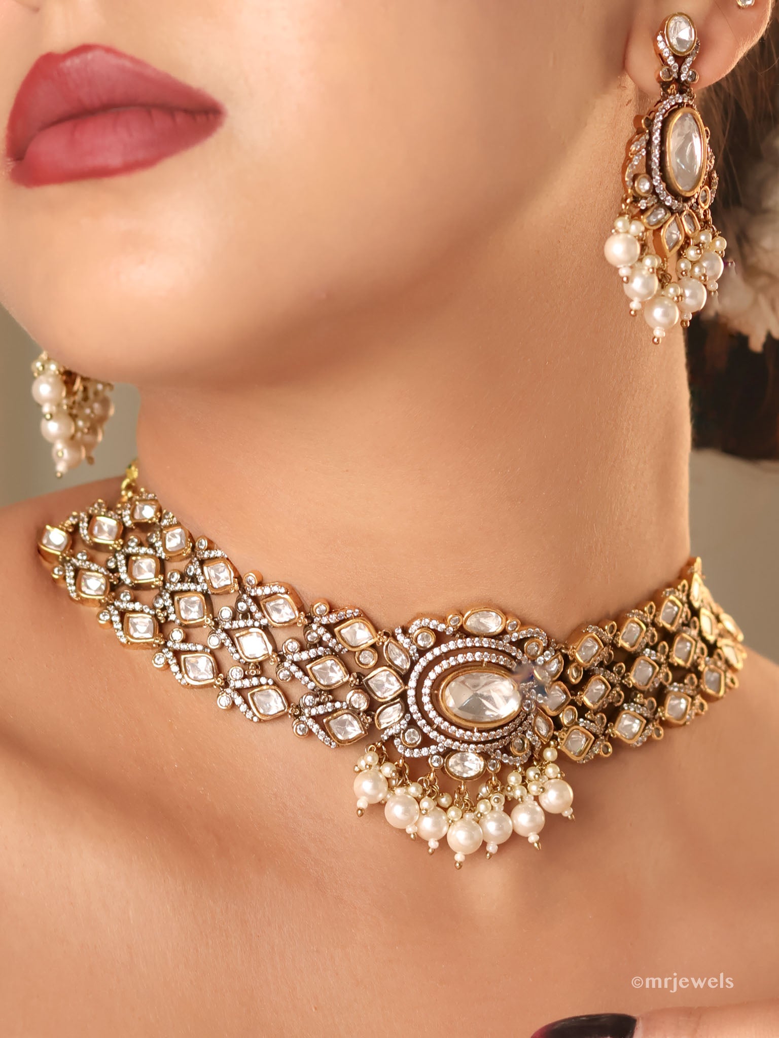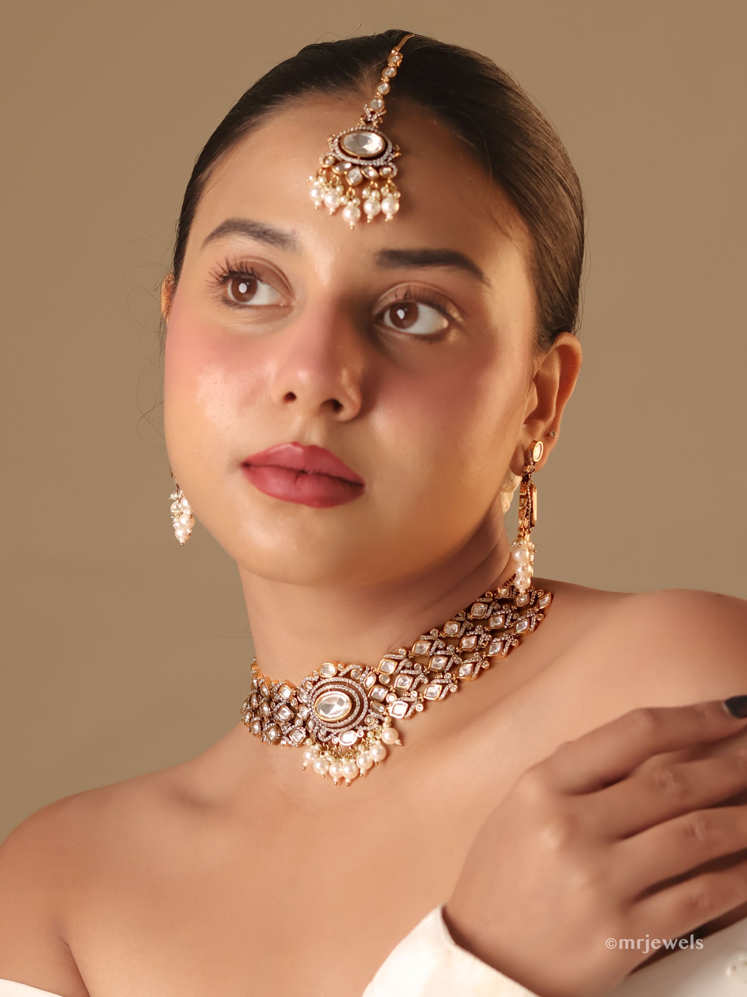 Alia Kudan Choker Ser with Earrings with Maangtikaa