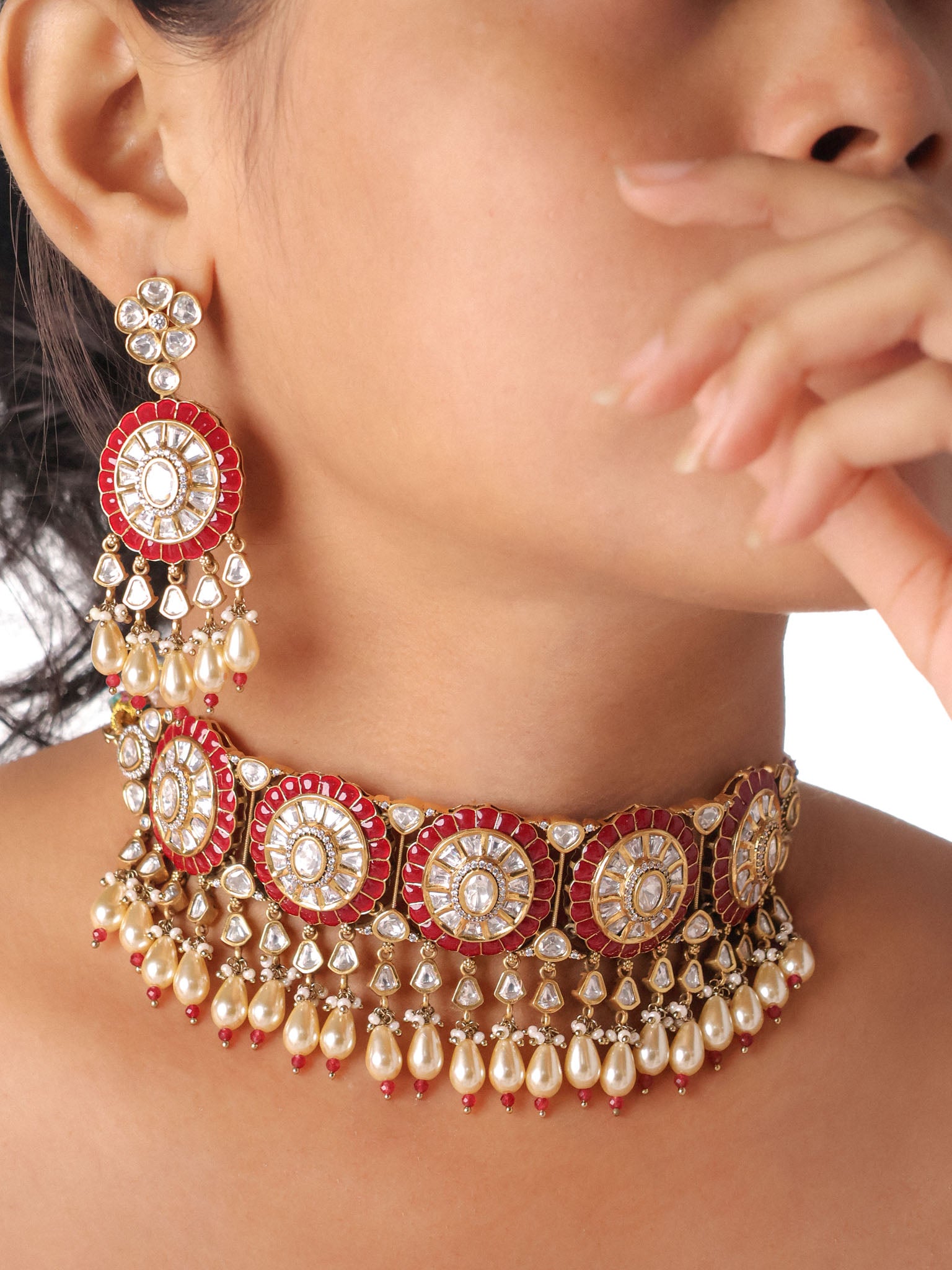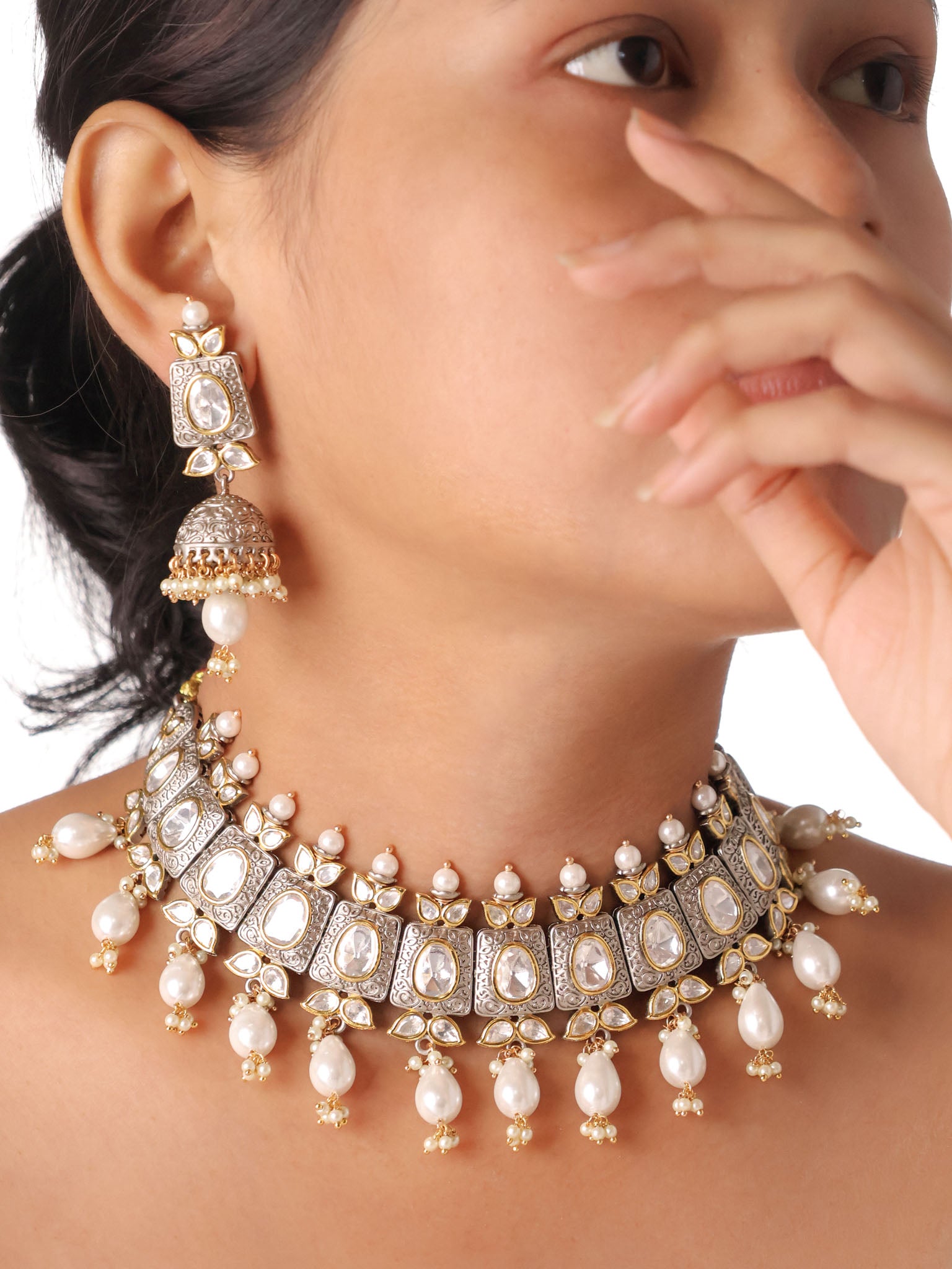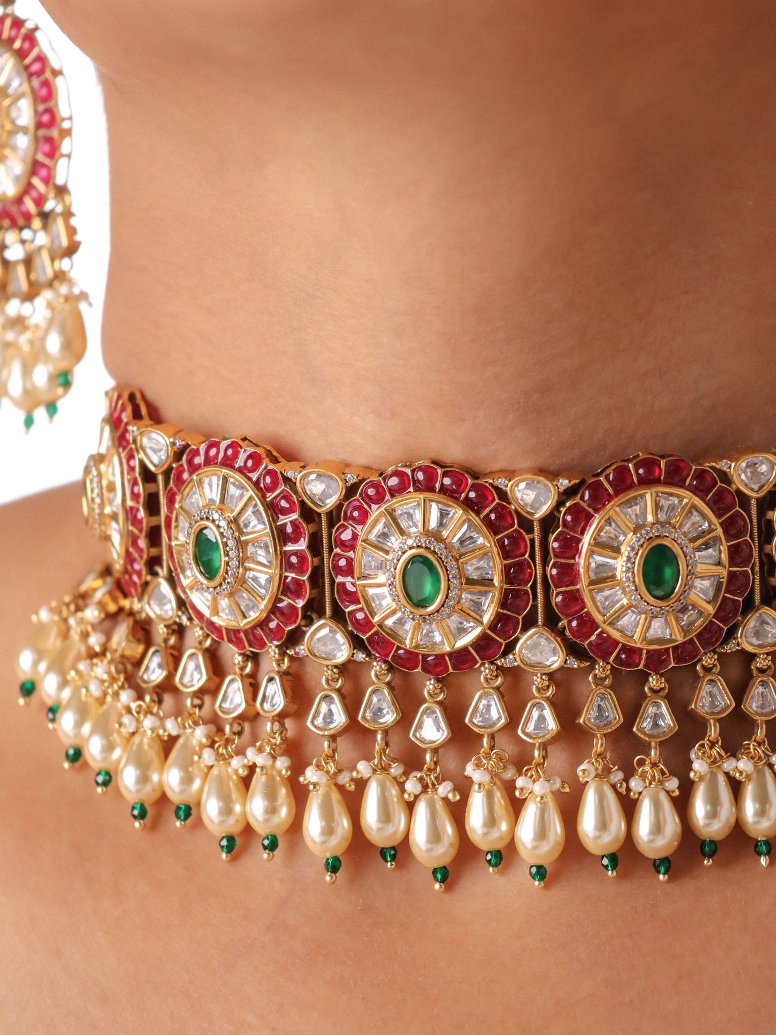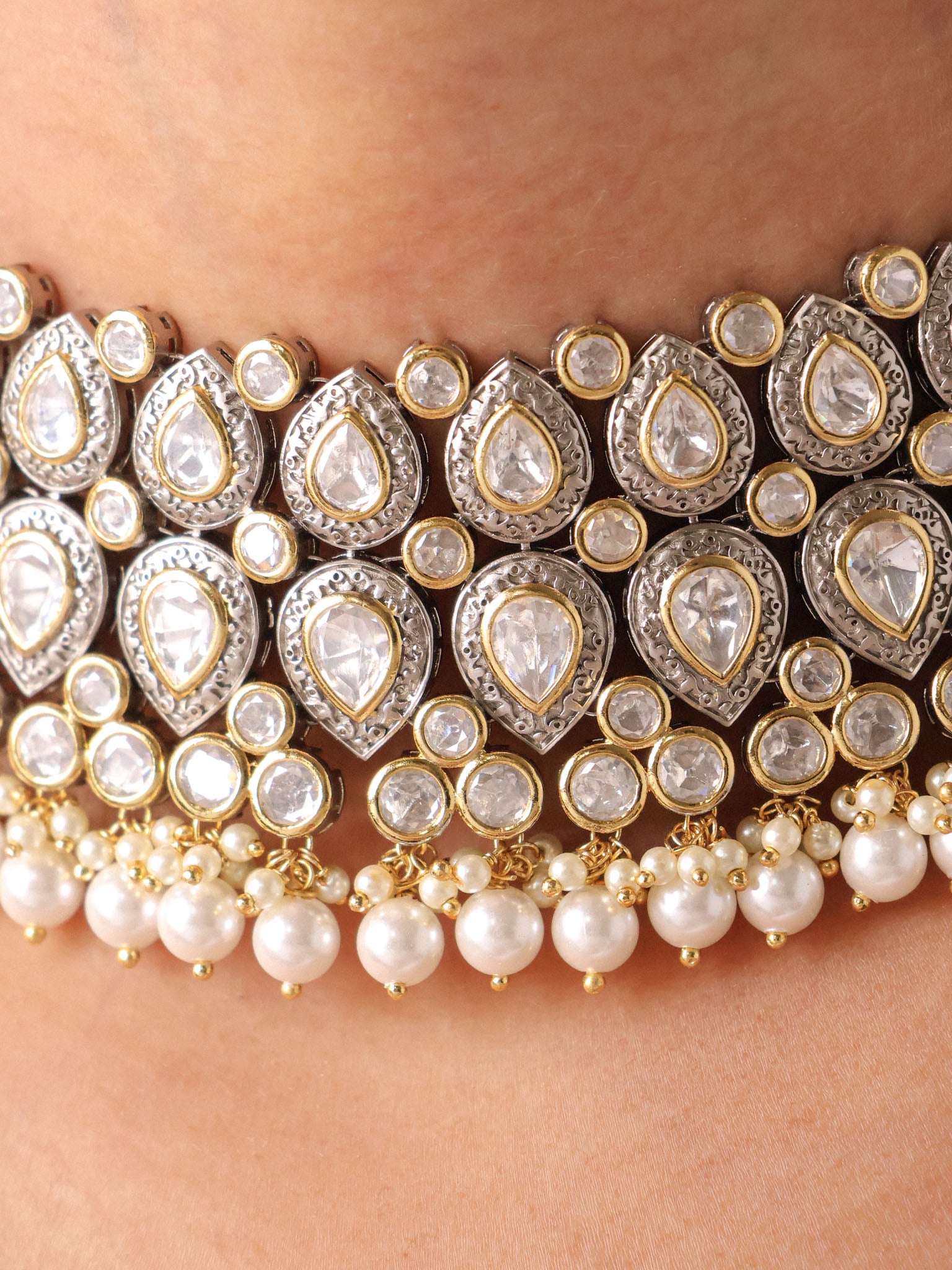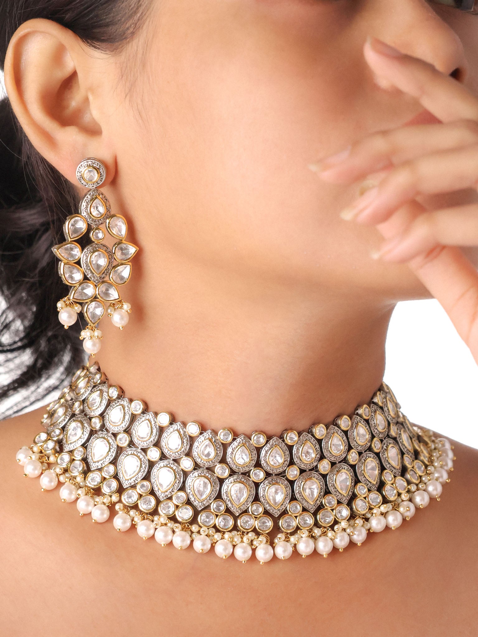 Mughal Pearl Cascade Polki Choker Set