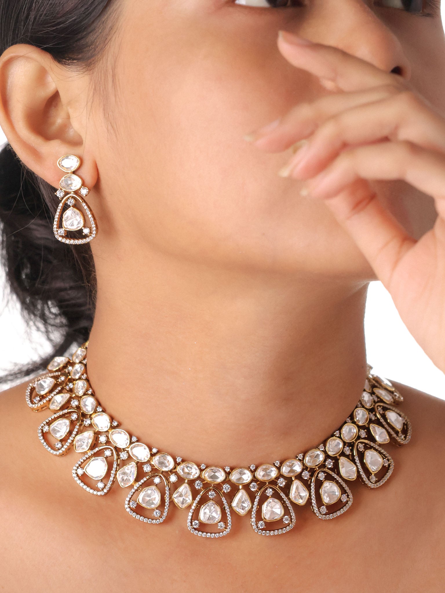 Moissanite Teardrop Kundan Choker Set