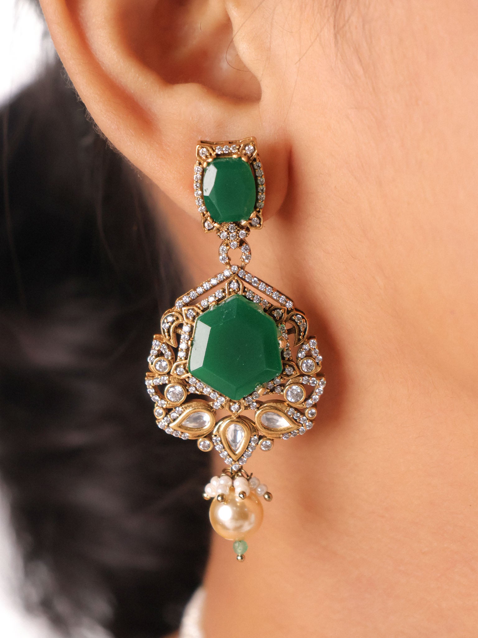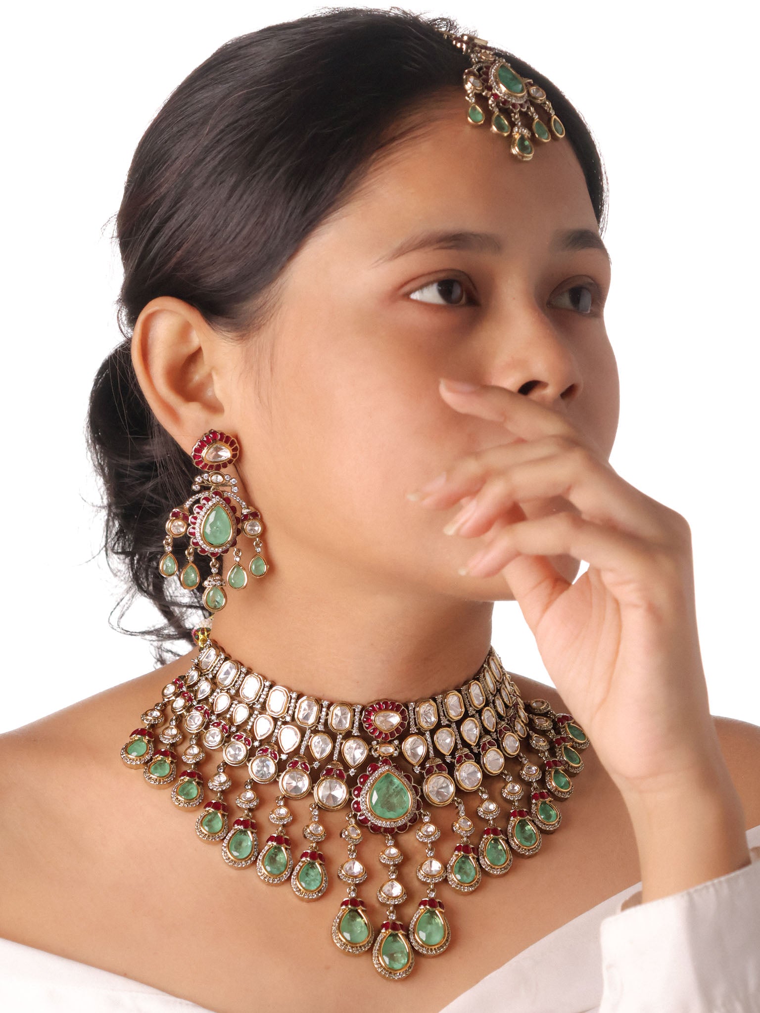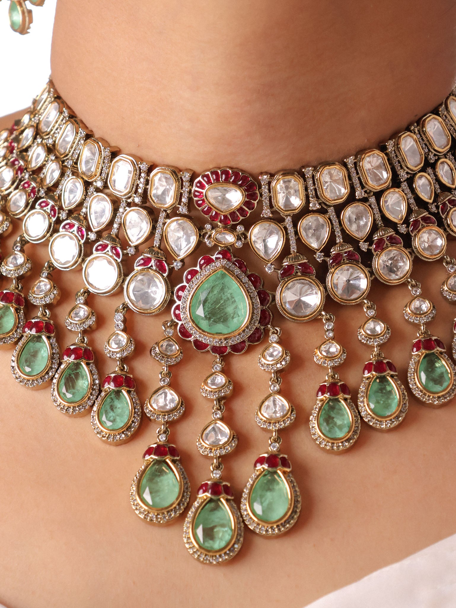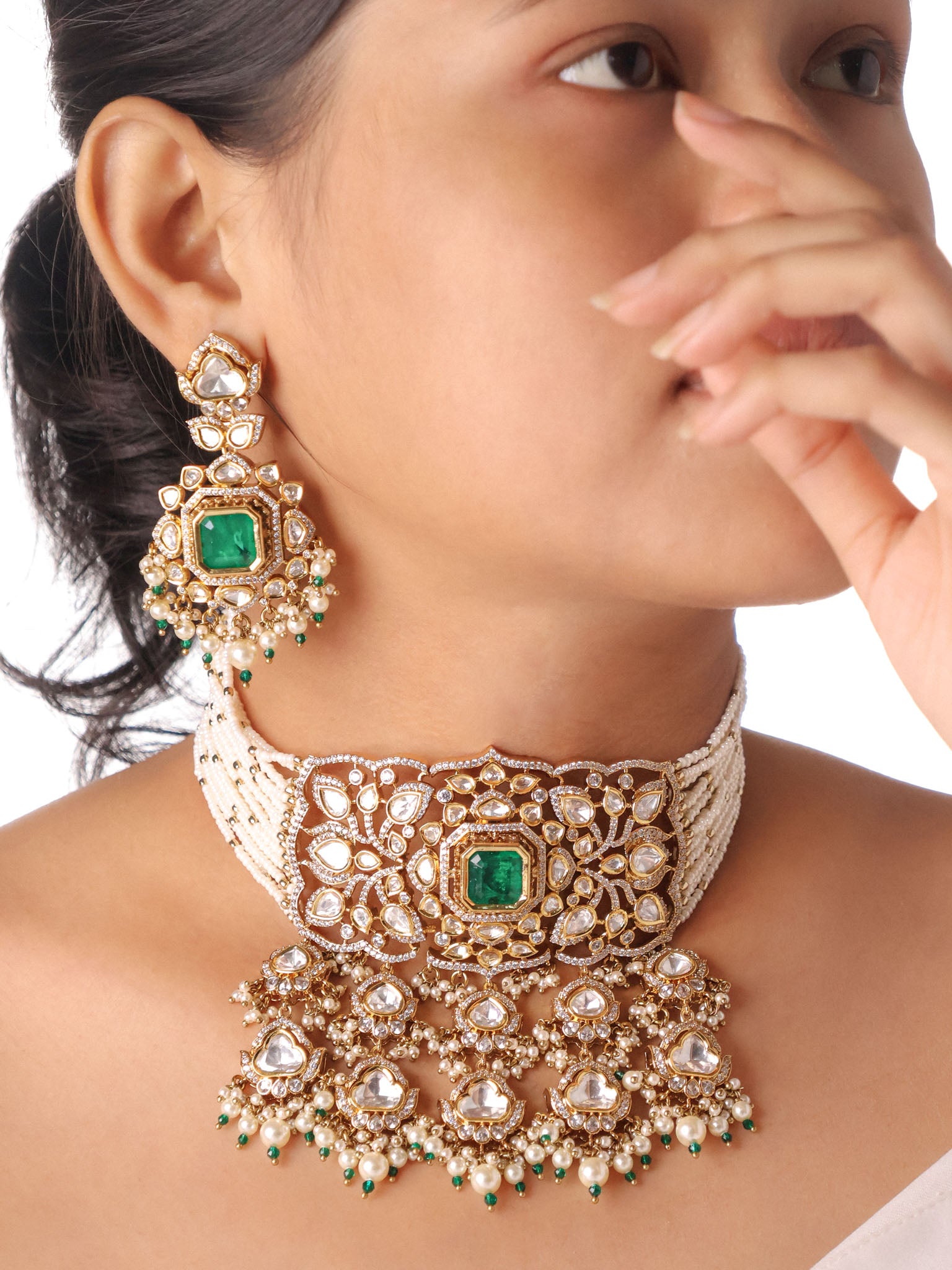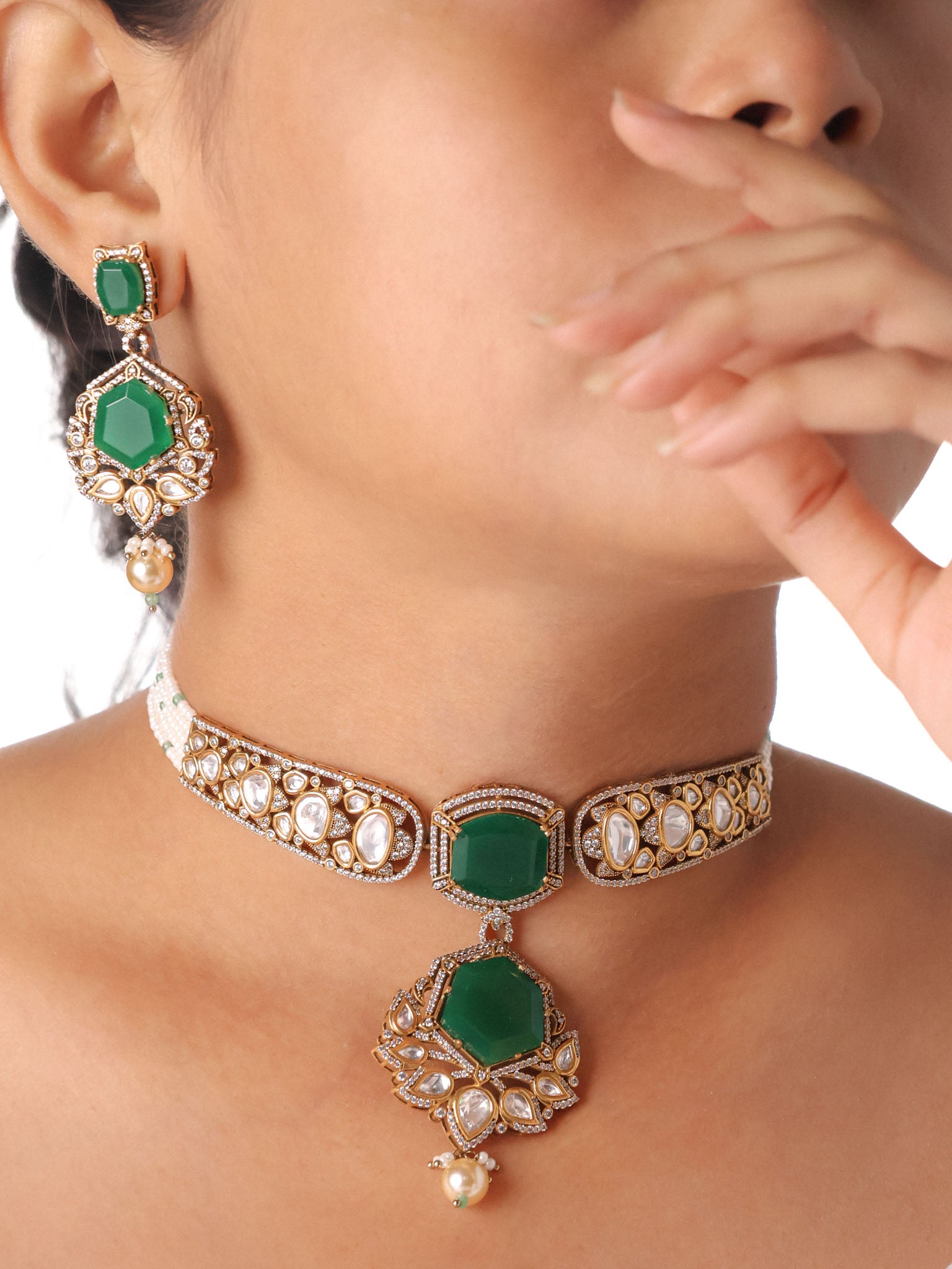 Emerald Shehzadi Polki-Drop Bridal Choker Set
