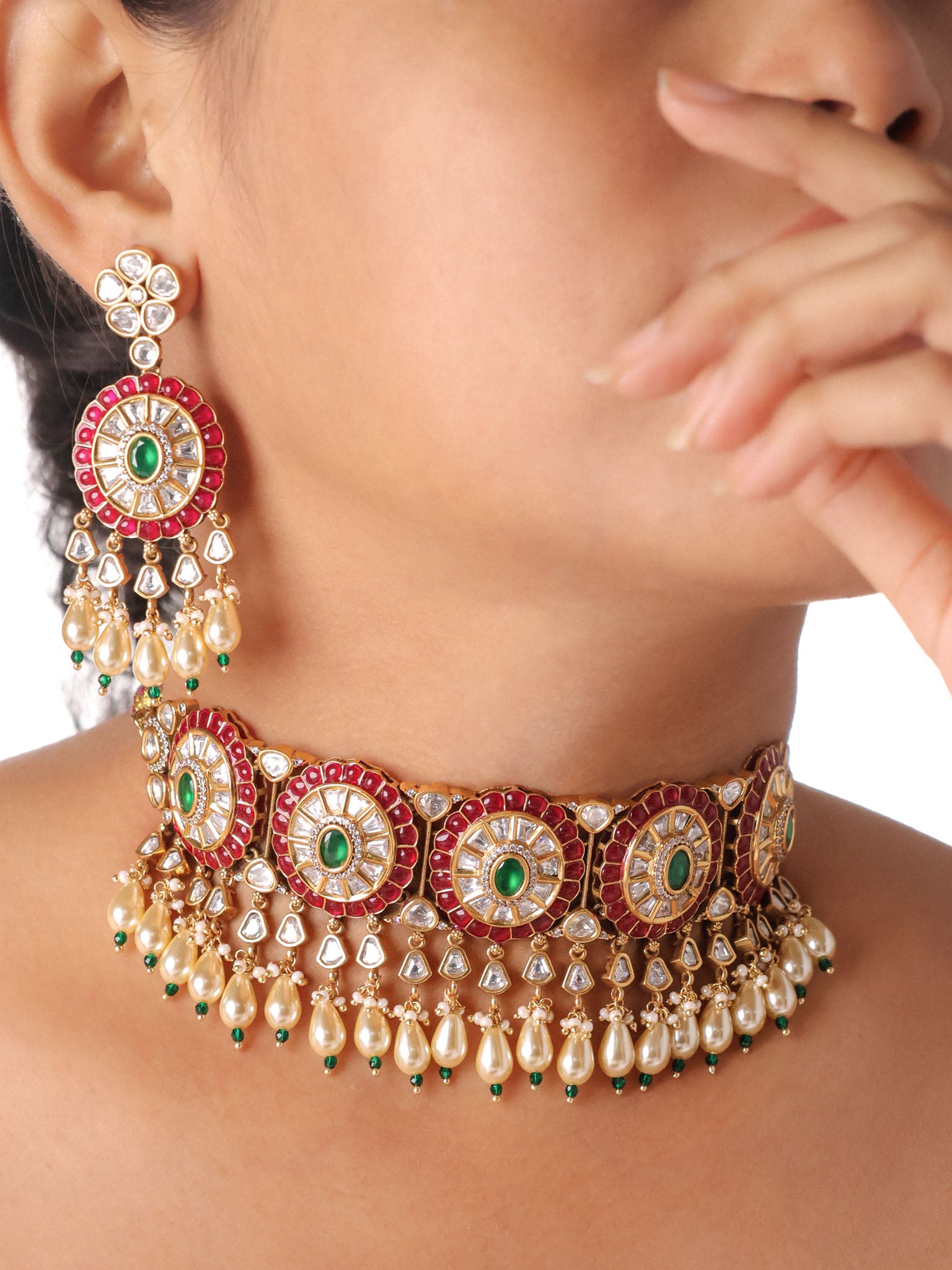 Gulabi Émeraude Jadau Choker Set