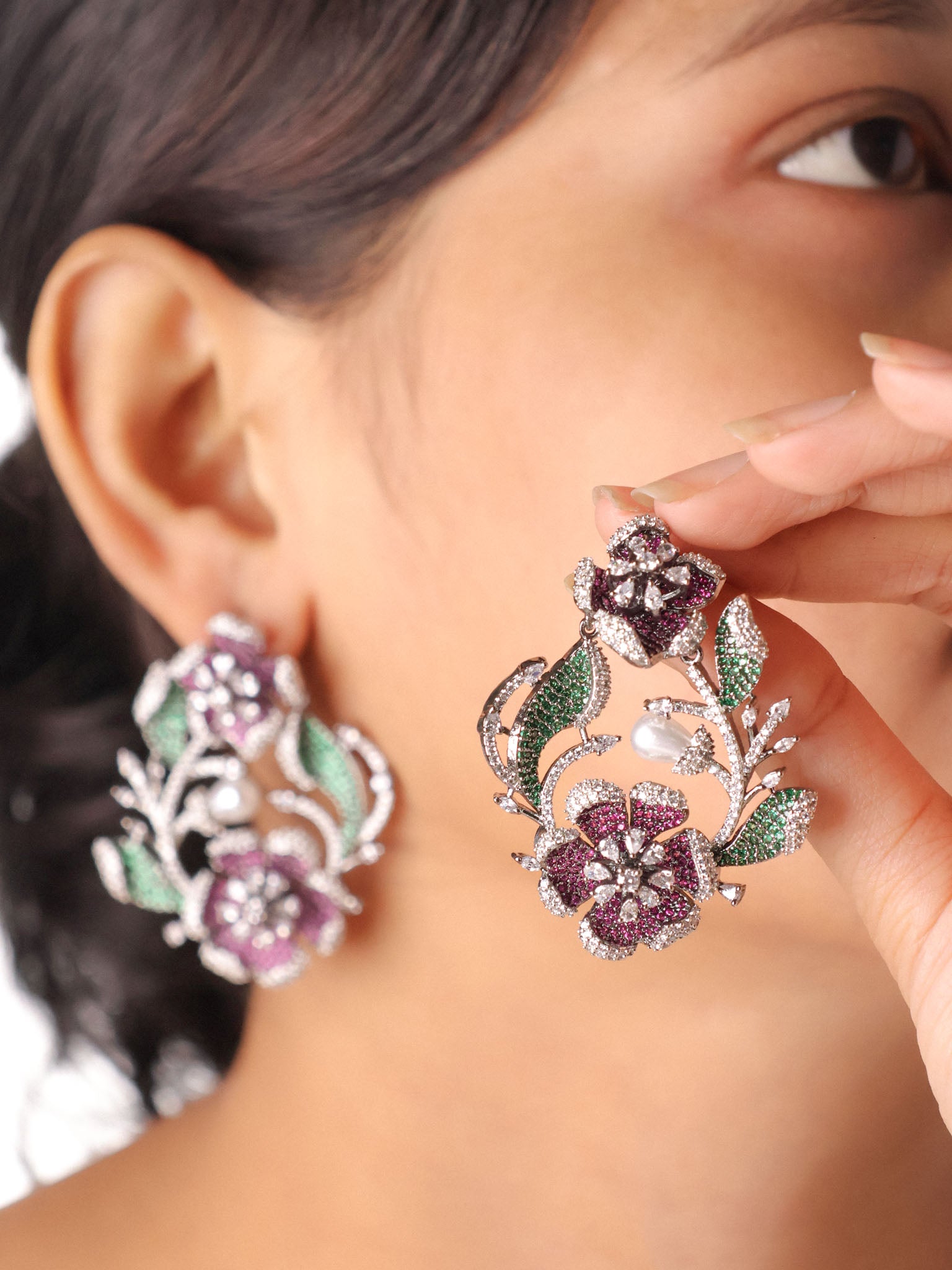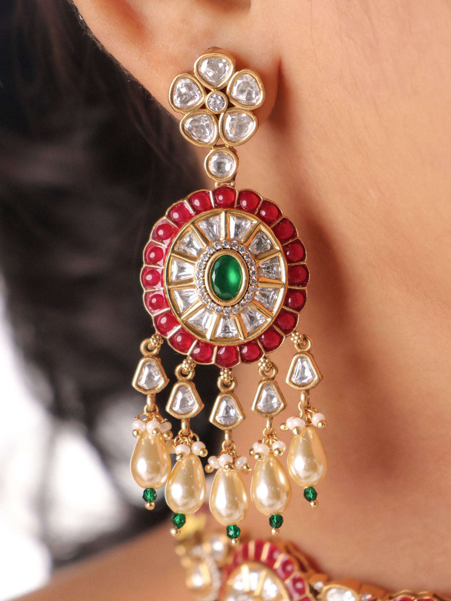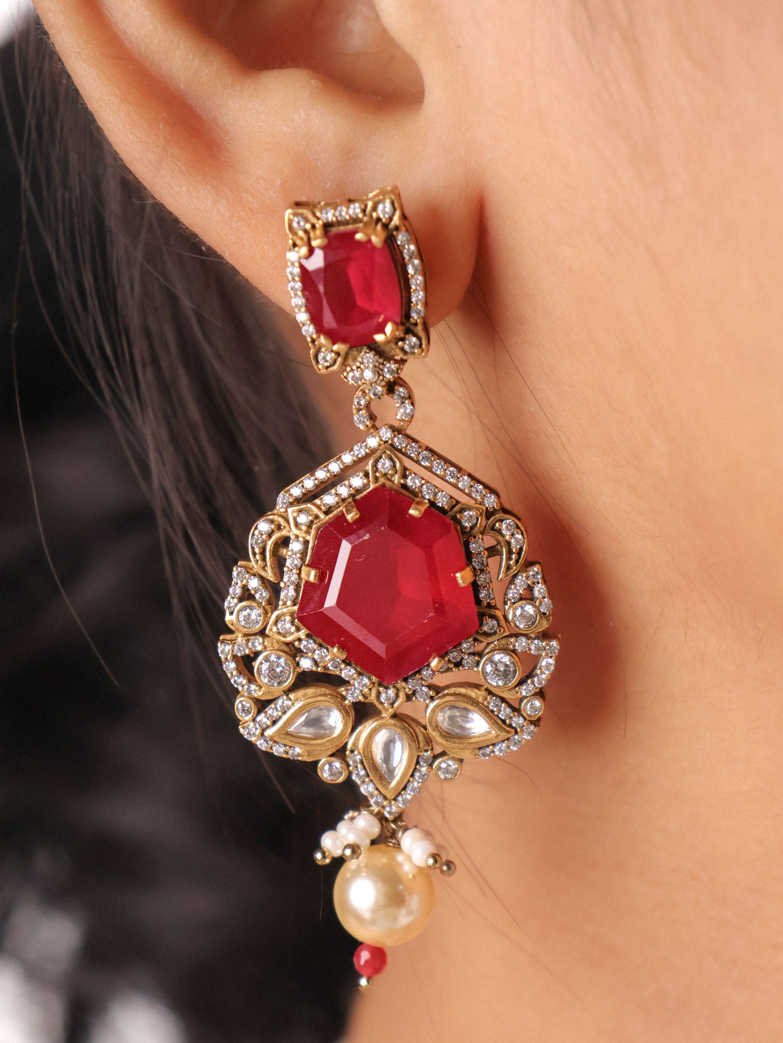 Ruby Pearl Designer Statement Earrings