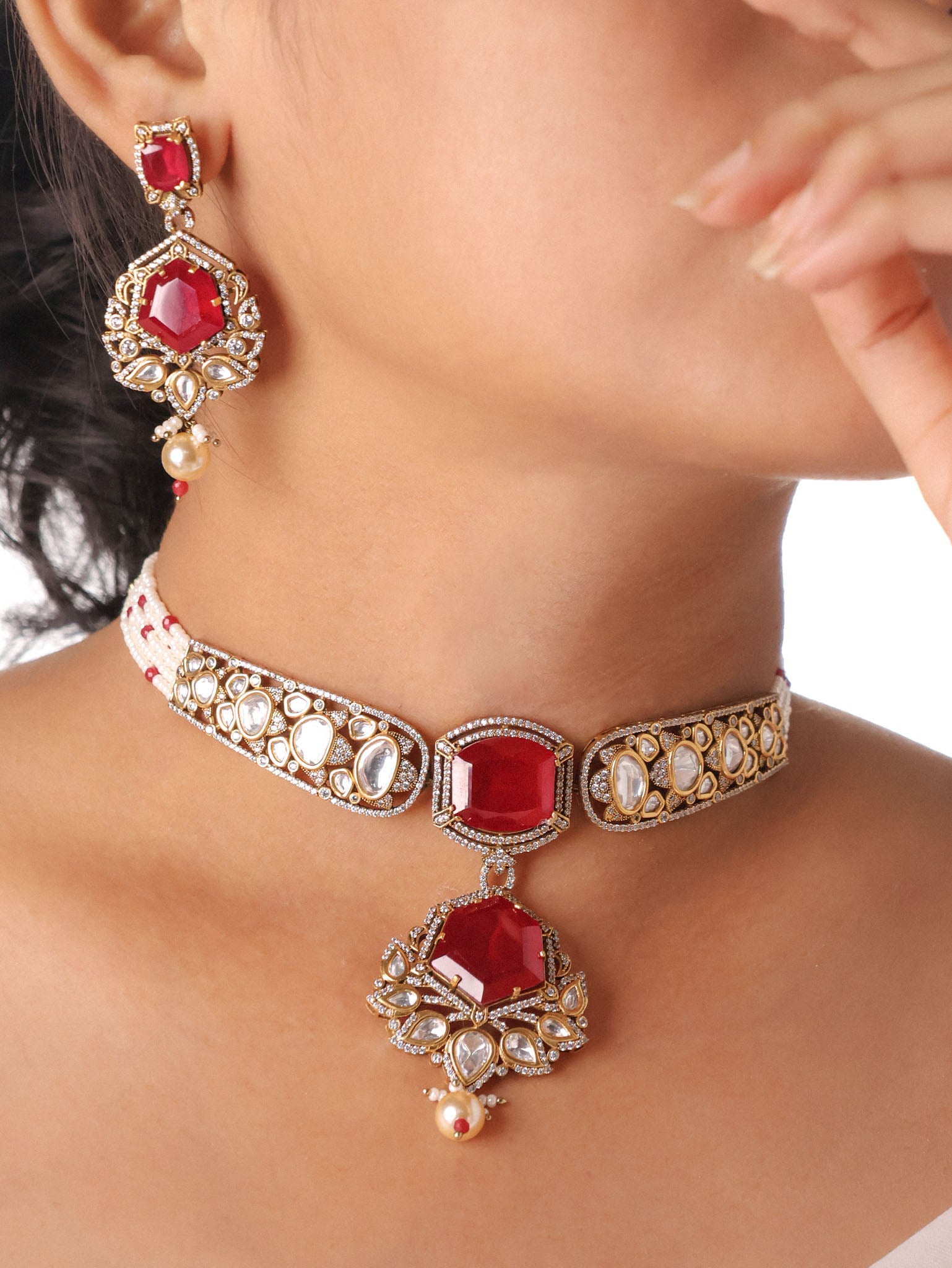 Noor-e-Pearl Polki Vintage Style Choker Set
