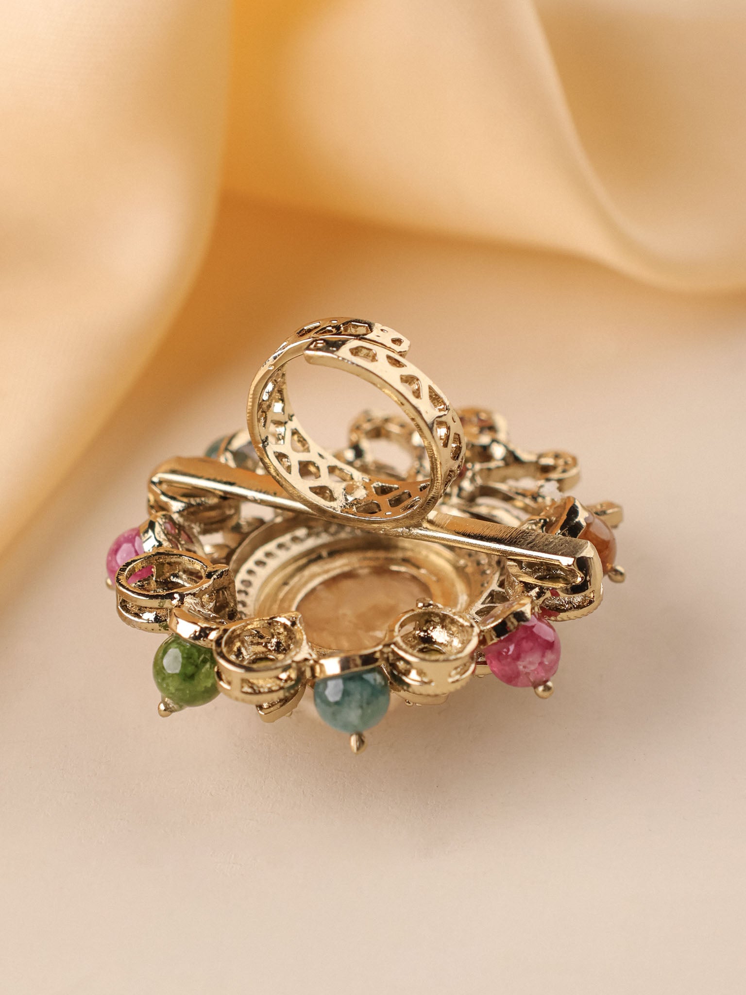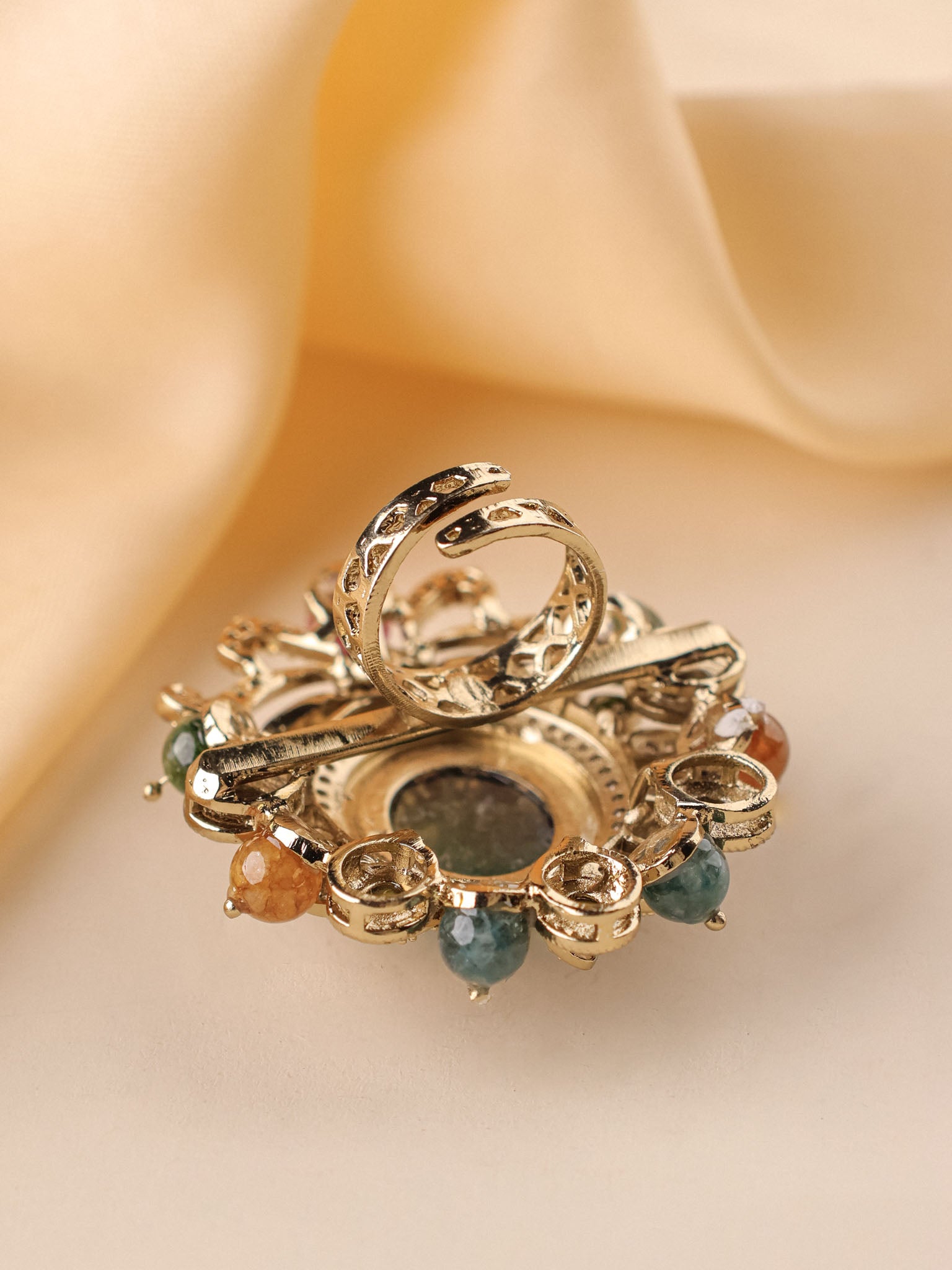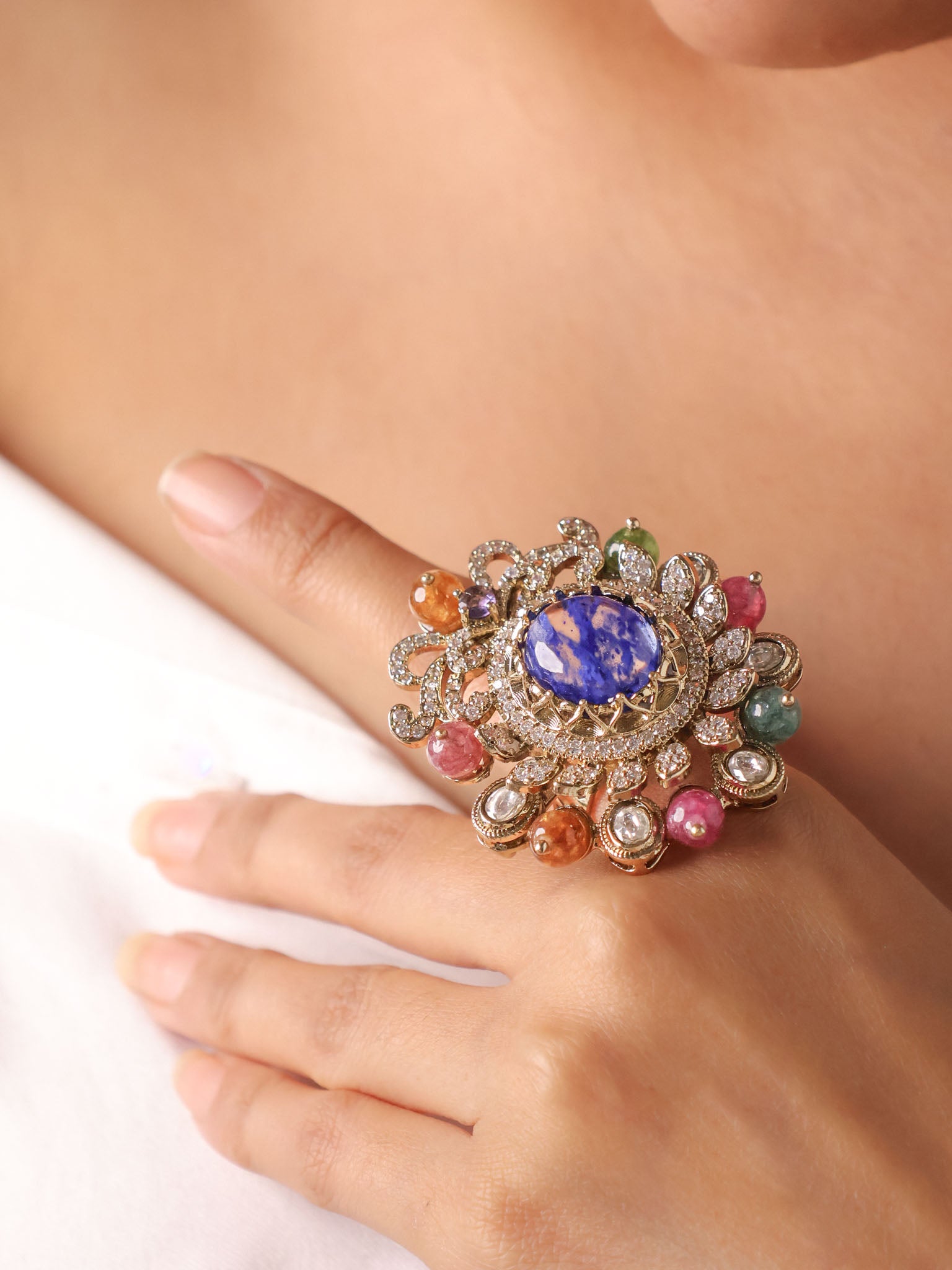 Maharani Navratna Floral Polki Cocktail Ring