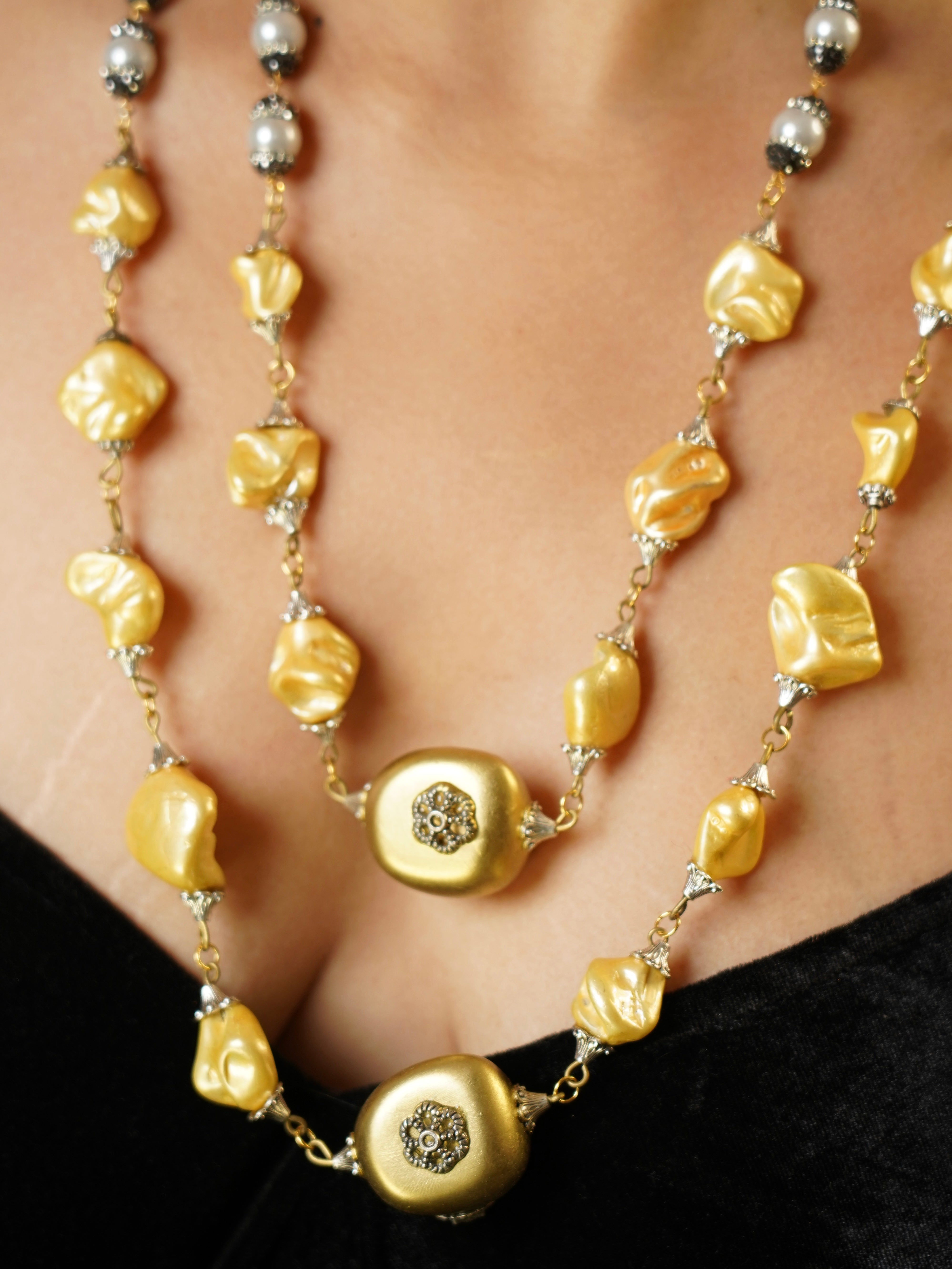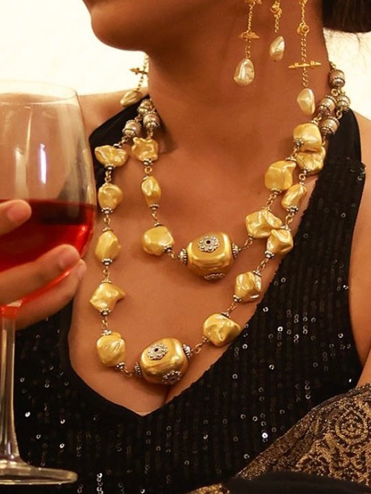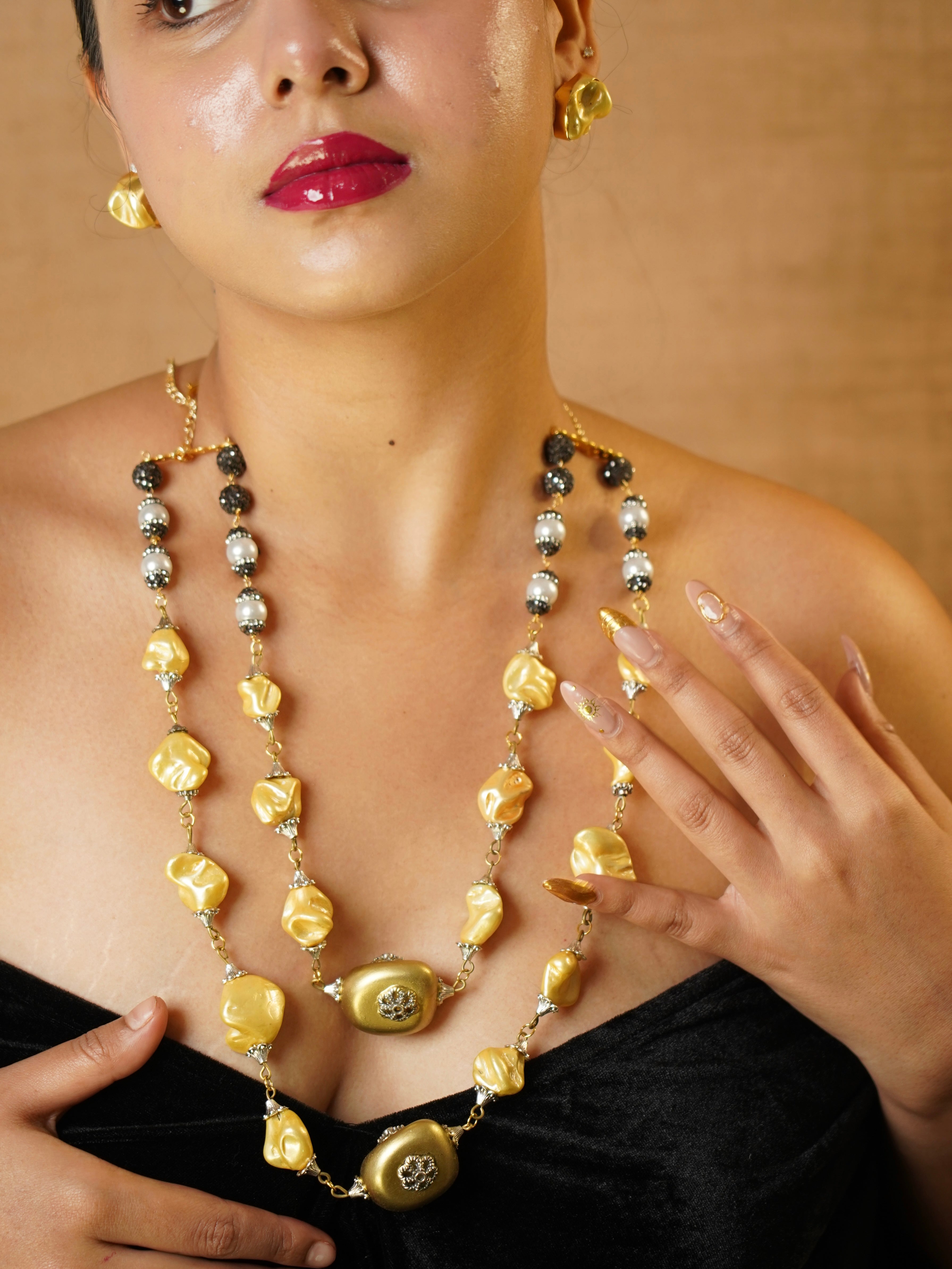 Gold Finish Kundan Polki & Pearl Dangler Earrings