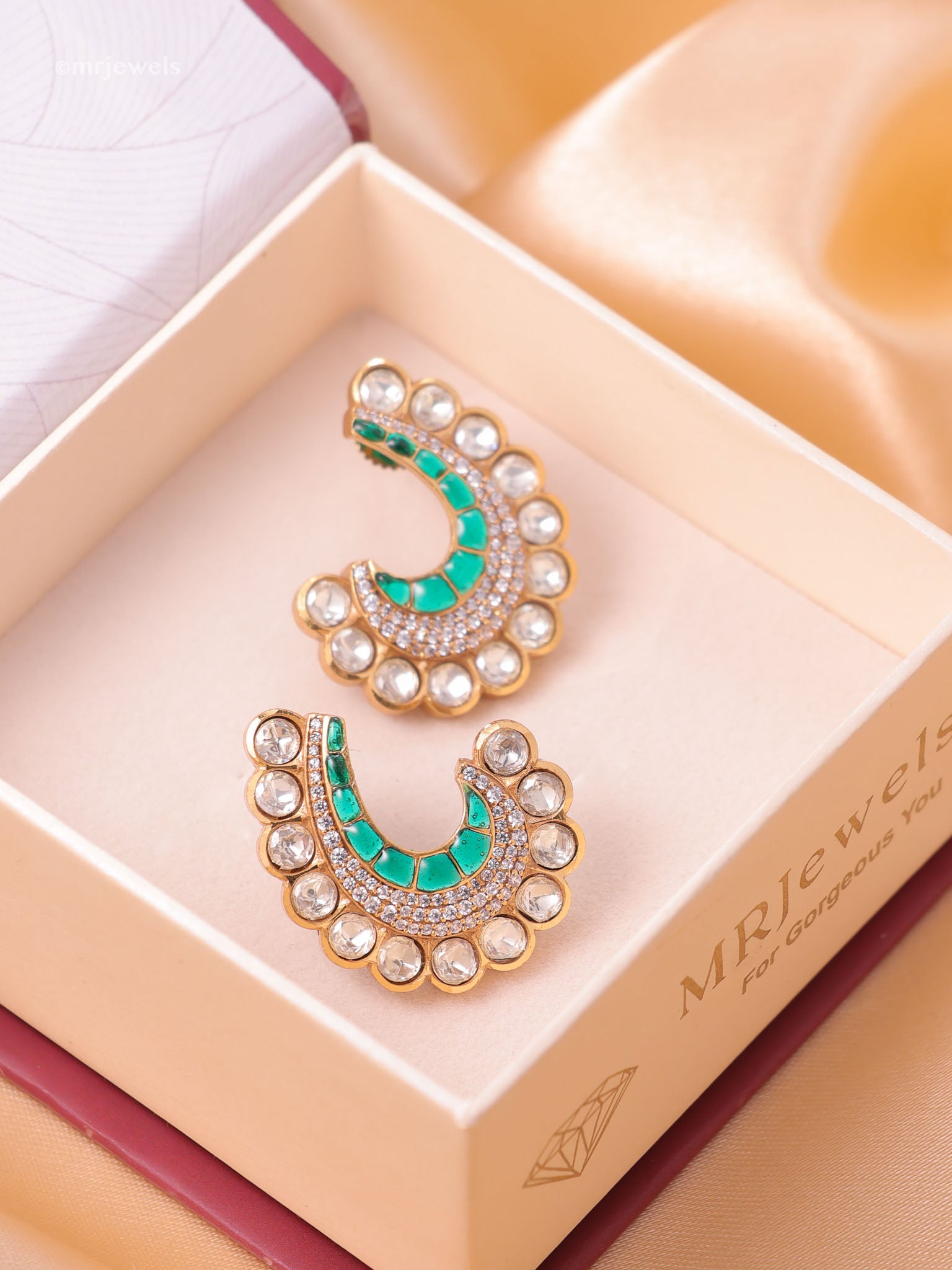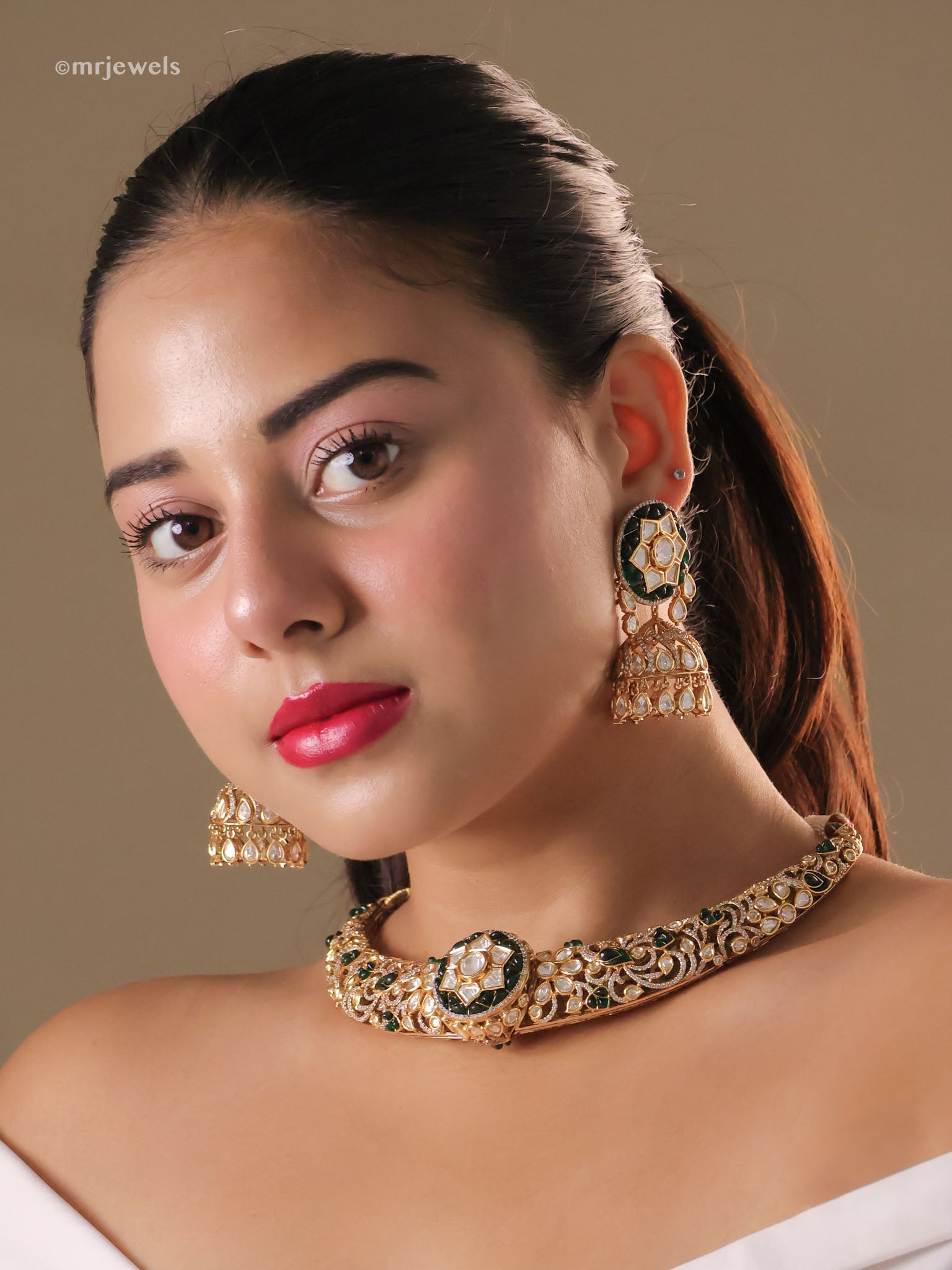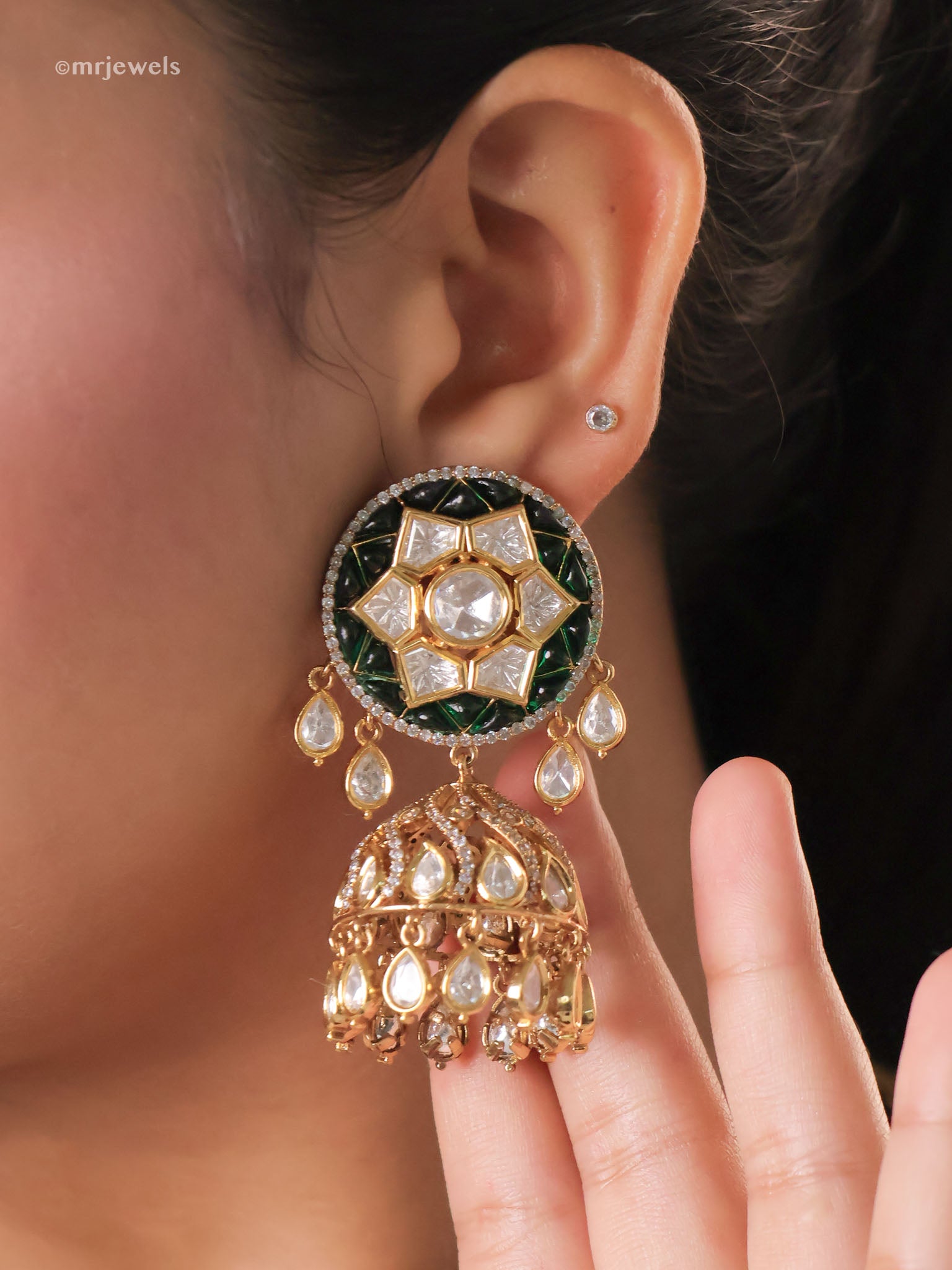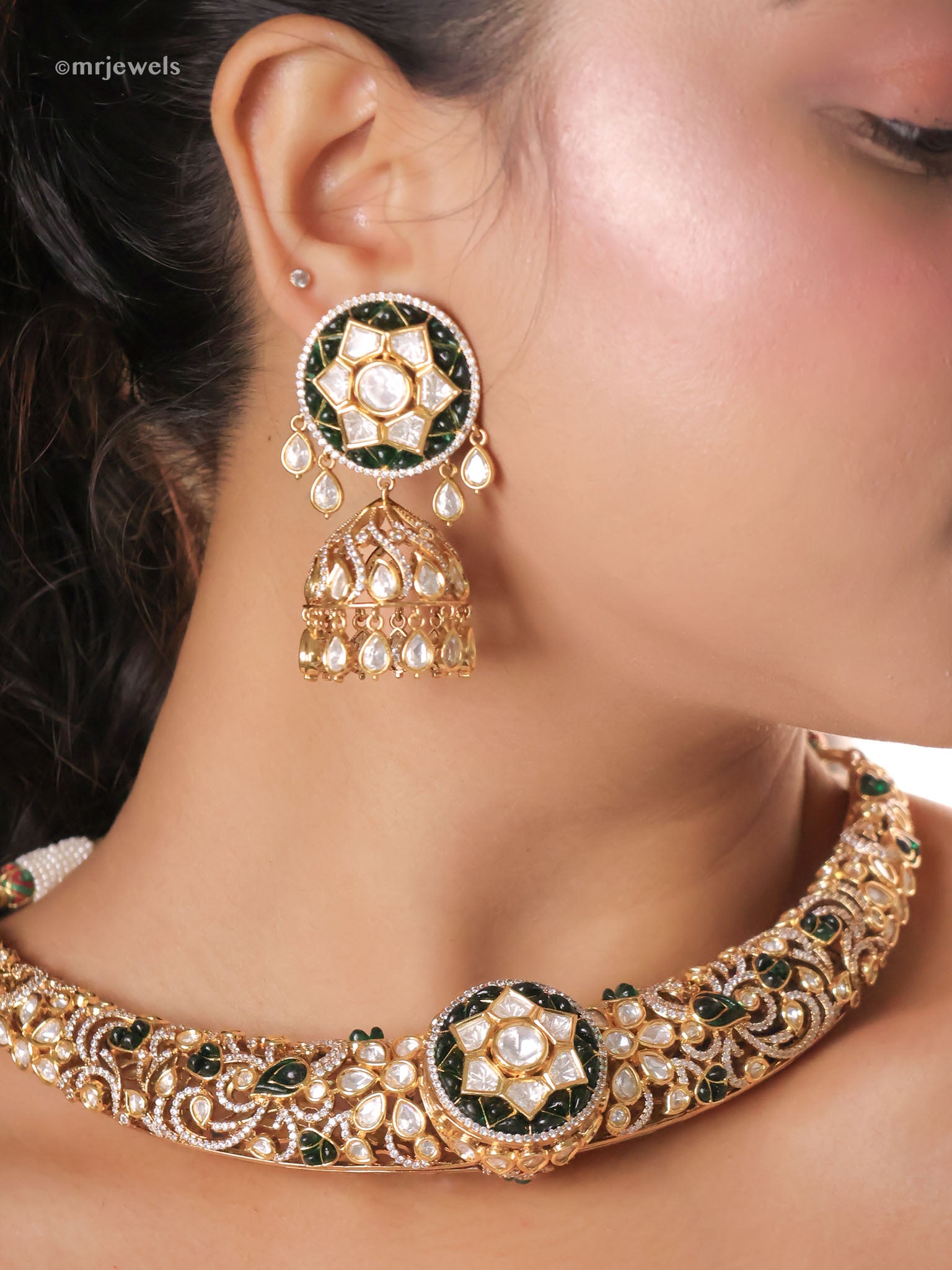Gulbahar Meenakari Kundan Pendant with Double-Strand Pearls & Matching Jhumkas