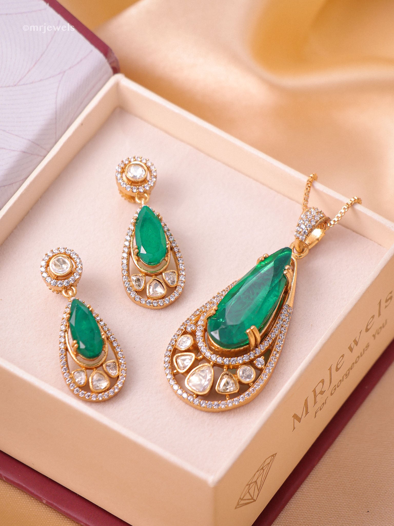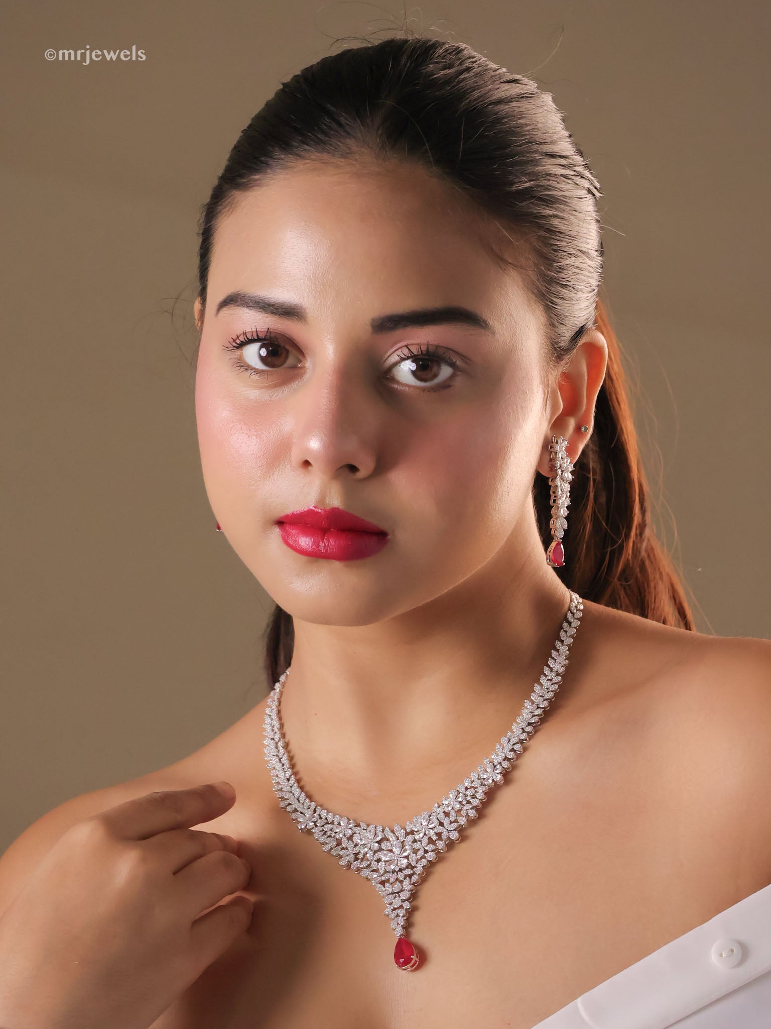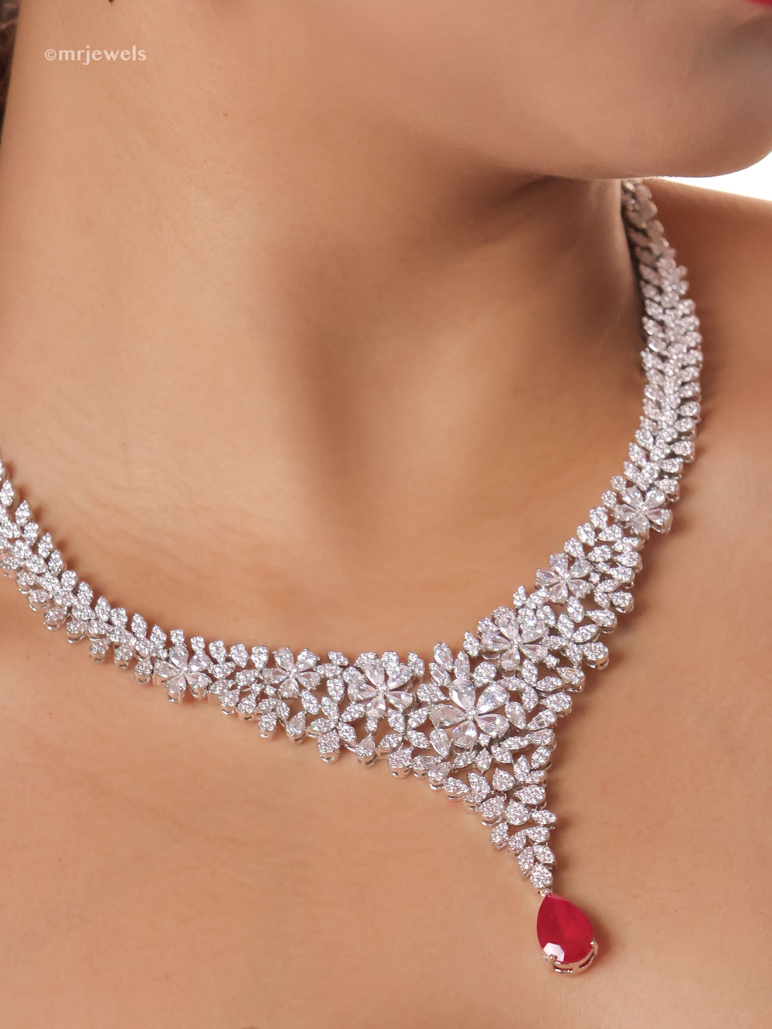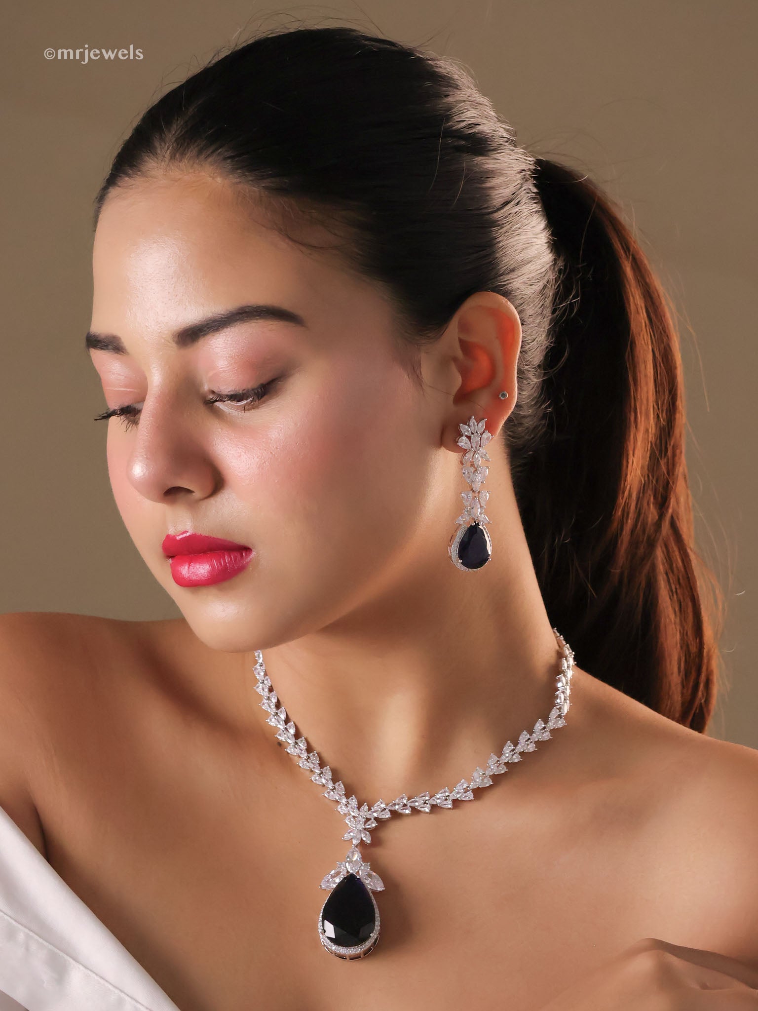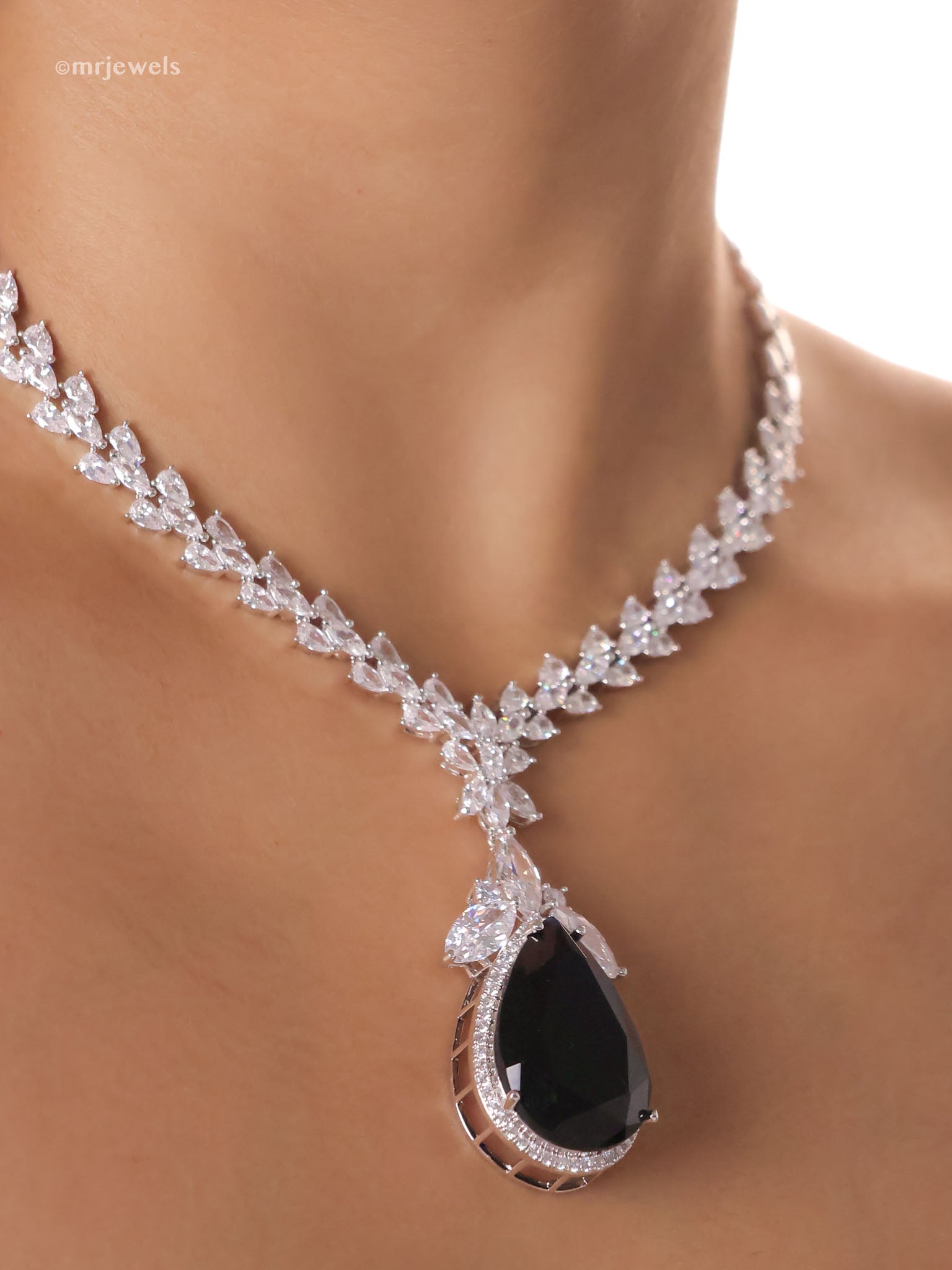 Noir Duchess Teardrop Necklace Set (Silver Finish)