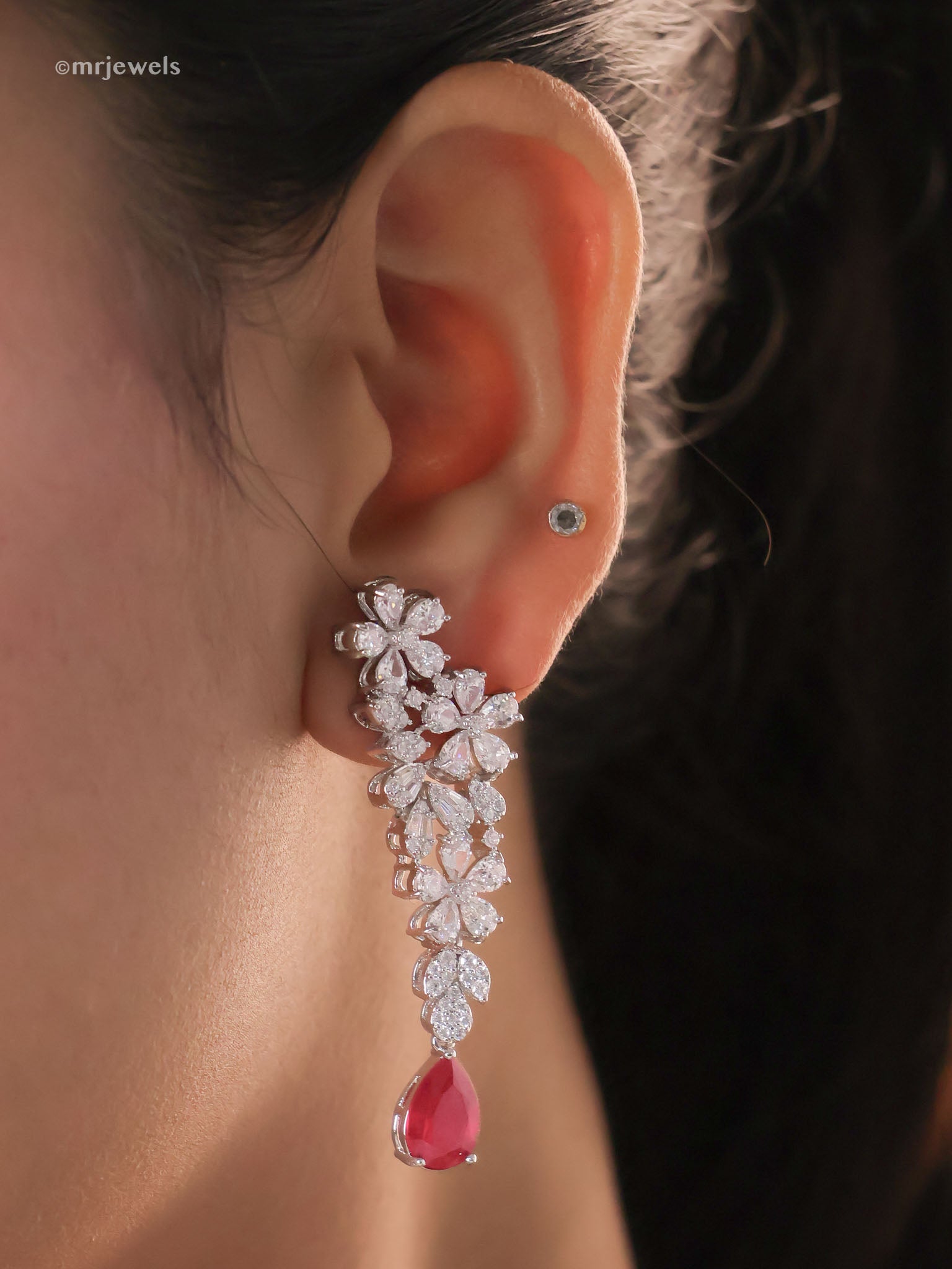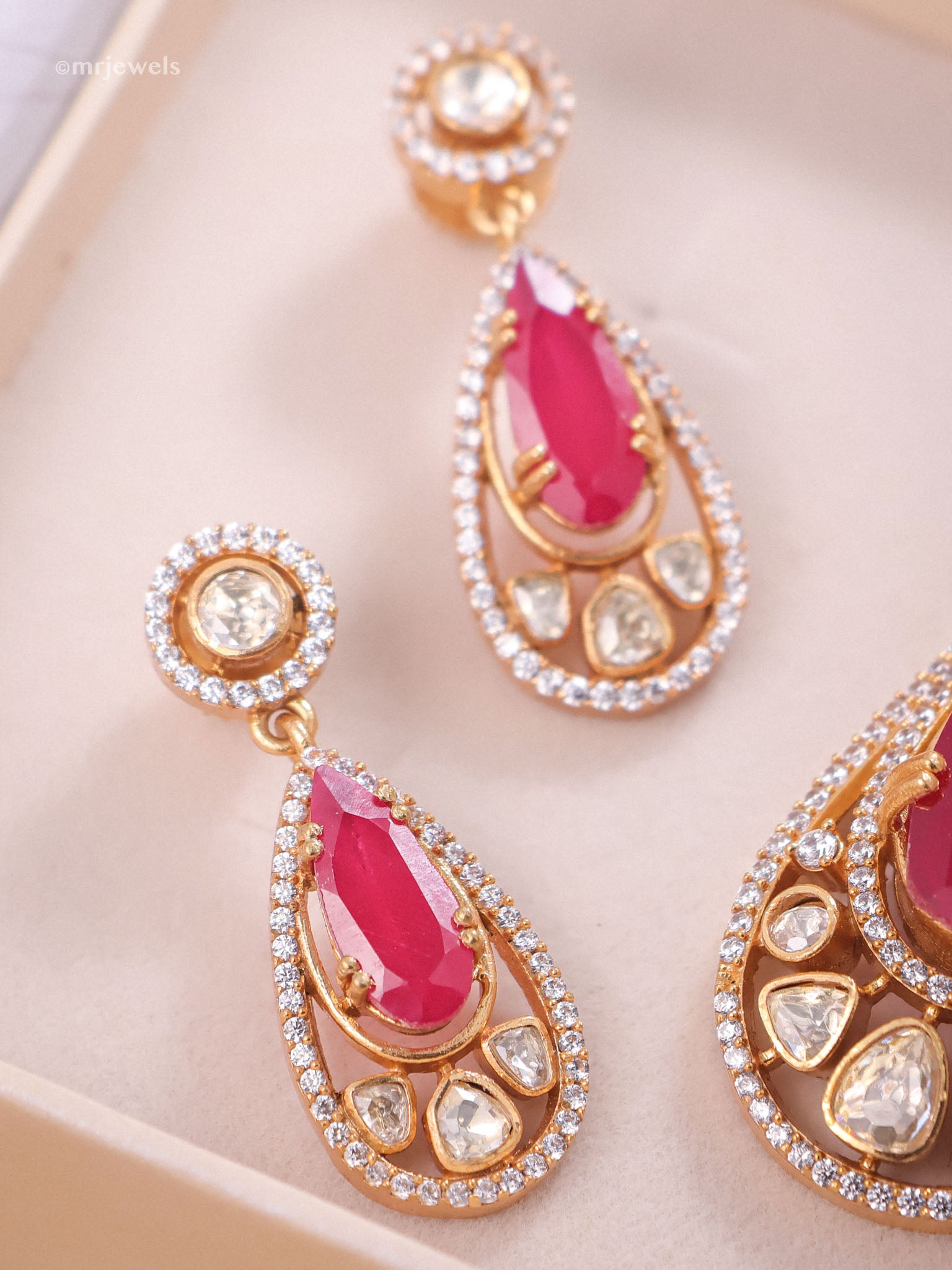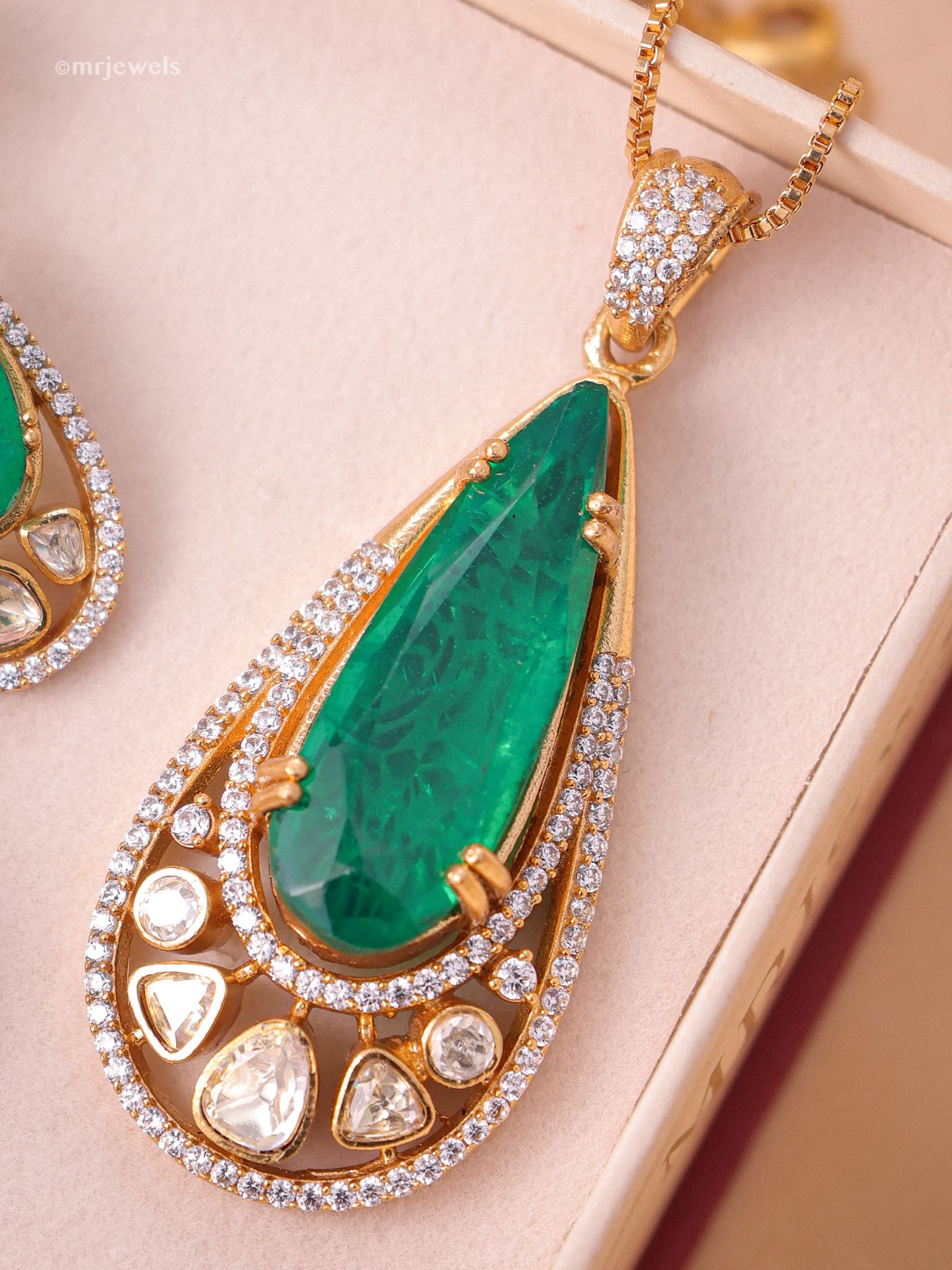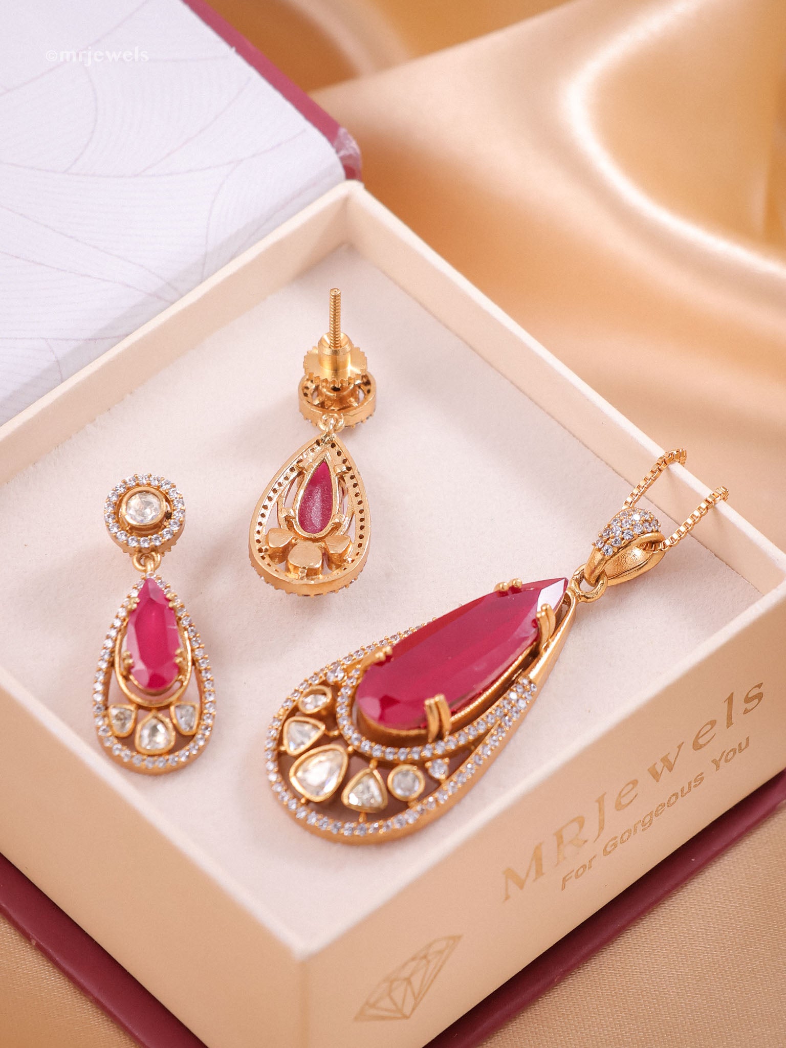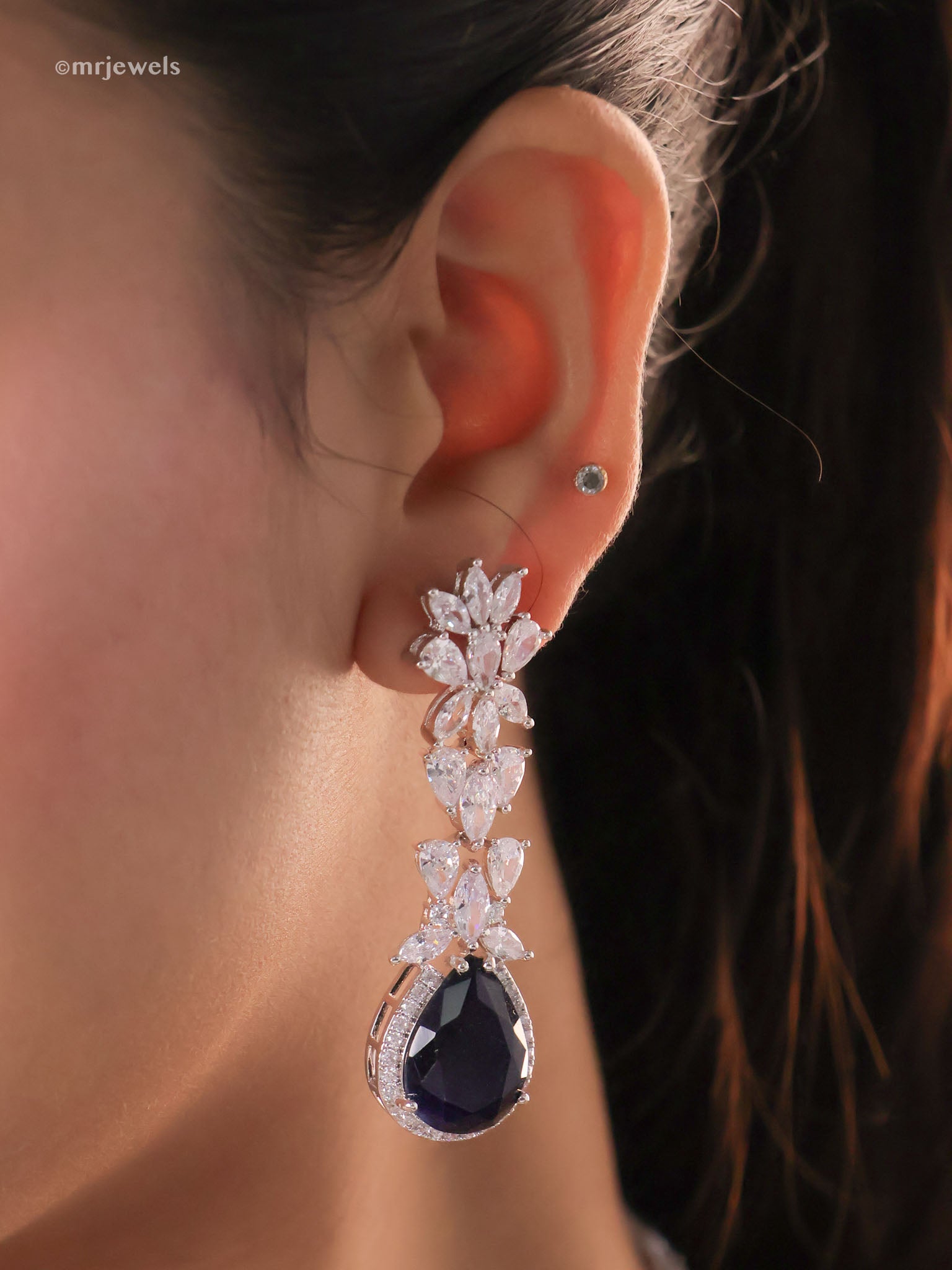 Noir Duchess Teardrop Necklace Set (Silver Finish)