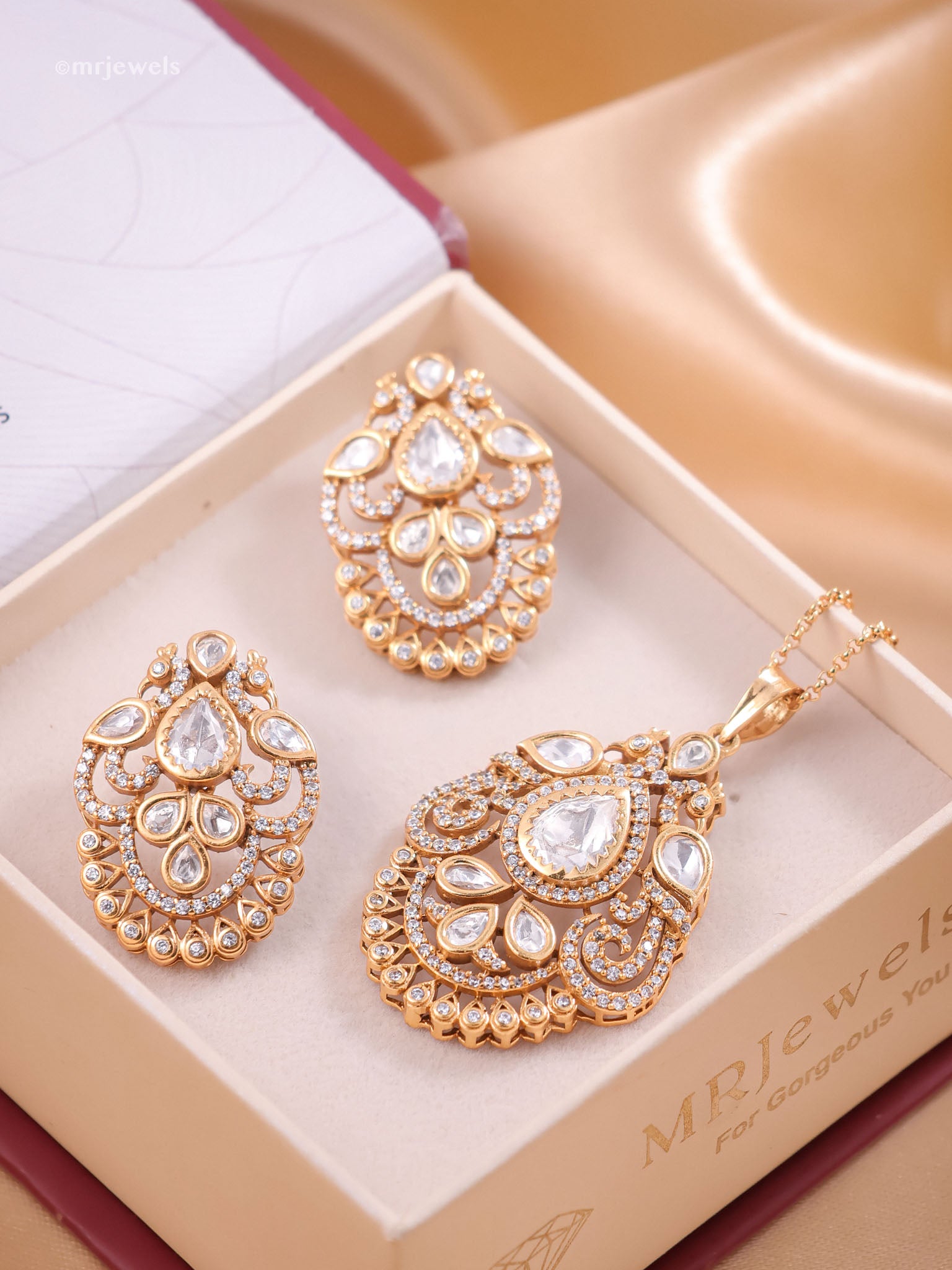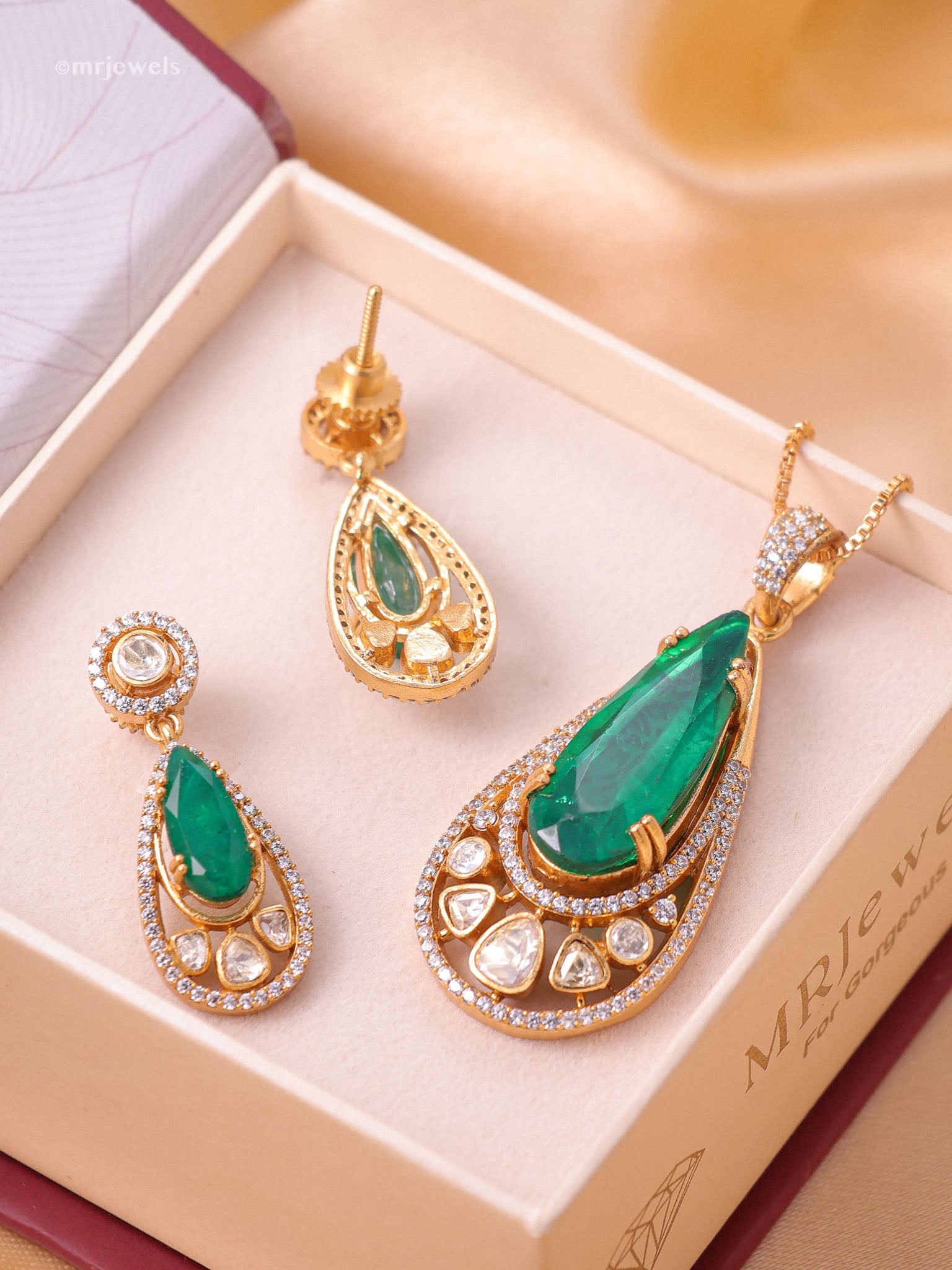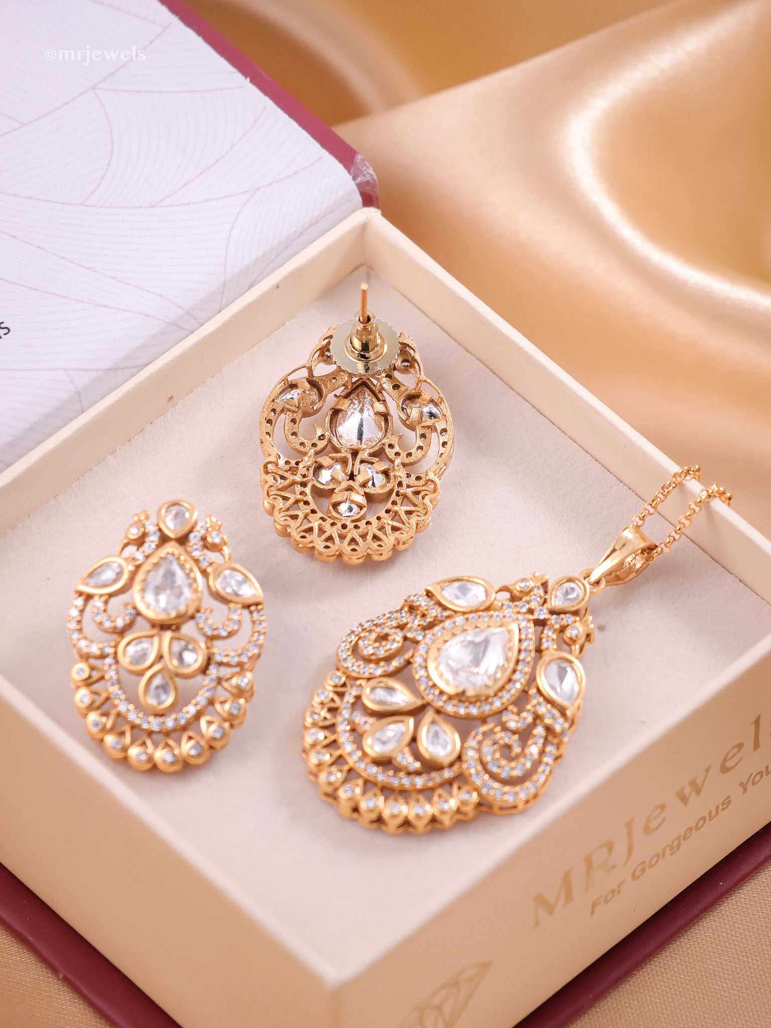 Moissanite Teardrop Pendant Set with Screw-Back Earrings
