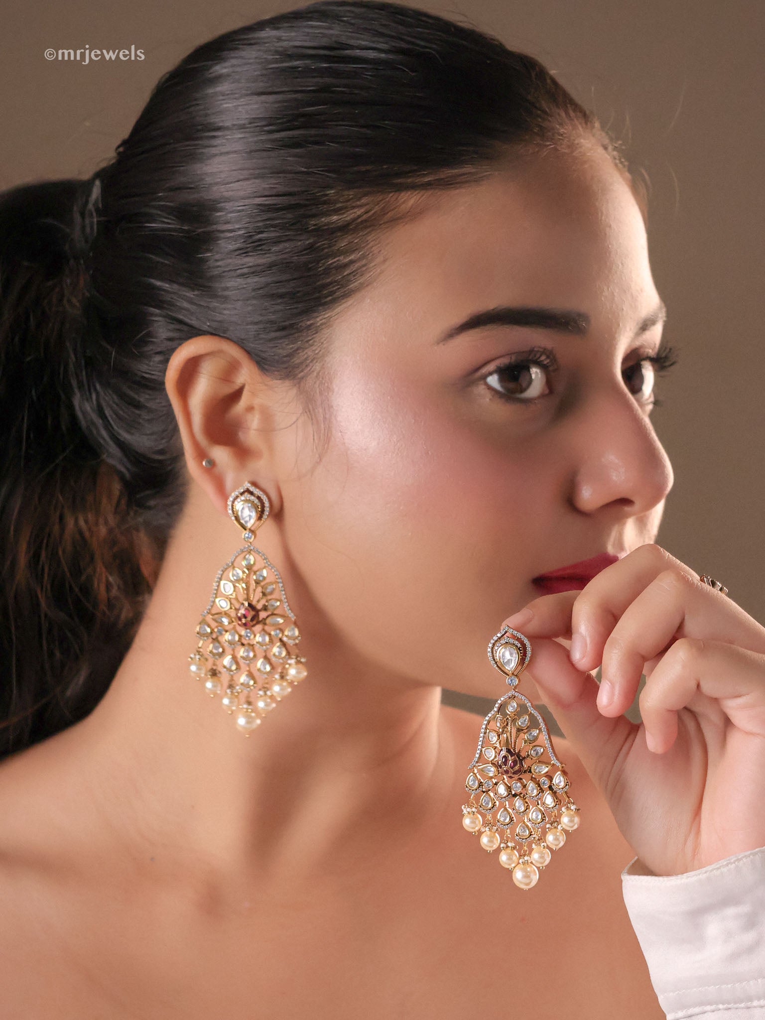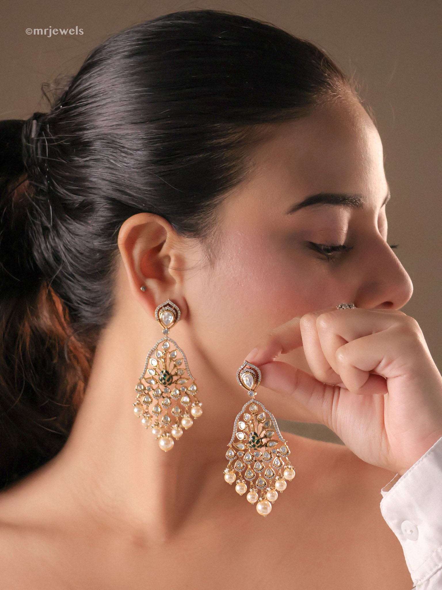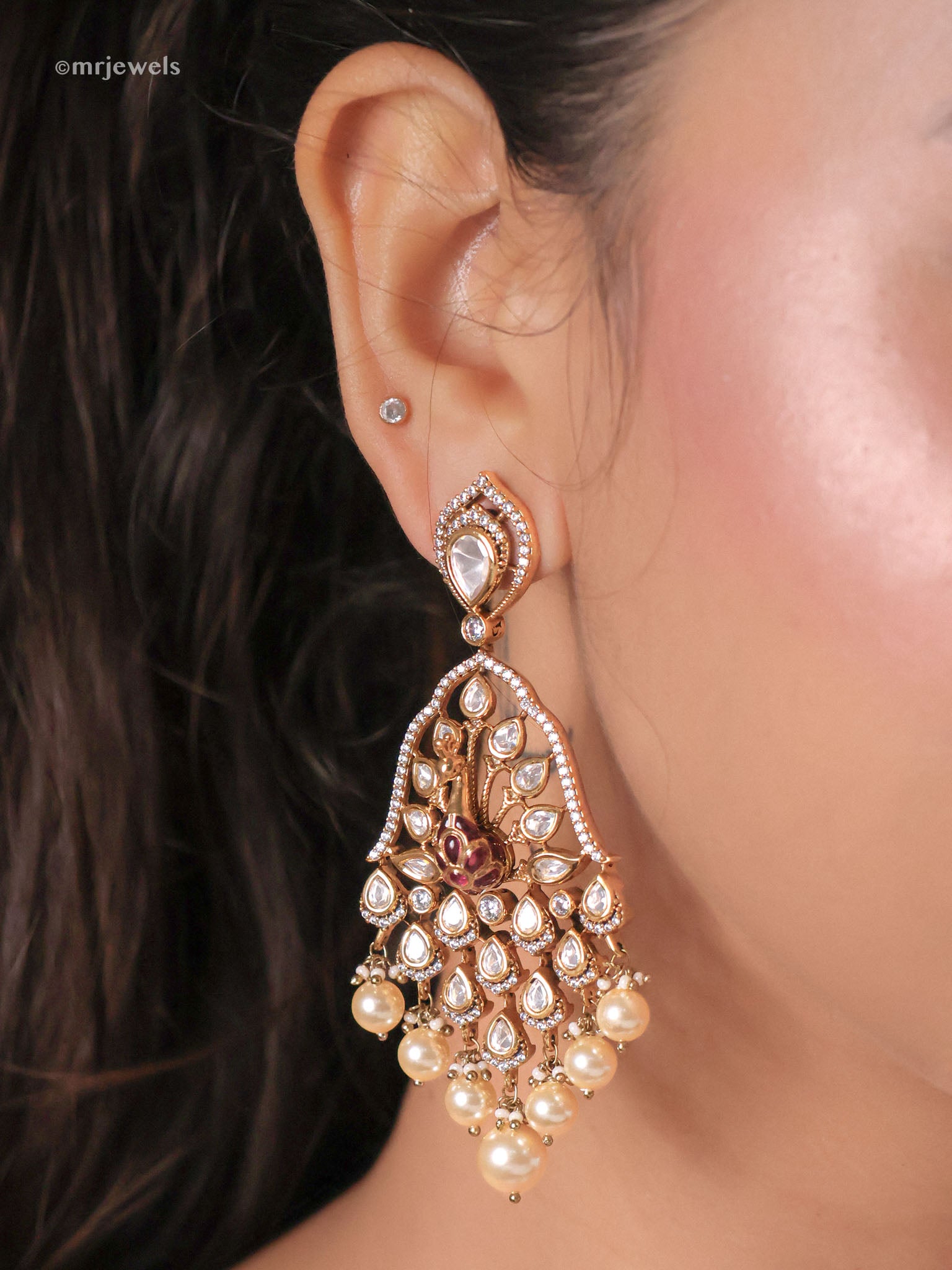 Mayuri Kundan Peacock Pearl Dangler Earrings
