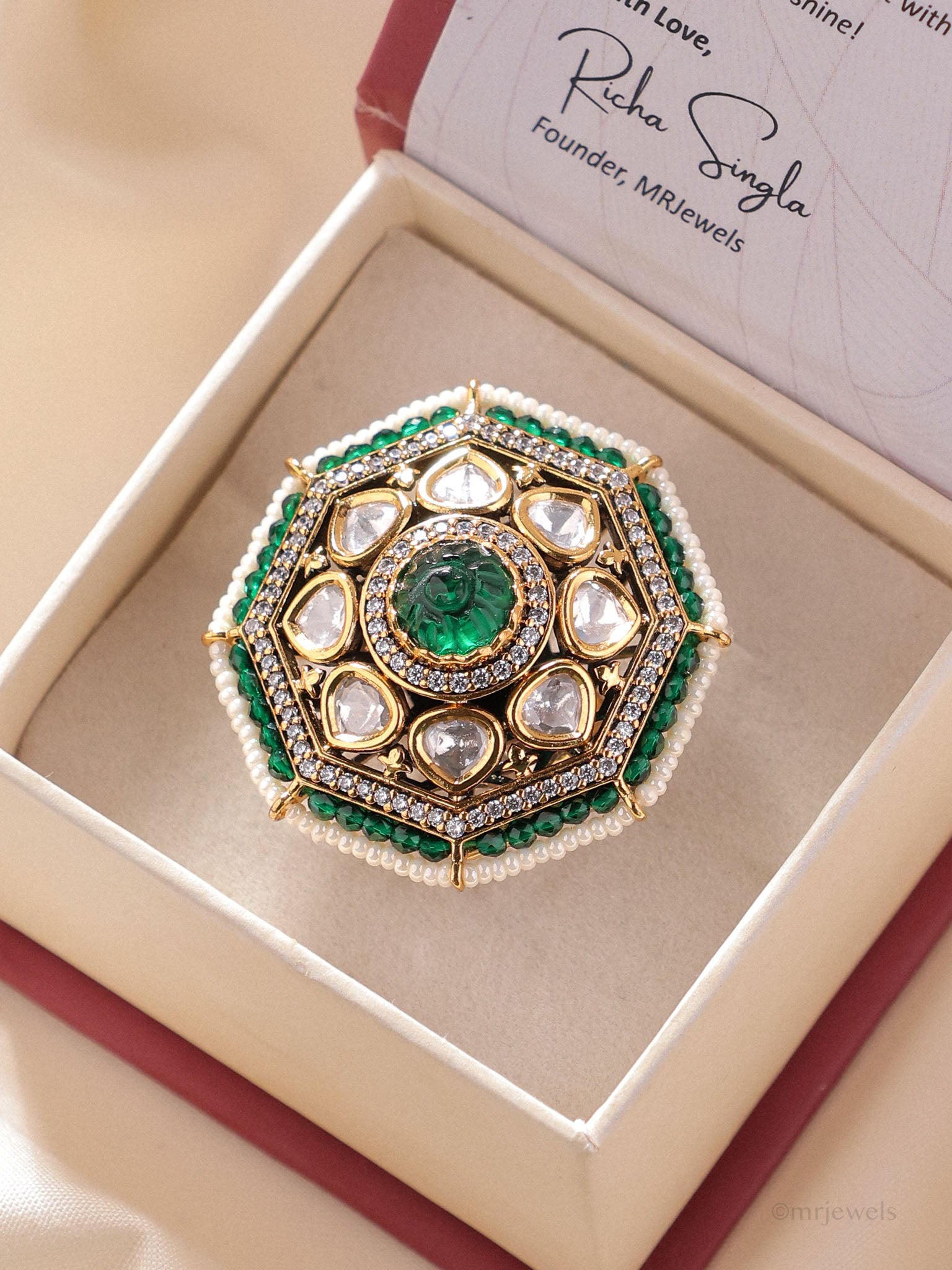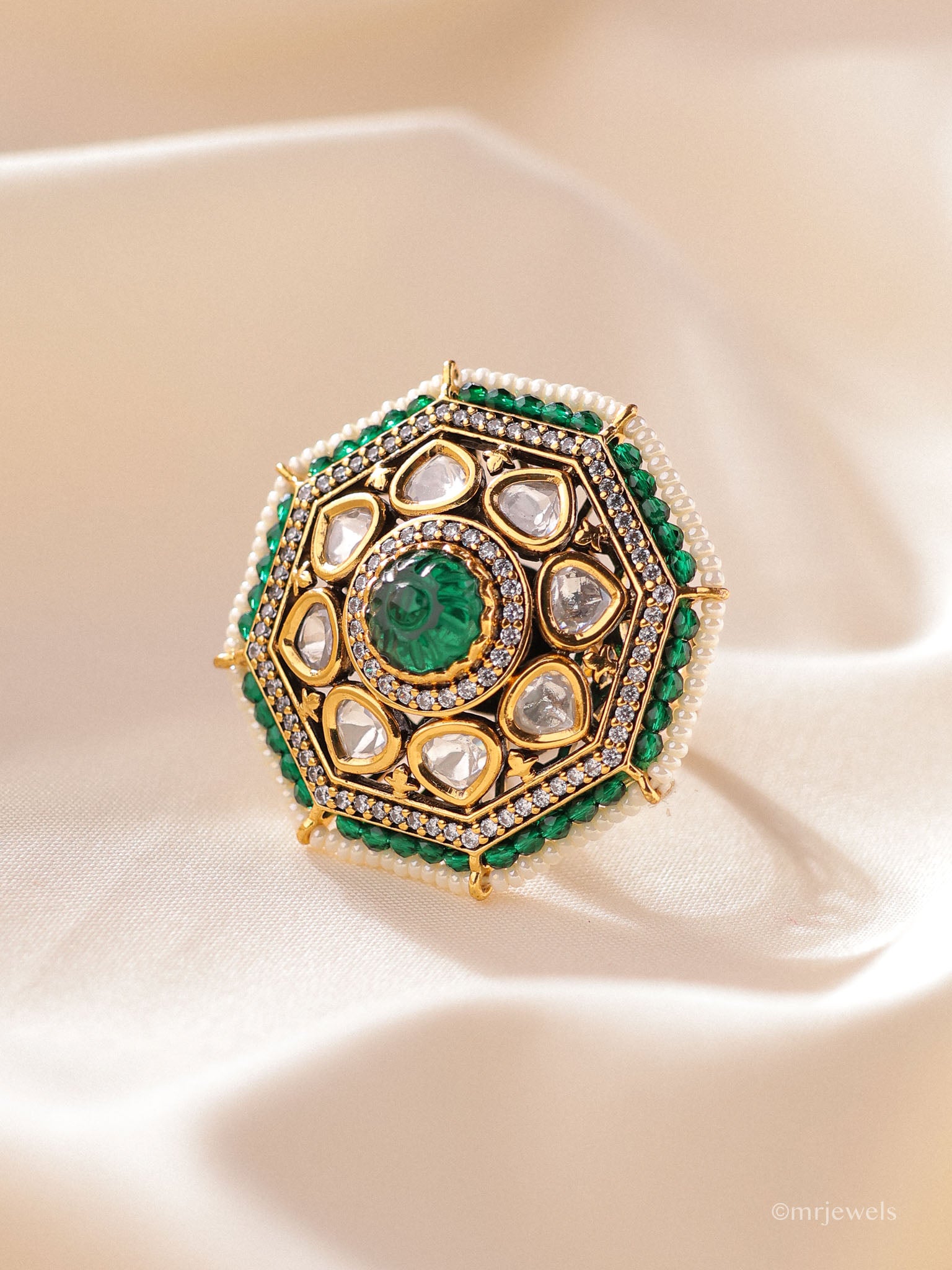 - Stone: Kundan crystals with emerald centre