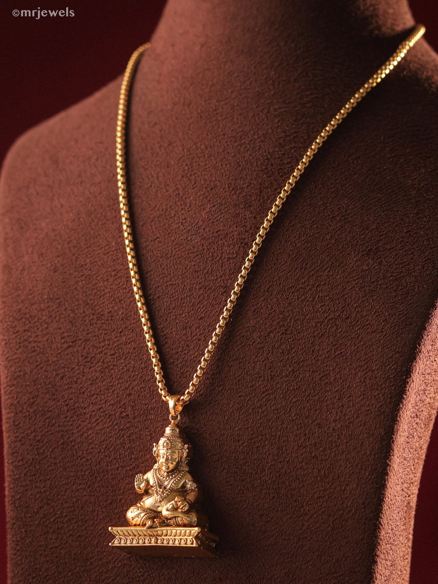 Invoke prosperity and blessings with this intricately crafted Kubera pendant — the symbol of wealth and abundance. Designed in rich gold tones, this piece embodies sacred artistry and timeless devotion. Perfect for Dhanteras and festive gifting, it adds a touch of divine grace to your everyday style or traditional attire.