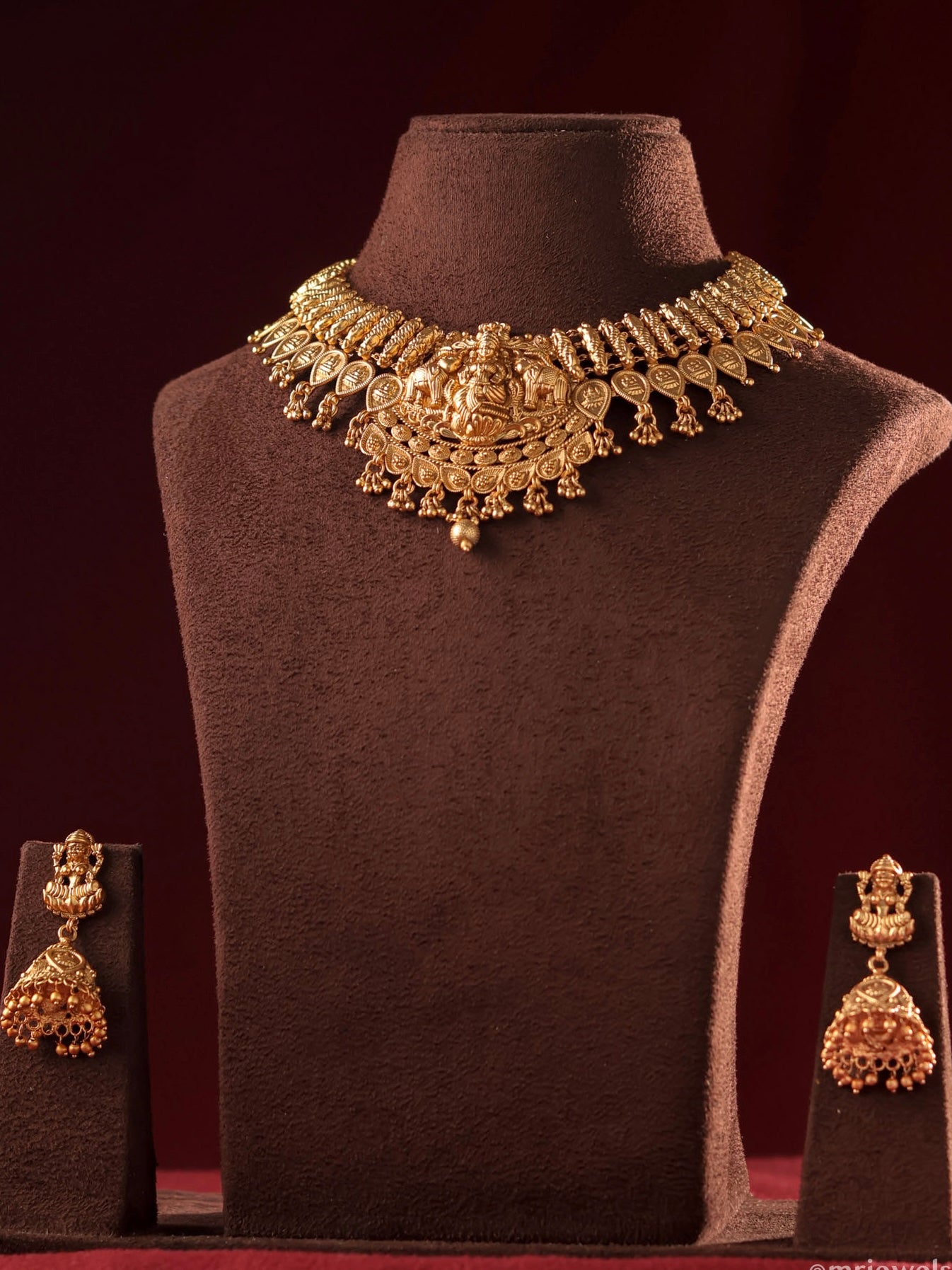 Lakshmi Grace Temple Necklace Set with matching earrings