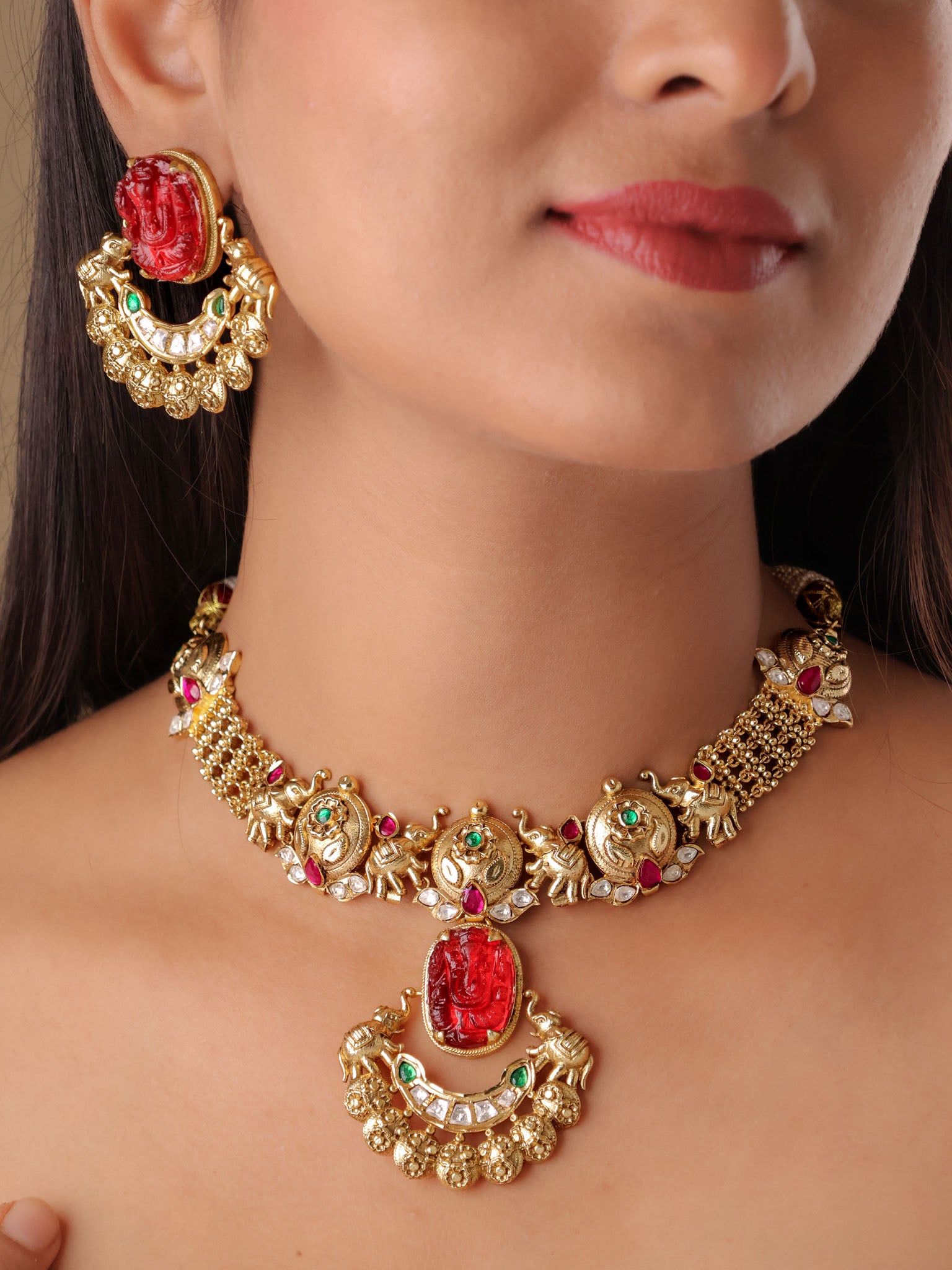 How do I style a temple necklace with earrings and bangles