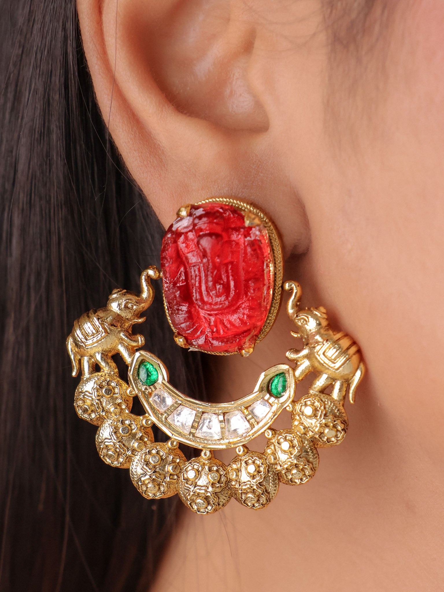 Let one hero piece lead the look. If your necklace is bold, choose medium earrings and a slim kada stack so the frame stays balanced and elegant.