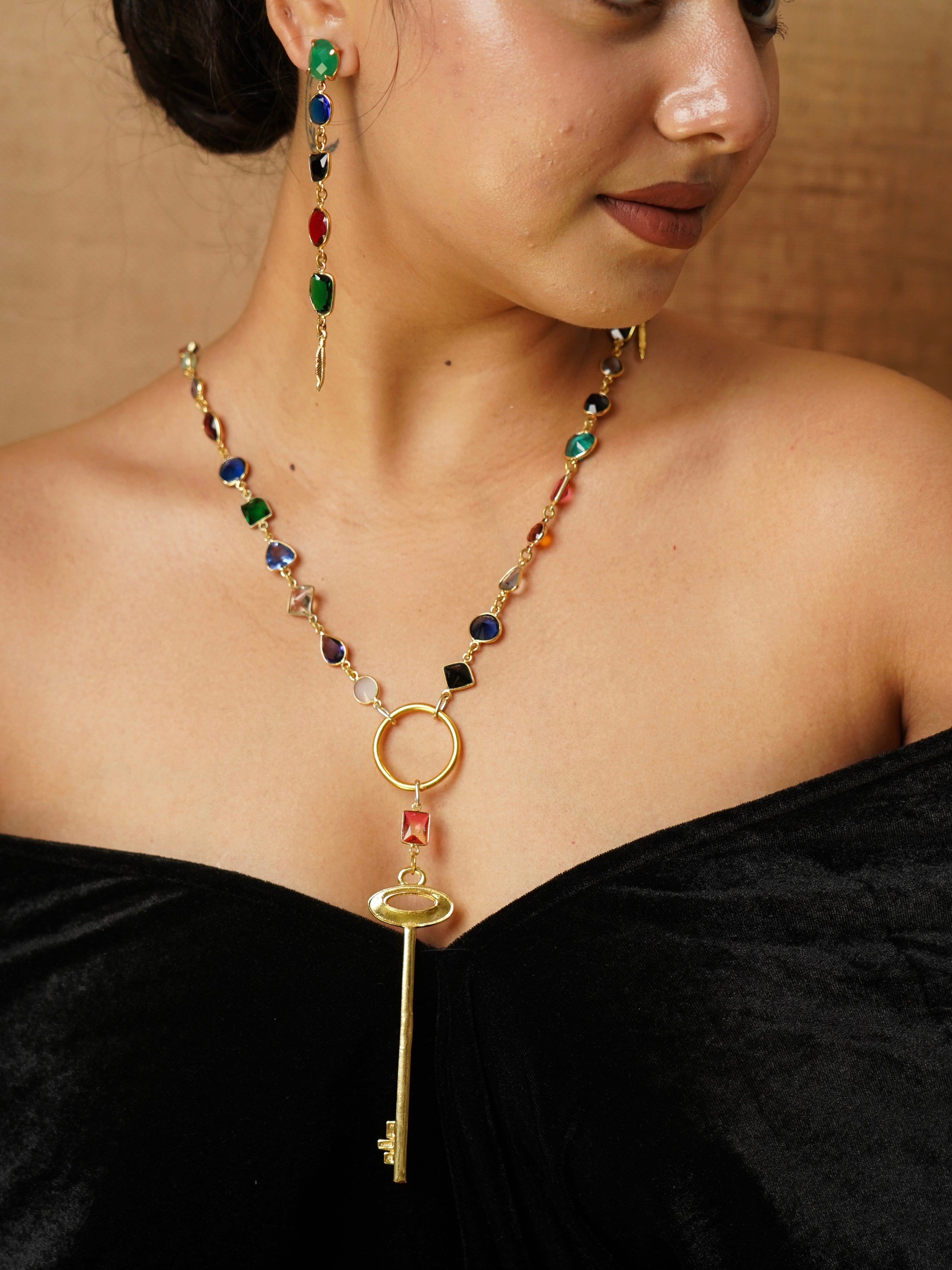 Nita Ambani inspired long Emerald Necklace set with matching earrings-Limited pieces
