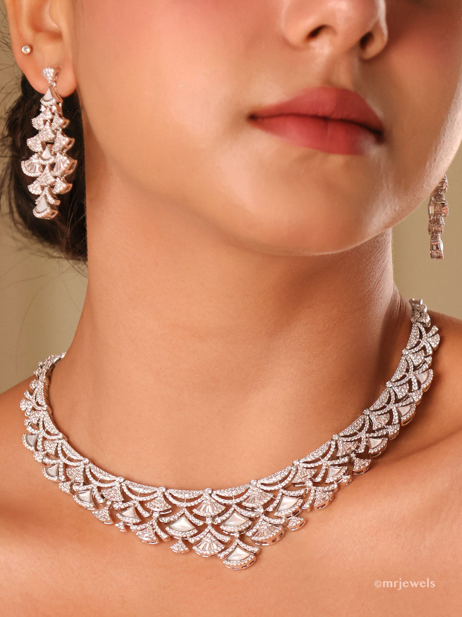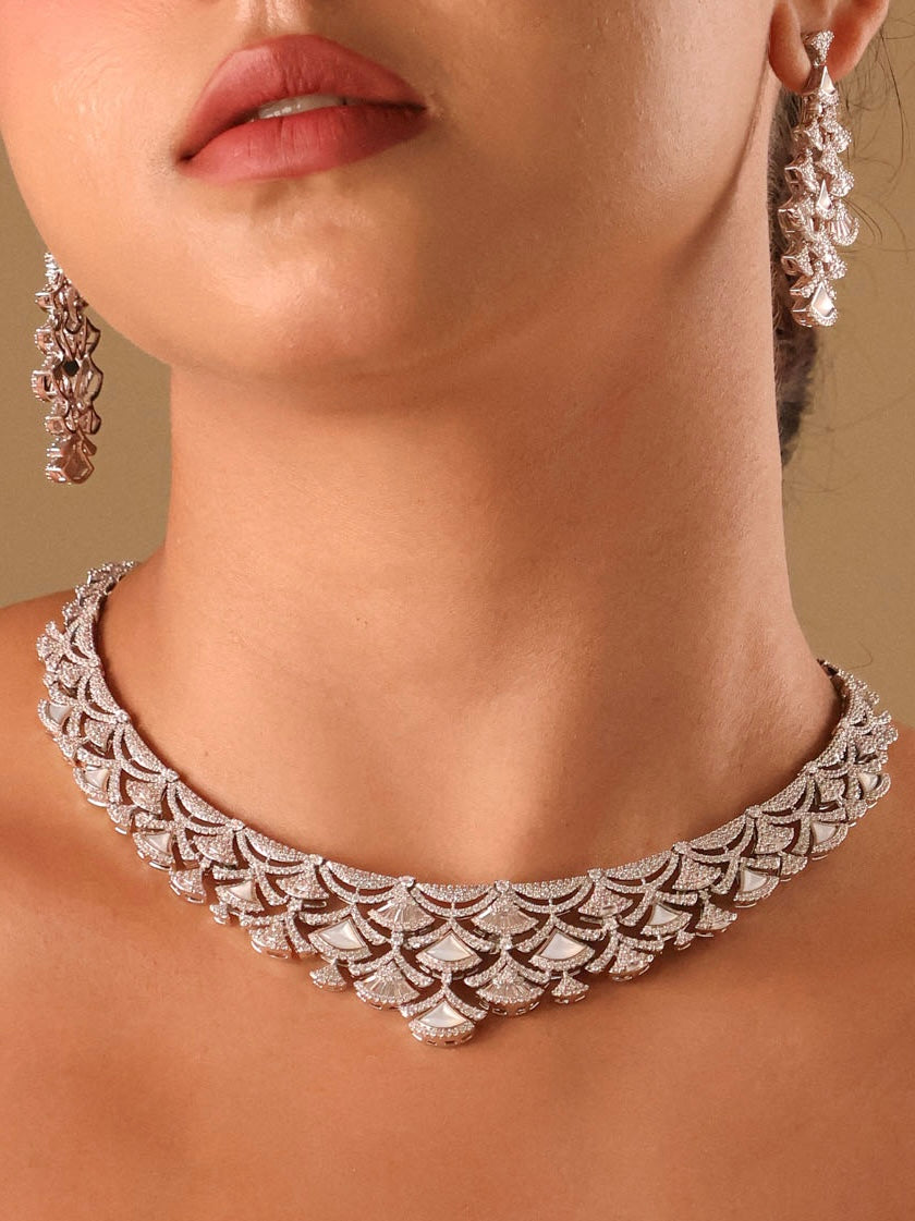 18k White Gold Plated Designer Western Necklace -Antitarnished
