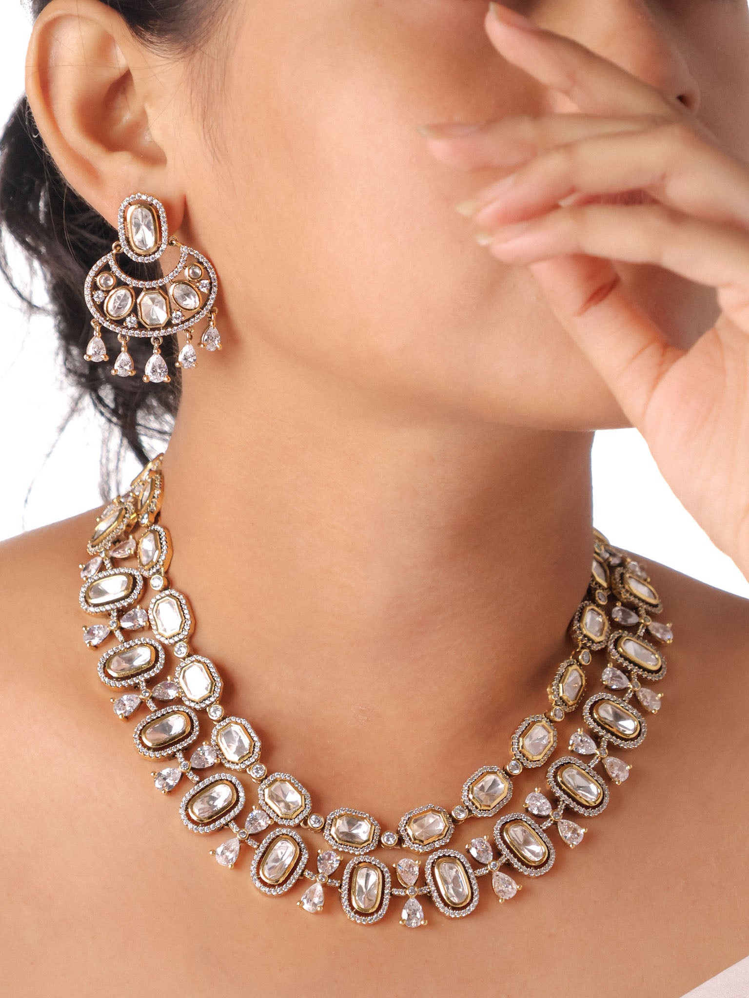 Paired with minimal yet striking earrings, this set complements both heavy bridal outfits and contemporary festive looks. Its design is lightweight, versatile, and crafted for all-day comfort.