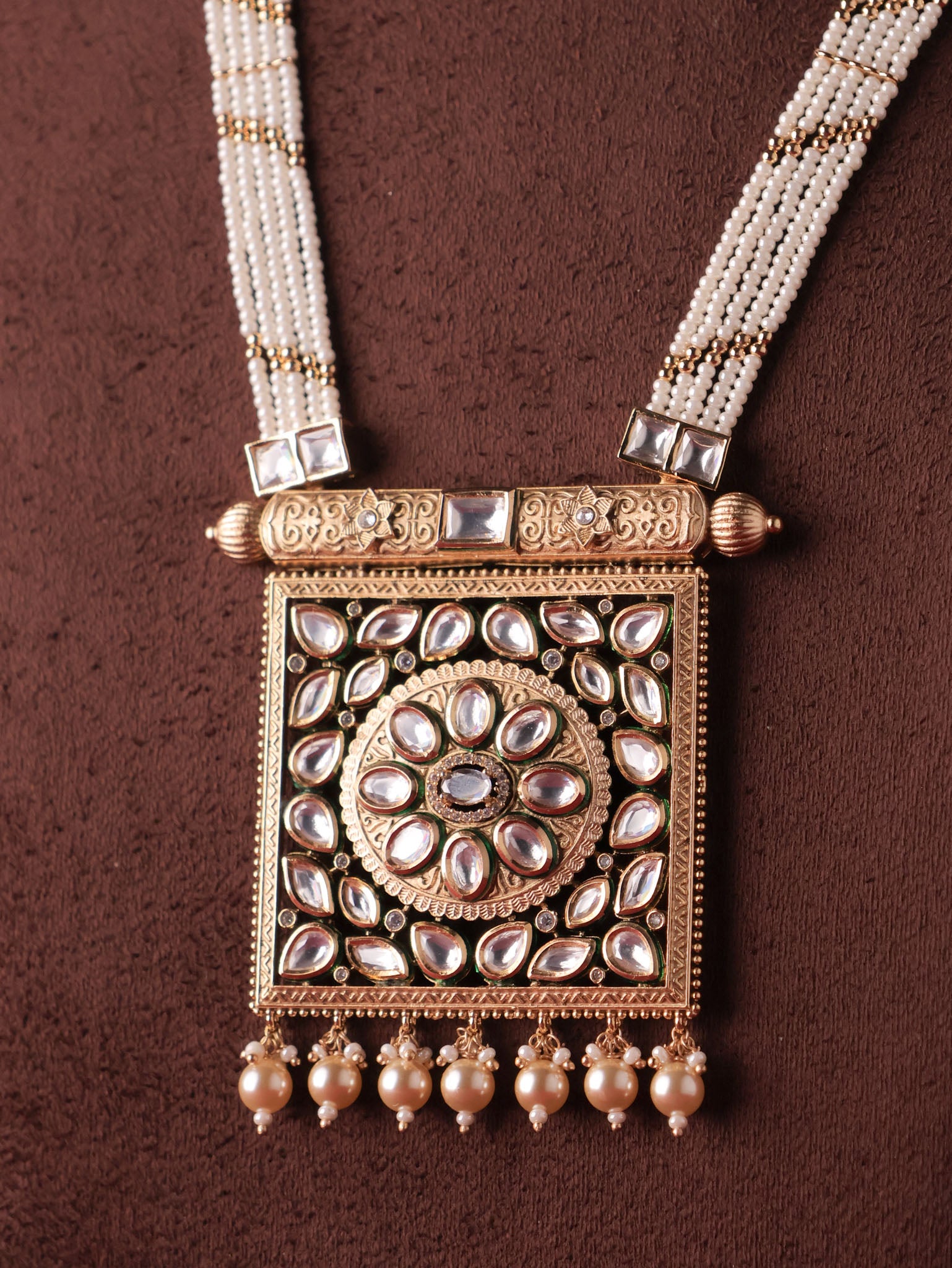 - Square kundan pendant long necklace set
