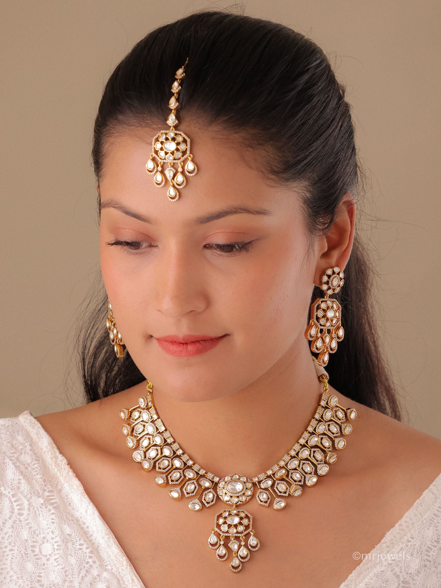 - Micro-pavé CZ, marquise leaves + triple-tier pear drops